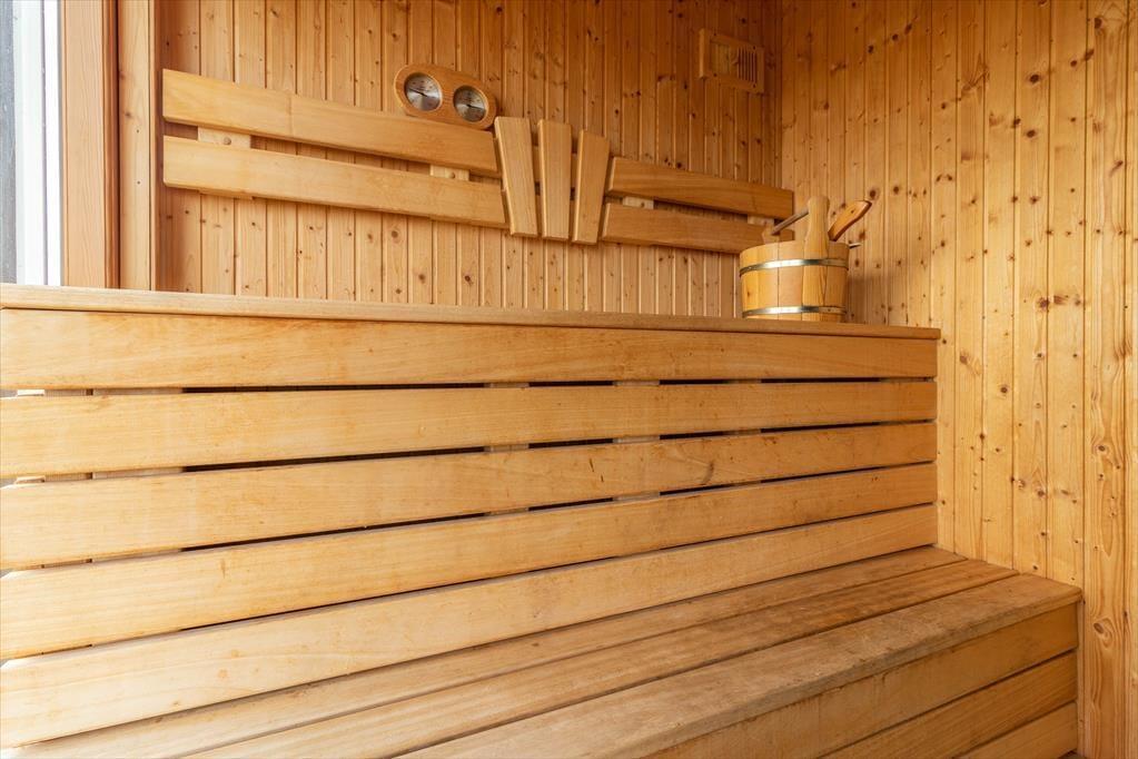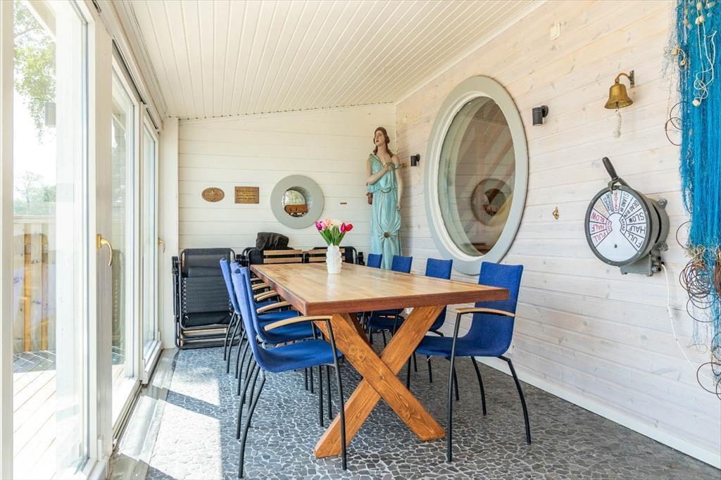 Udenfor er der en terrasse med havemøbler og grill – perfekt til hyggelige aftener ved havet. Der er parkeringsplads på grunden. Huset har desuden en træopvarmet, glasinddækket sauna vendt mod havet samt en robåd. For elbiler er der en 11 kW-wallbox, som kan benyttes mod et gebyr på € 50 pr. uge.