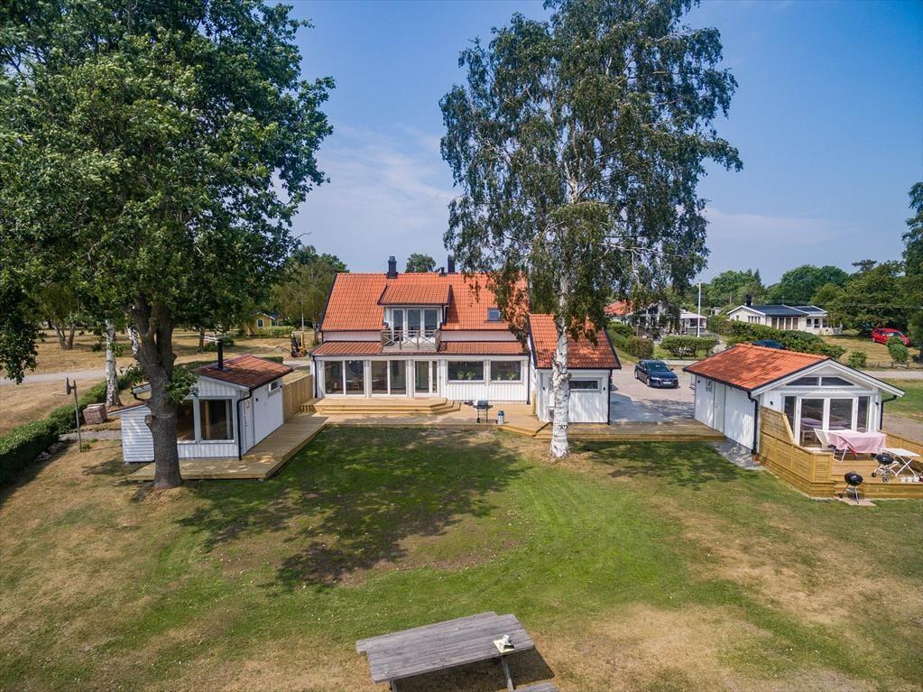 Dette charmerende feriehus ligger direkte ved havet i Smålands-regionen, nær den lille by Hagby, ca. 25 km syd for Kalmar. Den store grund på ca. 1.000 m² grænser direkte til vandet – kun 20 m fra havet. Lige ved siden af ligger en lille legeplads, ideel for familier med børn. Husets østlige orientering giver mulighed for smukke solopgange over havet og udsigt helt til øen Öland. Indkøb, restauranter og caféer findes i byen Vassmolösa, ca. 8 km væk. Til udflugter kan de historiske byer Kalmar (ca. 25 km) og Karlskrona (ca. 65 km) anbefales. Naturinteresserede kan opleve majestætiske elge tæt på i „Glasriket Älgpark“ (ca. 40 minutters kørsel). Også en dagstur til øen Öland, som nås på ca. 50 minutter, er værd at overveje.