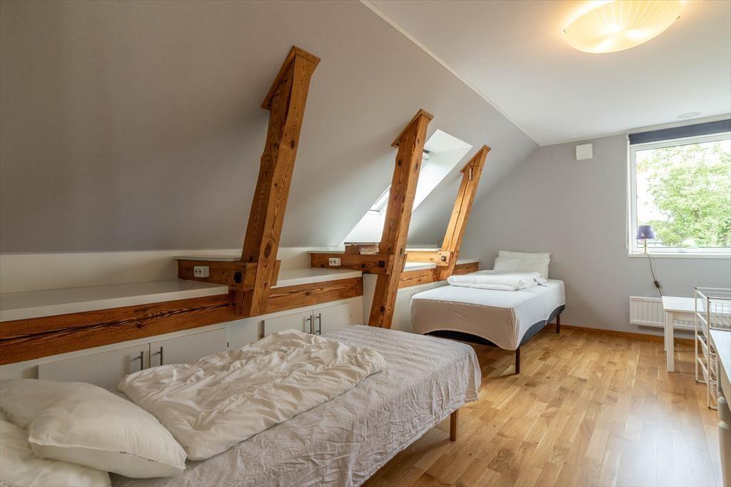 Hovedhuset tilbyder 150 m² bolig på to etager og masser af plads til afslappende dage. I stueetagen findes en hyggelig stue, et fuldt udstyret køkken med spiseplads, et badeværelse samt en glasinddækket vinterhave med fantastisk havudsigt. På førstesalen er der tre soveværelser (ét med dobbeltseng, to med hver to enkeltsenge), et gæstetoilet, en lille siddeplads i forgangen og en balkon med udsigt over havet. En barneseng står også til rådighed.