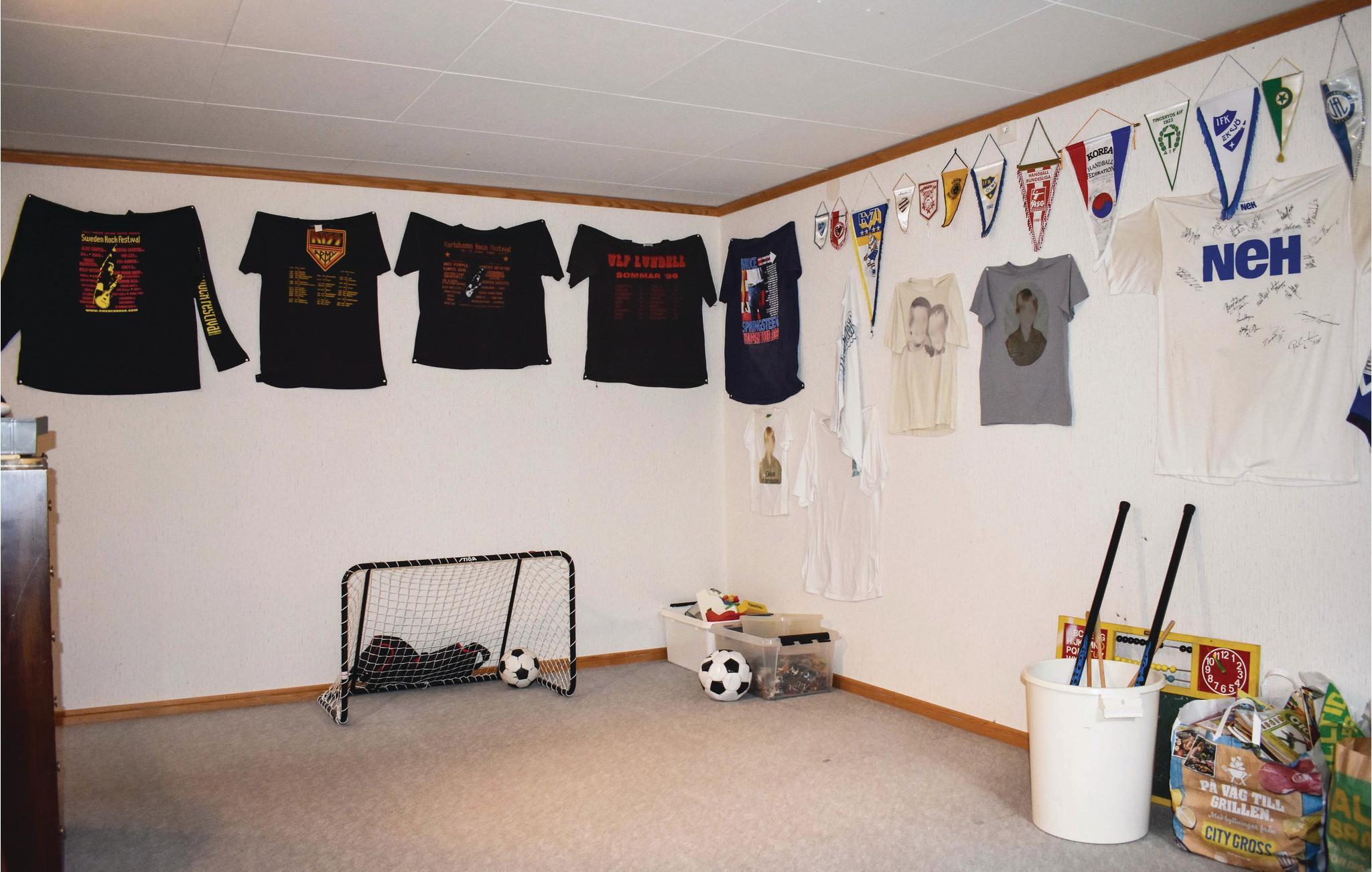 Dejligt feriehus med legerum i underetagen, beliggende i roligt boligområde i Karlshamn. Feriehuset har en stor gårdhave, hvor I kan nyde gode sommermåltider. I har omkring 500 m til havet med sandstrand, klipper og anløbsbro i Blekinge Øhav, der er både koldbadshuse, poolområde, padlebane, badhus (Väggabadet) og motionscenter i gåafstand, og en meget flot strandvandring langs havet. Et besøg i Vägga Rökeri med en fin fiskerestaurant og butik anbefales. I løbet af sommeren er der meget forskellige begivenheder i Karlshamn, for eksempel Østersøfestivallen, men også koncerter og andet sjovt. Placeringen af feriehuset i Karlshamn giver jer nærhed til øhavsbåde for vidunderlige ture mellem alle øer, et besøg i Karlskrona med Marinmuseet og Barnens Gård kan anbefales, samt et besøg i smukke Ronneby eller et besøg i Ericsbergs vildt- og naturpark. Slidt tapet ved trappen til underetagen.
