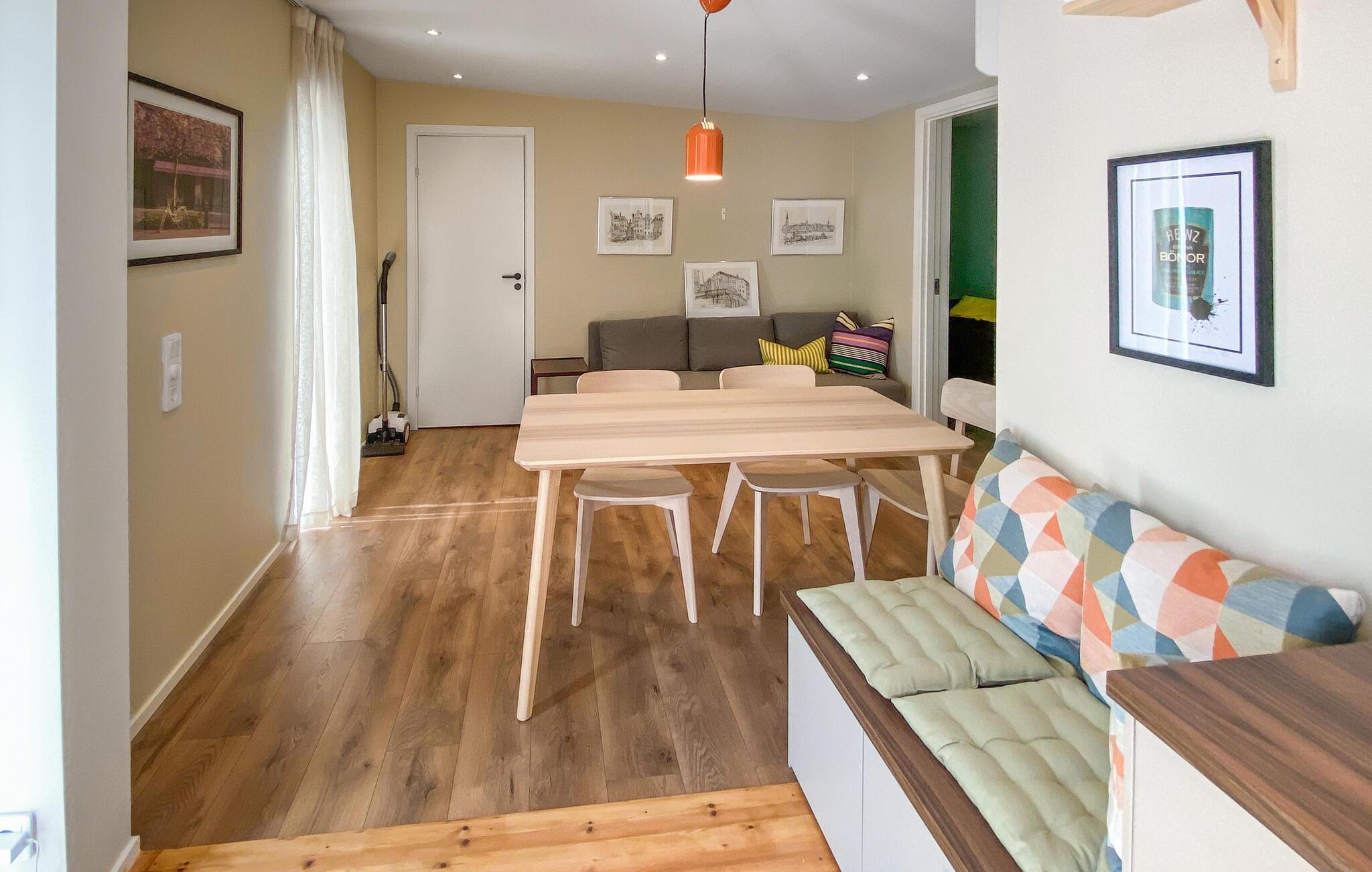 Nyd moderne arkitektur og afslappende timer på terrassen med udsigt over de grønne områder. Dette feriehus er den ideelle base for afslappende dage på Öland. Den moderne møblerede opholdsstue har en behagelig sofa, sarte farver og en behagelig atmosfære. Slap af her med en film eller nyd måltider sammen i den åbne spisestue. Det kompakte køkken er funktionelt udstyret og ideelt til at tilberede enkle måltider. Brug den store træterrasse til at slappe af i solen eller start dagen med morgenmad udendørs. Lav mad i det eksklusive udendørskøkken og spis derefter under åben himmel. Hyg jer sammen i de komfortable loungemøbler eller tag et forfriskende brusebad under stjernerne i den overdækkede udendørs bruser. Oplev den naturlige skønhed nær Kastlösa og på hele øen. Besøg Ottenby naturreservat med dens kyststier og muligheder for fuglekiggeri, tag en tur til Långe Jan fyr, eller slentr gennem øens små landsbyer med gallerier, caféer og gårdbutikker.
