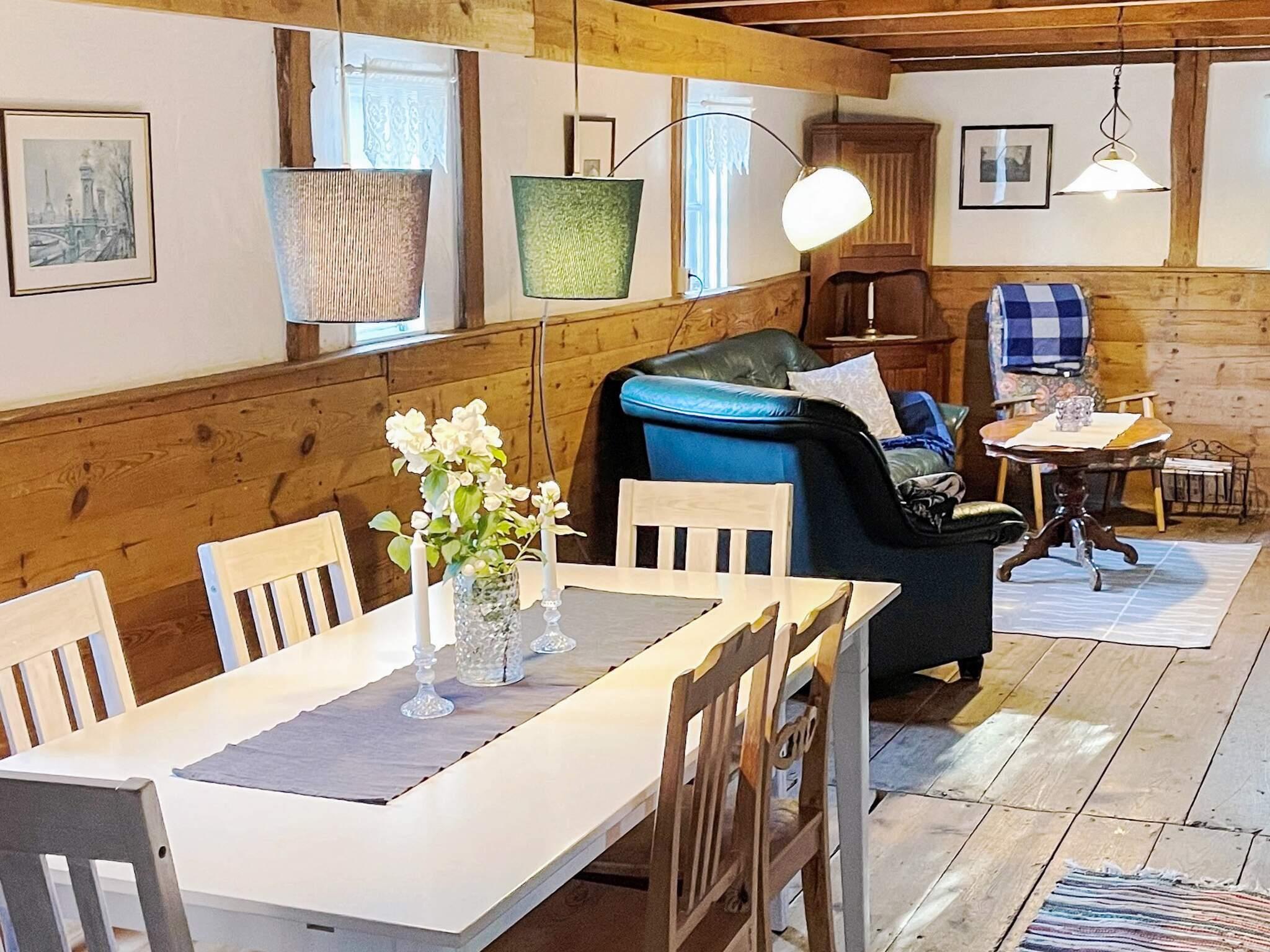 En mycket trevlig lada där man har valt att bevara ladans charm med vackra trägolv och synliga träbjälkar i taket. Öppna sociala ytor mellan matplats och vardagsrum. Stort kök med generösa arbetsytor. Behagliga sovrum med dubbelsäng i ett och två våningssängar i det andra. Badrum med wc och dusch.