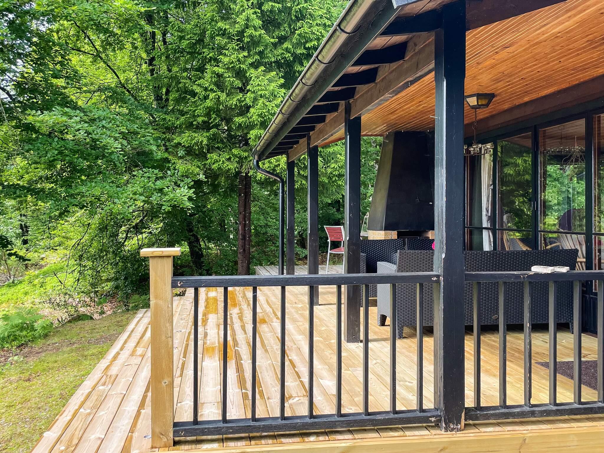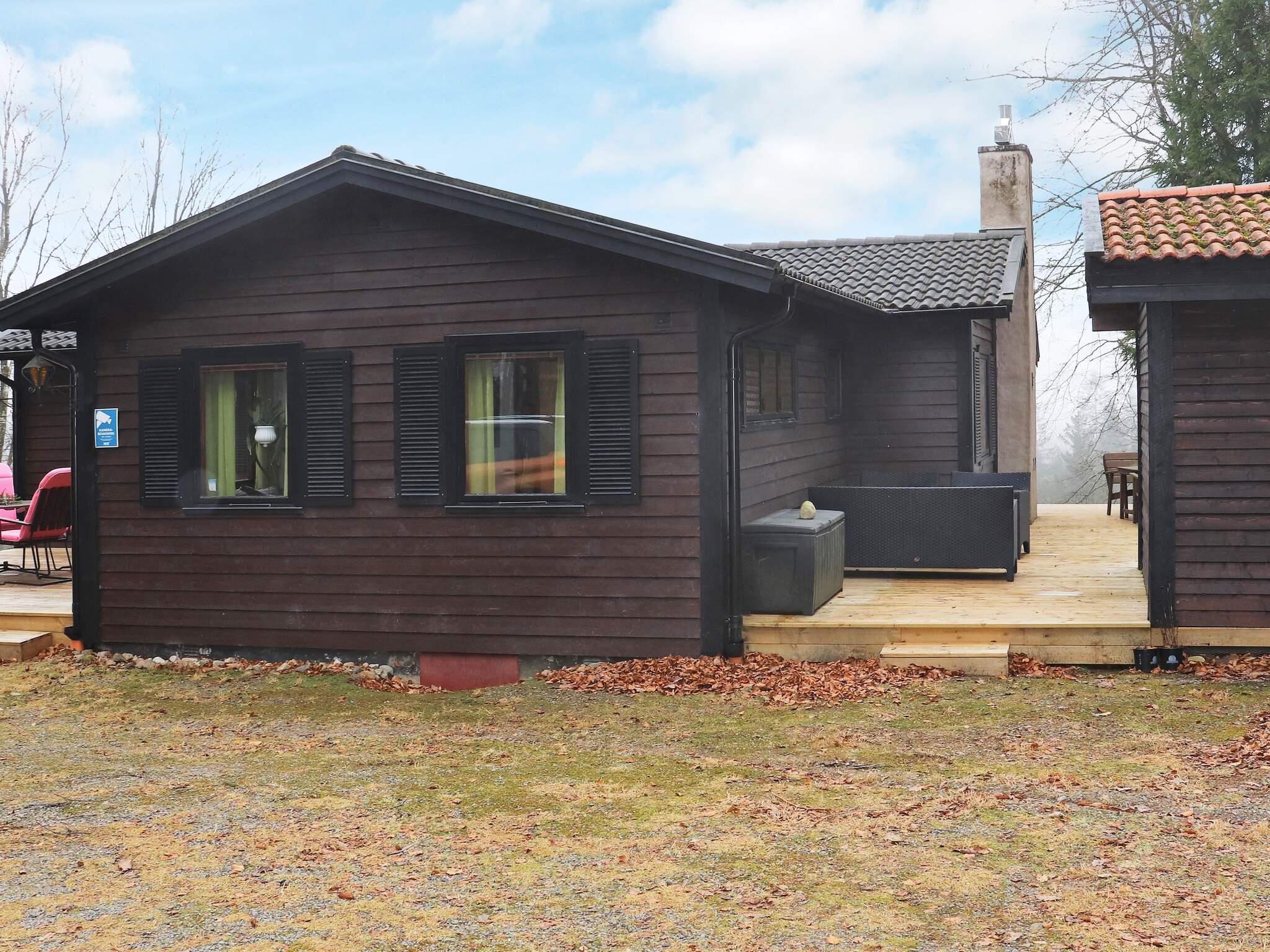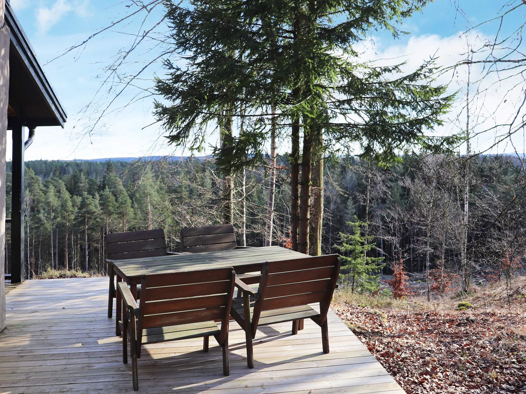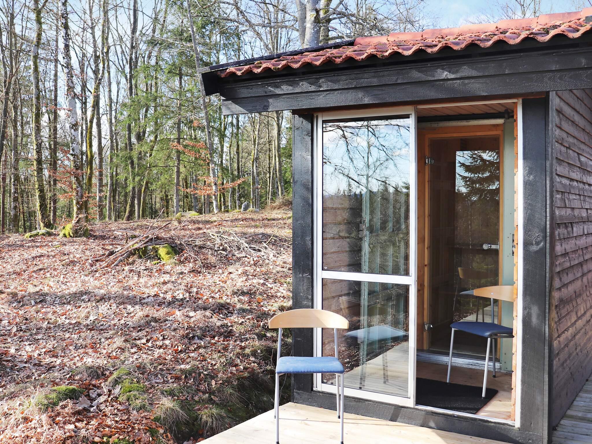 Ett mycket trivsamt fritidshus med naturen in på knutarna. Stugan ligger enskilt och insynsskyddat. Från altanen under tak njuter ni av stillheten, närheten och utsikten over orörd vacker bokskog. I området finns flera sjöar, naturreservat och fina svampskogar. Ett perfekt boende för naturälskaren. Ett väldigt bra utgångsläge för utflykter i hela området. Stugan ligger högt och inbäddat i omgivande bokskog. Från entrén har ni först ett badrum med dusch och tvättmaskin. Här finns också ett sovrum med en dubbelsäng och ett sovrum med en bäddsoffa för två personer. Vardagsrummet är smakfullt möblerat och har en värmande braskamin och modern TV med chromecast. Köket är välutrustat, vackert och har en rymlig matplats. Här finns också ett sovrum med en våningssäng. Från det ljusa vardagsrummet kommer ni ut till en fantastiskt fin överbyggd altan. Utsikten är magnifik. Här njuter ni av utsikten över bokskogens trädtoppar och kanske något gott att dricka en härlig kväll. Alldeles intill huset finns en bekväm bastu med liten loungedel. Runt stugan finns flera uteplatser med bekväma utemöbler och grill.