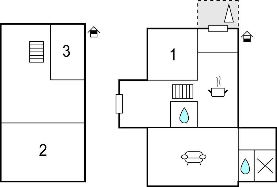 Soveværelse (nr. 1) - 2 Sovepladser. (Enkeltseng(e)).