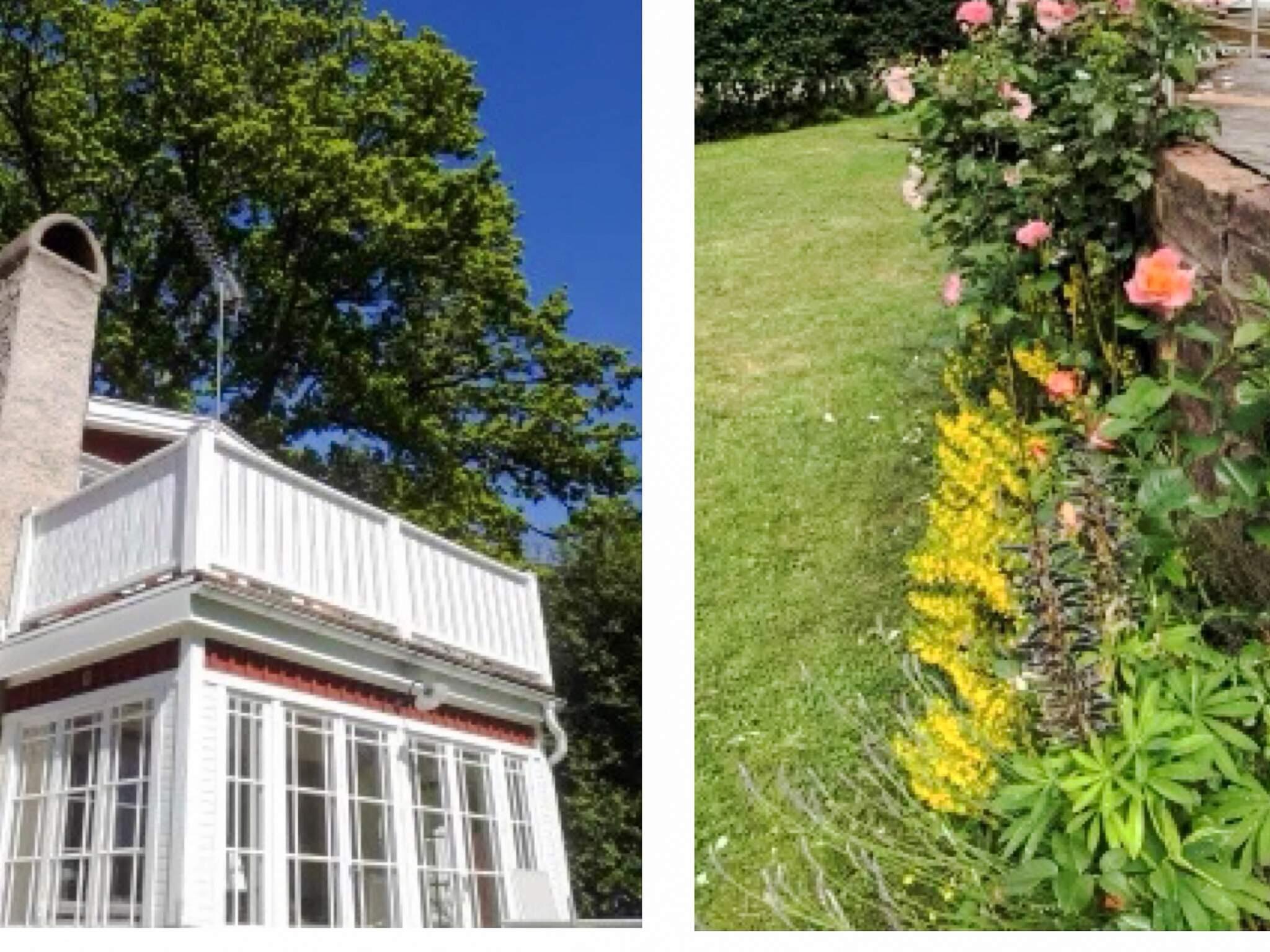 Huset har ett vackert inglasat rum där du kan njuta av den härliga atmosfären och den fina utsikten. Här kan du öppna upp mot den trevliga uteplatsen. Köket är öppet med stora vardagsrum där det finns ett stort matbord framför den vackra kakelugnen. Vardagsrummet ligger på övervåningen med tillgång till den trevliga balkongen med utemöbler. I vardagsrummet finns lyxiga bekväma soffor där du kan luta dig tillbaka framför TV:n eller den vackra kaminen. Ta med egen ved om du vill ha en brasa i kaminen eller kakelugnen.