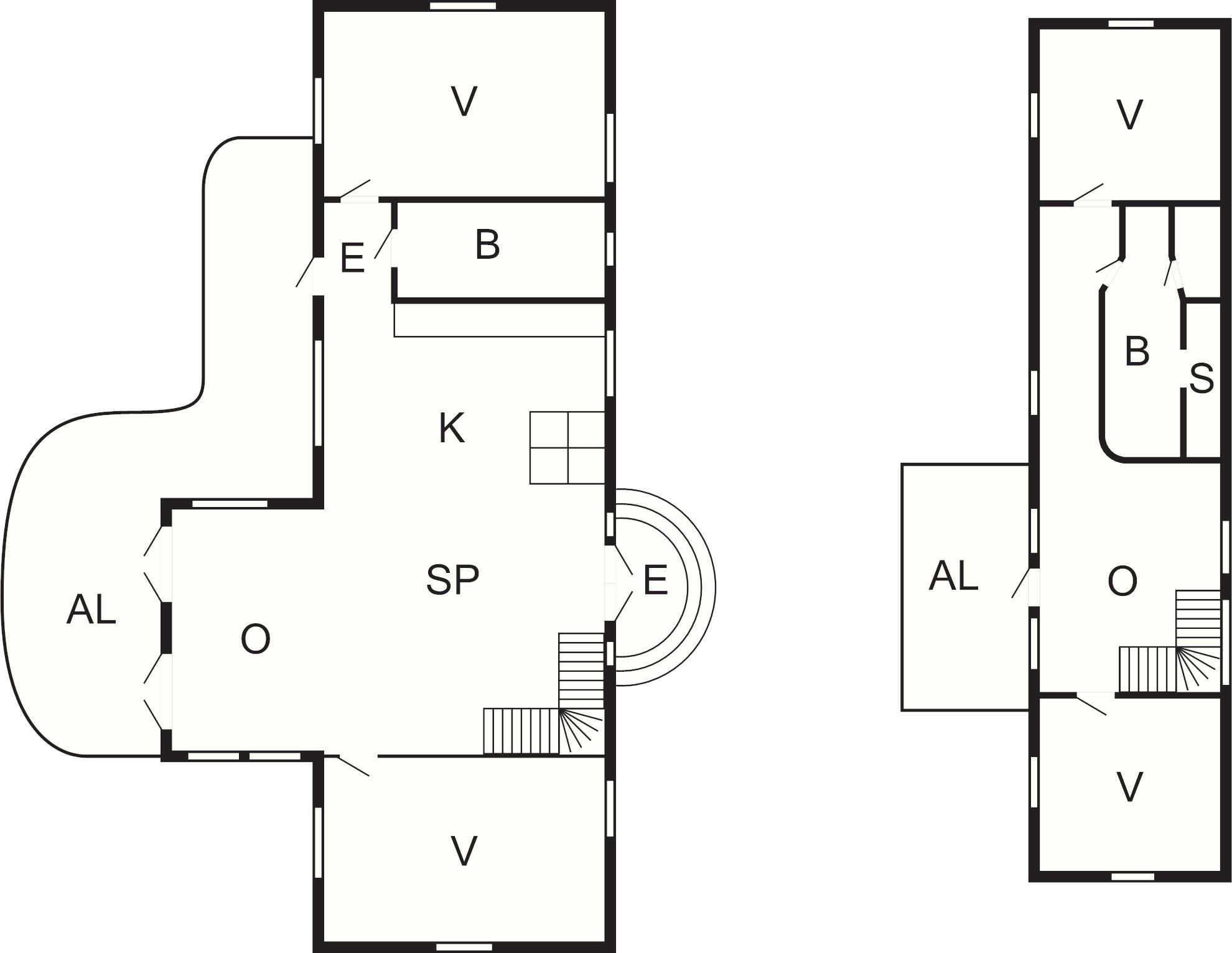 4 Soveværelser: (2S)+(1DS)+(1DS)+(2S)