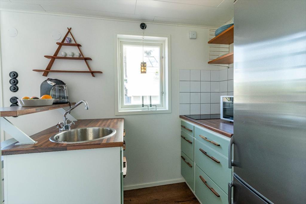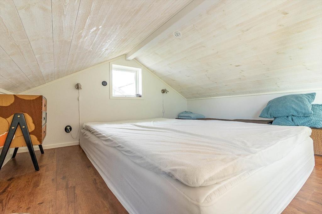 Huset har en boligareal på ca. 28 m² plus en 9 m² stor hems. Der er plads til op til 4 personer. I det åbne opholds- og soveværelse finder du et 32-tommers smart-tv og en sovesofa. På hemsen står der en dobbeltseng med en stor madras. Det åbne køkken er udstyret med alt, hvad du har brug for til selvforplejning: komfur med 2 induktionskogeplader, køle-/fryseskab, mikroovn, kaffemaskine og alle nødvendige køkkenredskaber. Badeværelset har toilet og bruser. En varmepumpe og elektriske radiatorer sørger for varme på køligere dage.