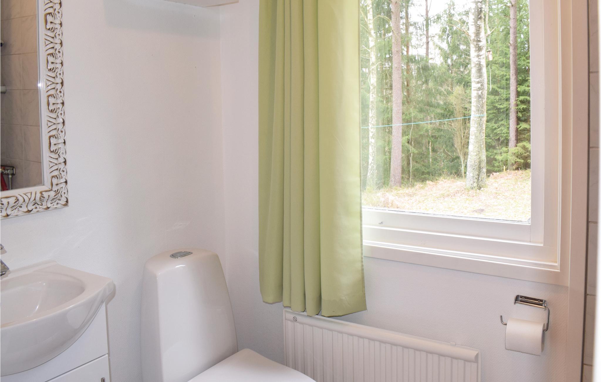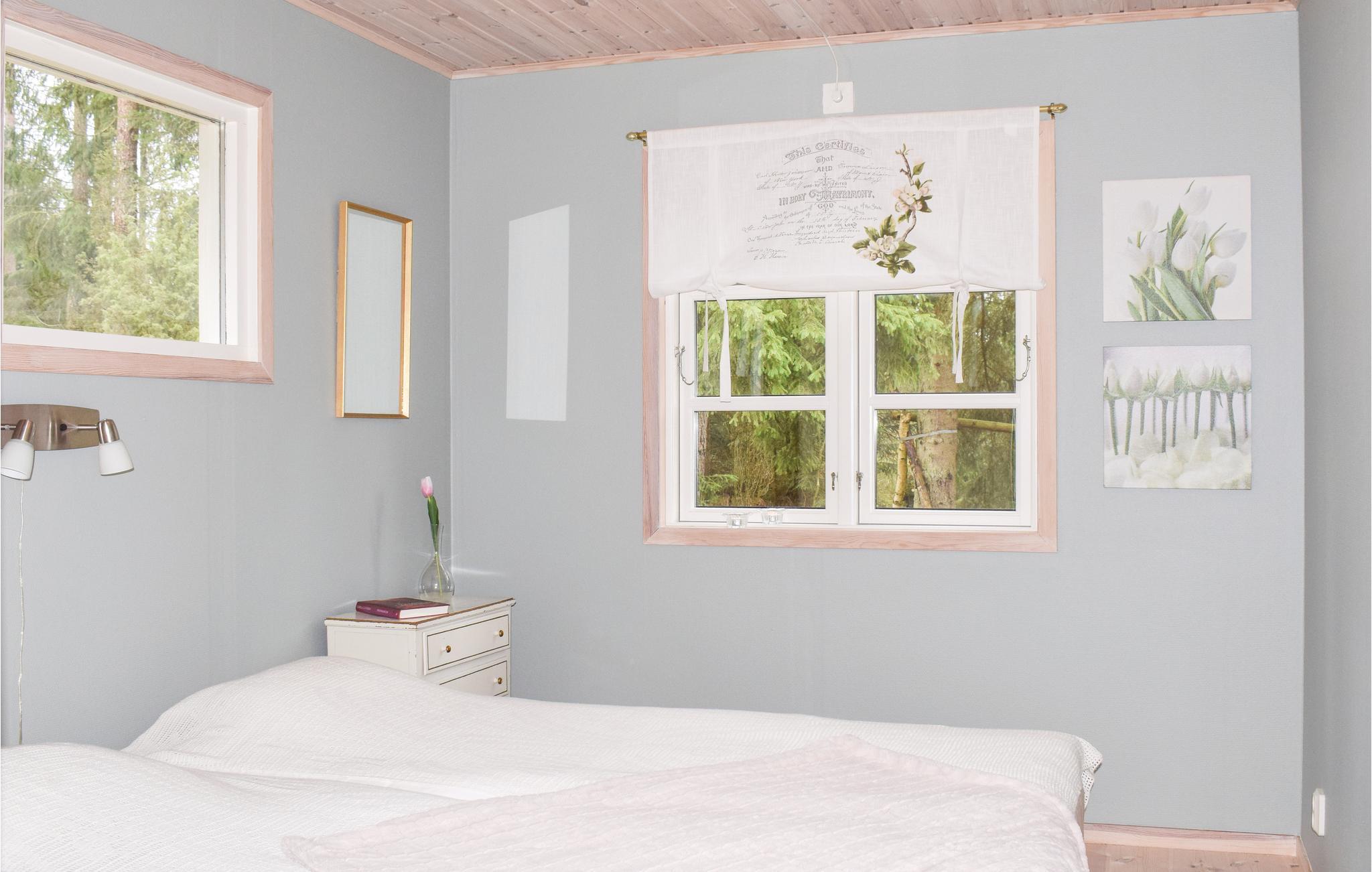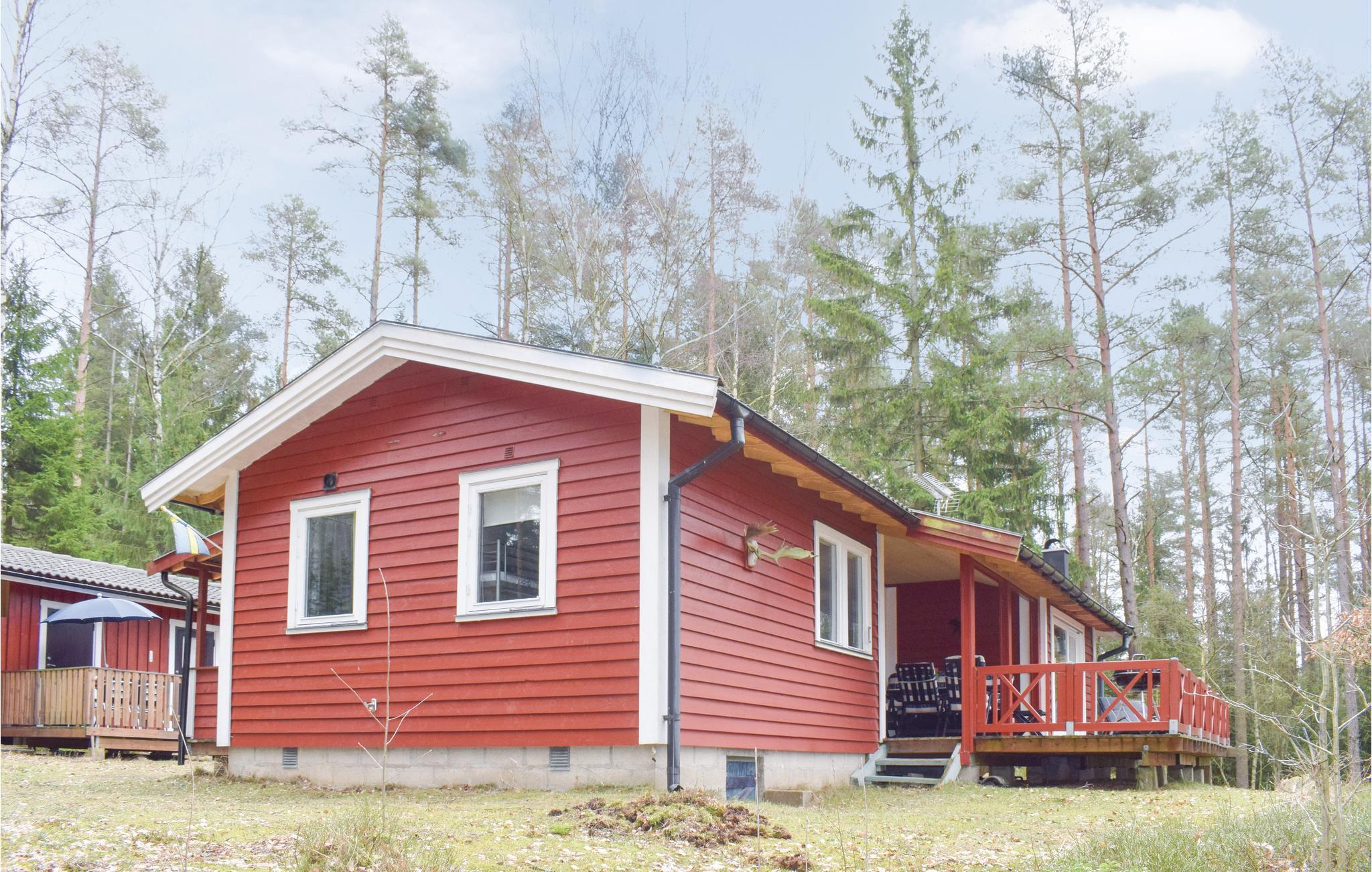 Dette feriehus ligger på en bakke i skoven, med en lille bæk der risler forbi grunden, og med vildmarken og skovens vilde dyr, svampe og bær lige op til grunden. Langs næsten hele husetslangside er der er stor dejlig terrasse til afslappede dage i solen, her står grillen også. I husets anneks, er der to sovepladser. I selve huset er der køkken med spisehjørne, spisestue og hyggelig stue med mulighed for at tænde op i kaminen. To soveværelser, det ene med tre senge, det andet med dobbeltseng og en sovesofa i stuen. Husk at tage kaffekapsler med til Nesspresso-kaffemaskinen. Der er mange fiskemuligheder, fx i Laganøen; Majafors i Markaryd, Laholm med laks og Hjörneredsøerne mellem Knäred og Skogaby. I kan leje kano og bade i havet ved Mellbystrand 30 km væk. Her er det muligt at bade i søer og i uden- og indendørs svømmebassiner. Besøg Kvarnforsen med klipper og grillplads eller Gränsbygdens indkøbscenter til shoppeture. Der er utallige golfbaner at vælge mellem i en kort afstand af huset.