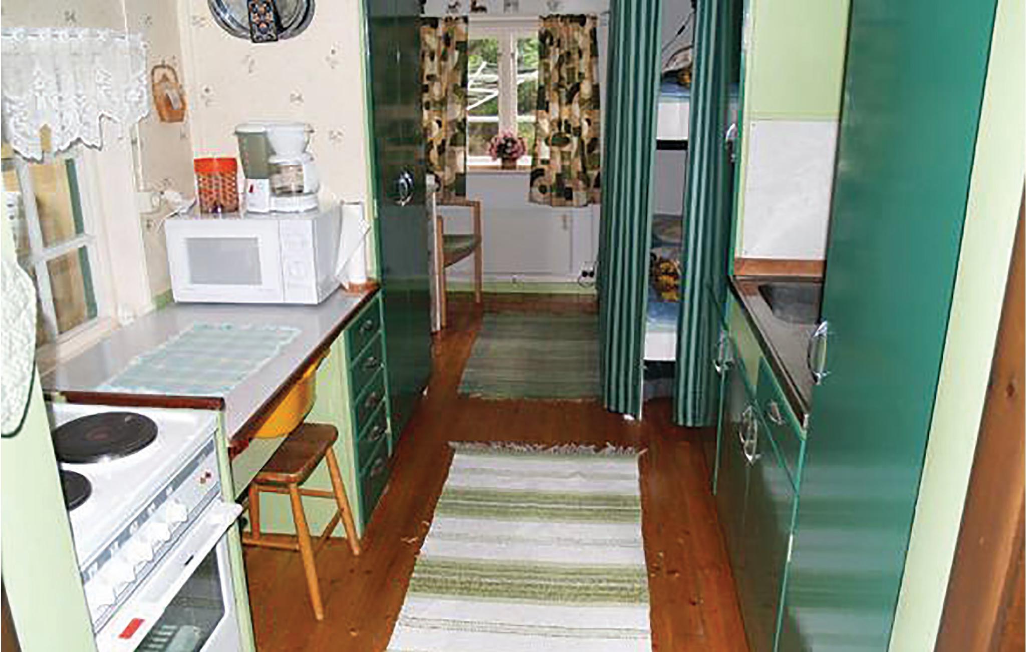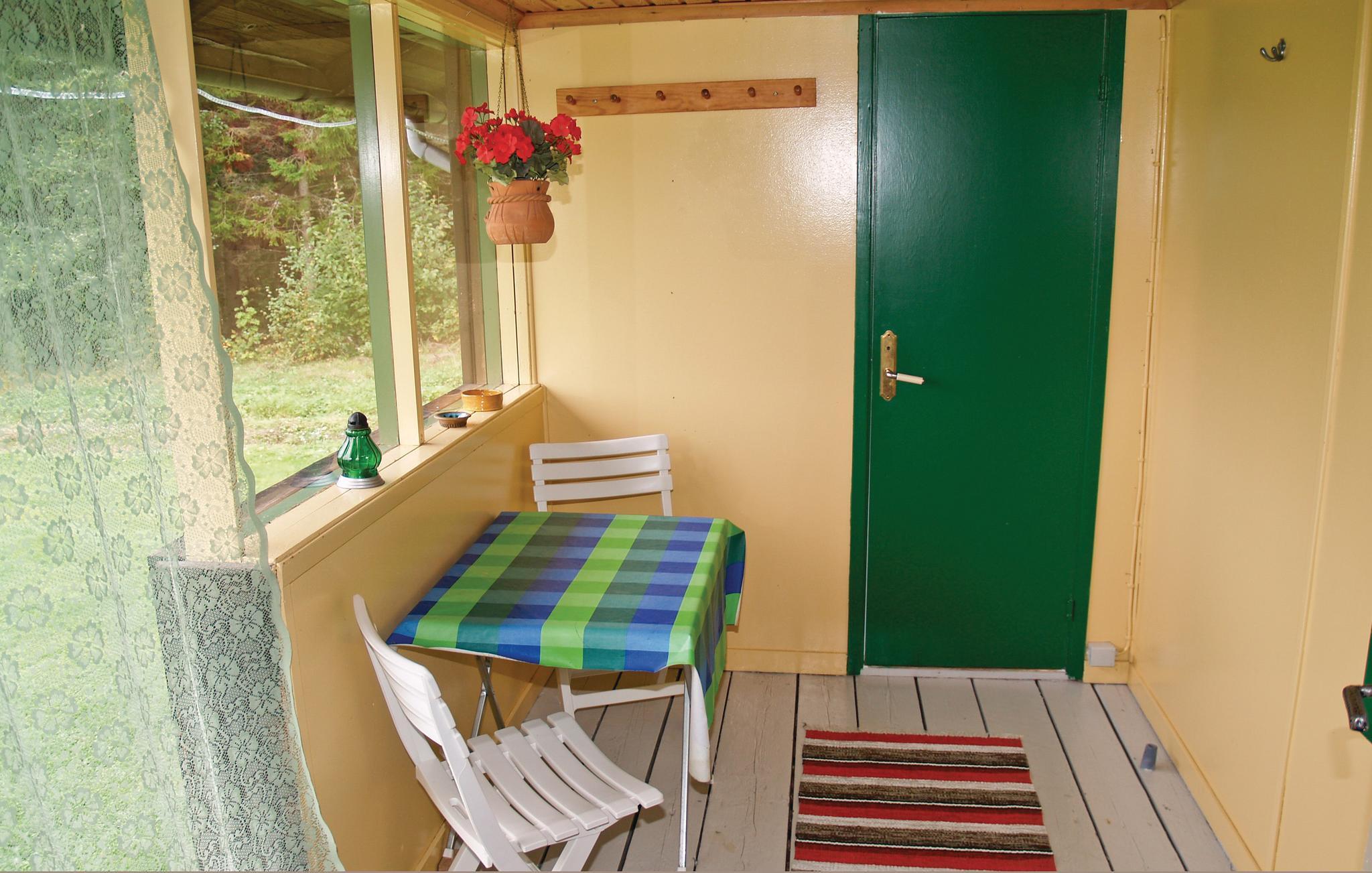Glæd jer til en skøn ferie i dette kompakte træhus med en hyggelig og personlig atmosfære nær den fiskerige Lakenesjön. Huset ligger omgivet af enge og høje fyrretræer og tilbyder masser af privatliv. Træd indenfor, og mærk straks den rustikke charme ved træpanelerne. Slap af i sofaen efter en aktiv dag på vandet. Et lille tv og et sofabord skaber en enkel og hjemlig atmosfære. Tilbered jeres måltider i det funktionelle køkken og nyd en kop kaffe i den glasindhegnede entré, mens I nyder det grønne.