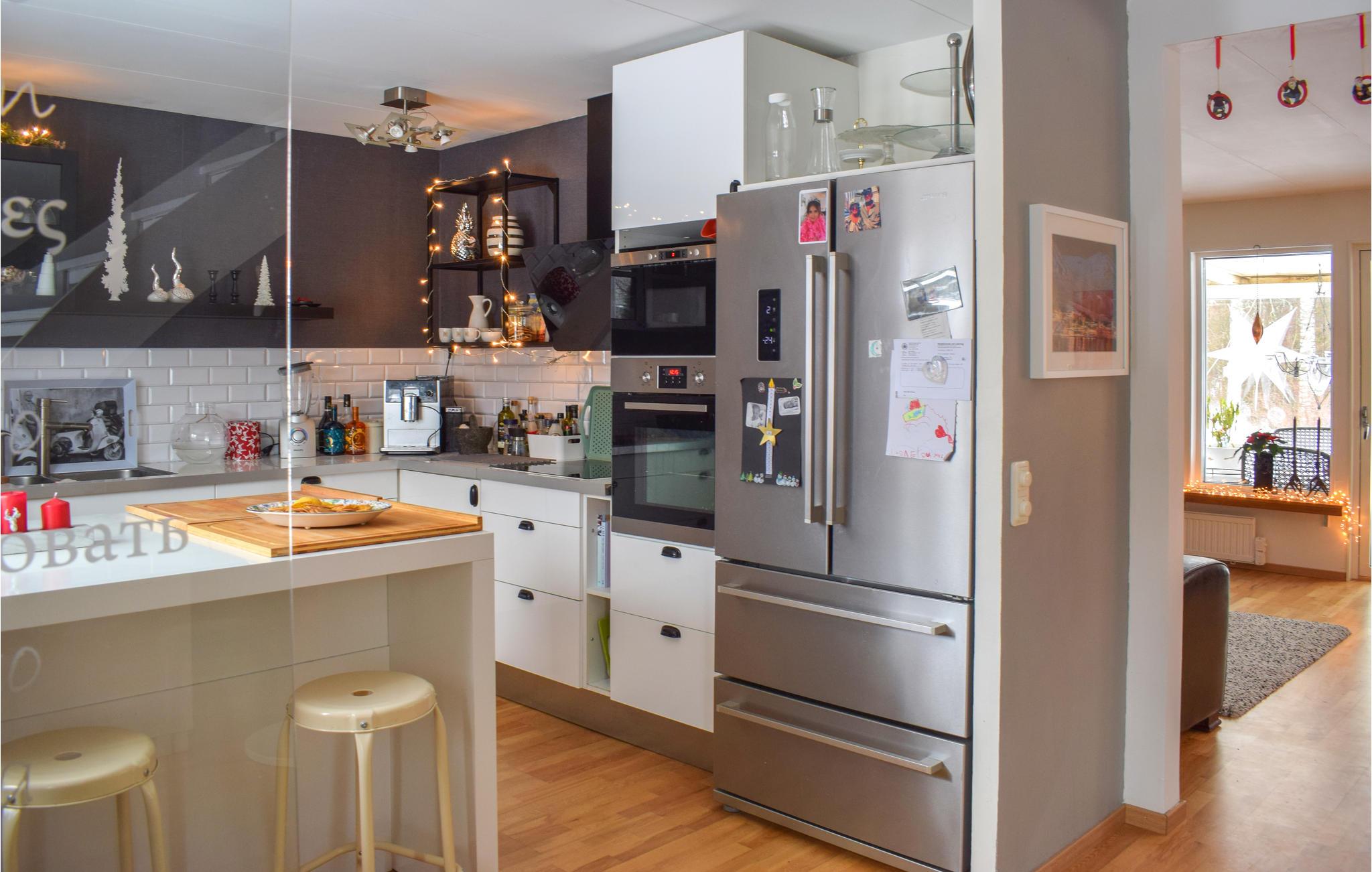 Dette dejlige hus venter jer i Lammhult. Det er kun få hundrede meter væk fra flere søer og ligger på en stor grund, hvor I kan tilbringe en afslappende ferie i fred og ro. Huset strækker sig over to etager og byder på komfortabelt indrettede værelser, hvor I hurtigt vil føle jer hjemme. Det åbne køkken indbyder til hyggelige samtaler og stunder, mens der laves mad. Tilbring afslappende aftener i stuen foran brændeovnen i de køligere årstider.