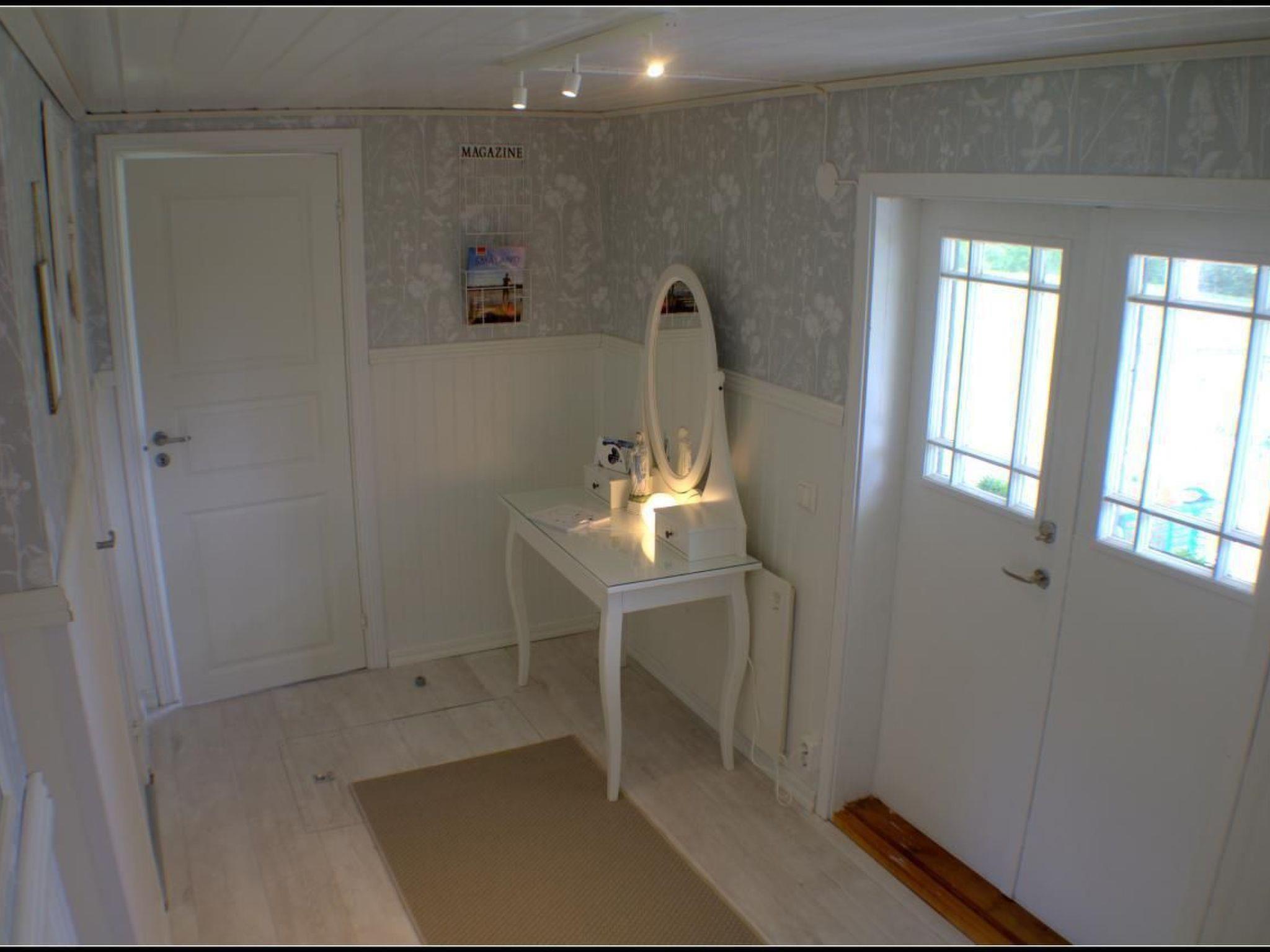 The house is designed for an occupancy of 4 persons. The house stands on a natural plot of approx. 2,500 square metres with lake views from all rooms. Harvest your own blueberries and cranberries on the property and roam through the open countryside. a rowing boat, a canoe and the barbecue complete the leisure character of our house. You can park your car safely on the property and take a virtual tour of our house "Kramphult Sjöåkra": Through the main entrance, which is sheltered by a covered veranda - where you can of course sit in the warm evening hours with the lake in front of you - you enter the hallway of the house. The master bedroom with double bed, wardrobe, chest of drawers etc. is to the right. The room is open to the pointed roof. Windows to the south and west make the approx. 15 square metre room spacious and bright. If required, we will of course provide you with a travel cot free of charge. You now return to the hallway and enter the completely redesigned and renovated bathroom on your right. Here we have created a bright and modern shower room with WC and washbasin. The window to the rear of the house provides additional daylight, while the small but functional kitchen is located next to the bathroom and can also be accessed from the hallway. The white country-style kitchen is equipped with an induction hob, extractor bonnet, dishwasher, fridge and plenty of worktop space. The design of the walls corresponds to the typical Swedish interior and therefore fits in beautifully with the holiday home. The kitchen is equipped with all utensils and equipment (e.g. toaster, microwave, coffee machine etc.). Through the kitchen you reach the typical Swedish back entrance and exit. The small outbuilding is located to the left of the rear entrance and houses the washing machine, a freezer, the sauna and a stainless steel filleting table for processing your catch of fish, etc. To the left of the main entrance you enter the approx. 18 square metre living/dining room. On the right is the cosy sofa with armchair and coffee table. The dining area is to the left of the window with a view of the lake. Flat-screen TV with German programmes, WLAN connection and the open fireplace round off the comfortable furnishings. The original wooden floor has been newly refurbished and the second bright bedroom is located next to the living/dining room. Equipped with a double bed (2.00 x 1.60 m), chest of drawers and wardrobe - and of course a view of the lake, all rooms can be heated with electric elements, in the living room with an open fireplace. All furniture and furnishings were newly purchased in 2018.outdoor area:Here you have sufficient terrace and garden furniture for relaxation. Large table, parasol and loungers, barbecue fireplace and rotary clothes dryer. There is also a small 3.90 metre rowing boat down by the lake for fishing and exploring the lake. A small four-stroke motor or a canoe can be hired on request. If required and depending on availability, larger "Linder Fishing 440" 5 or 6 hp four-stroke fishing boats with appropriate equipment can also be hired. These are particularly useful for our fishing guests. For details see details and by arrangement (a deposit is also charged for this). Entertainment:TV (flat screen TV), satellite system with German programmes, radio/CD player, many children's and board games, books, thrillers and magazines, DVD player, Internet connection with WLAN.Miscellaneous:Pets are unfortunately not allowed, non-smoking house, additional costs to be settled on site, payable on departure. The obligatory final cleaning is carried out by us and is subject to a charge. In this way we also guarantee the high standard of hygiene in the holiday home. The energy costs will be charged according to consumption at the end of your stay. Unfortunately, it is not possible to give an exact figure due to the fact that costs vary considerably in Sweden. The information in the menu of additional costs is therefore only a rough estimate.services and information:The handover and acceptance of the house will be carried out by us personally. If required, we are also personally available on site for questions and problem solving during your stay. You can also hire bed linen or towels for a small fee if required.payment for additional services and incidental costs can be made cashless on site or in advance by invoice.we look forward to seeing you.