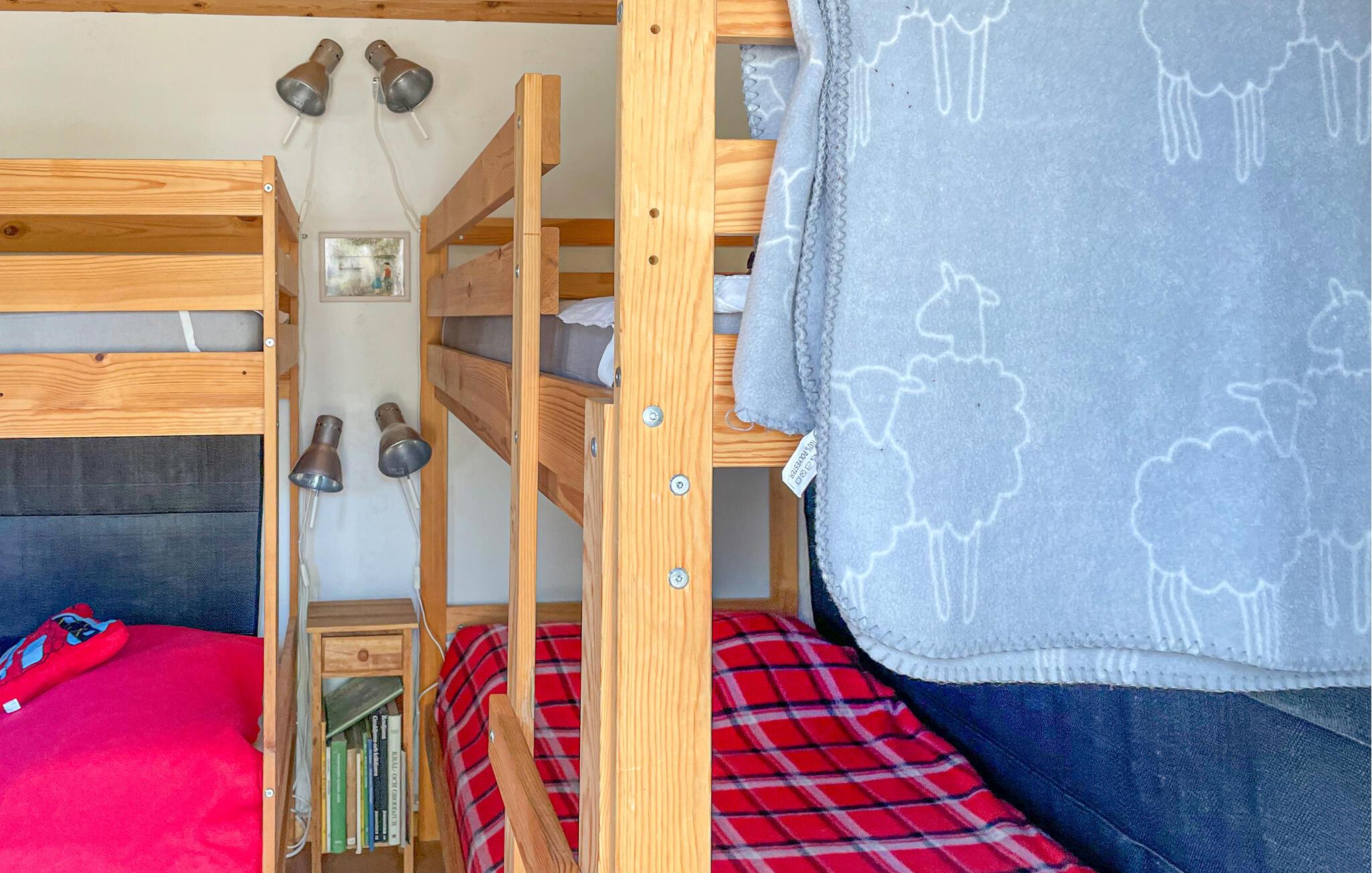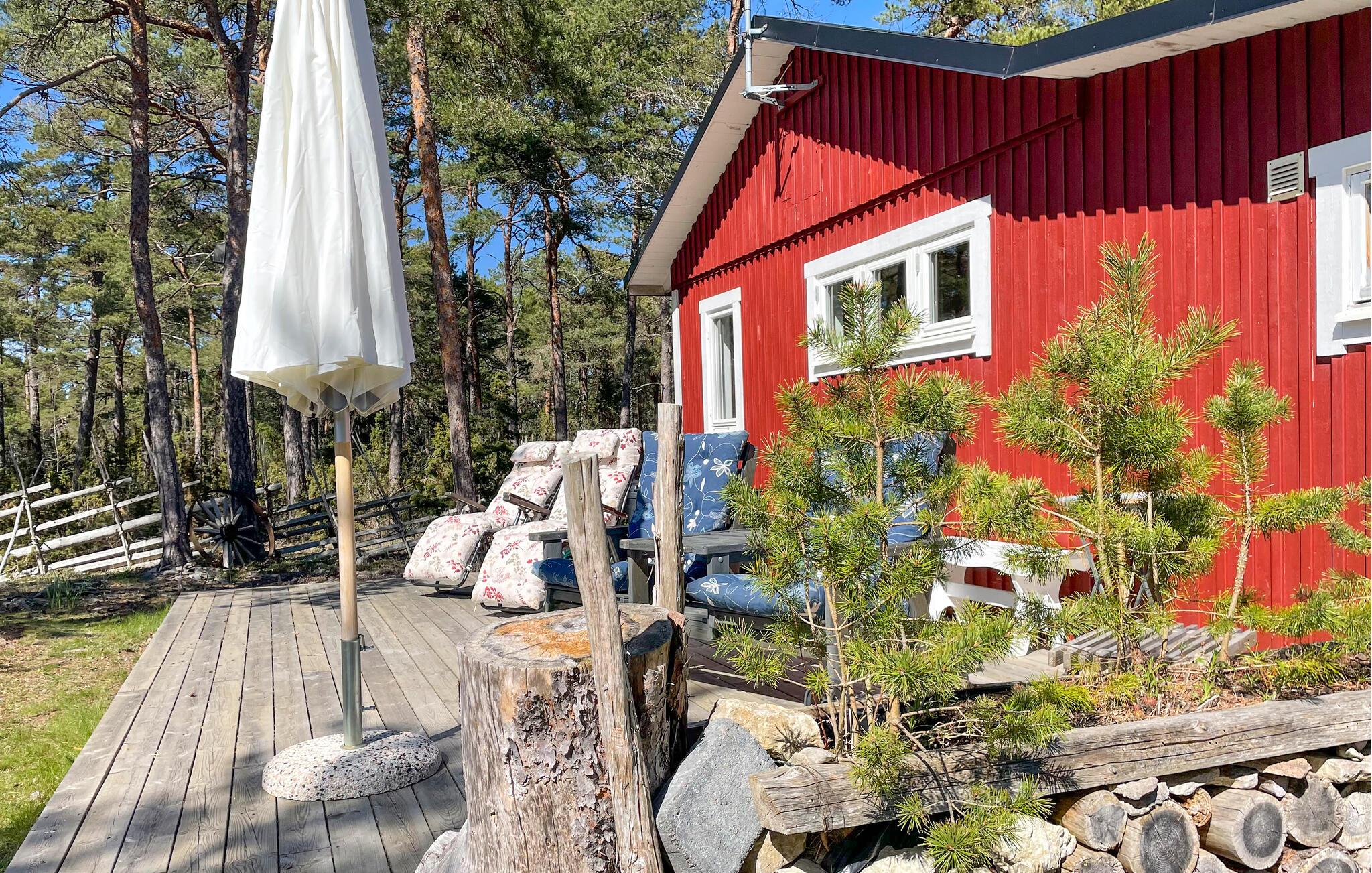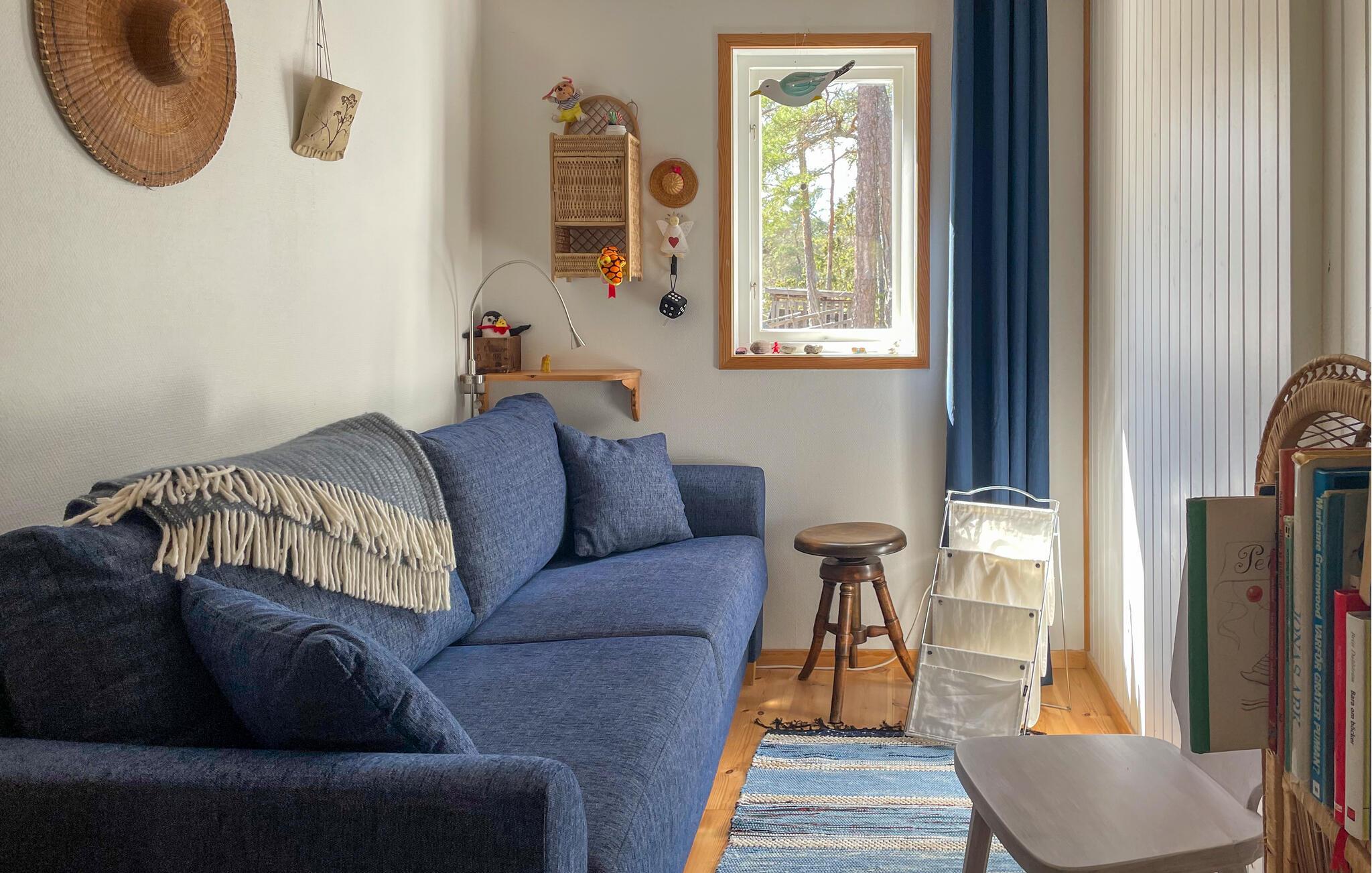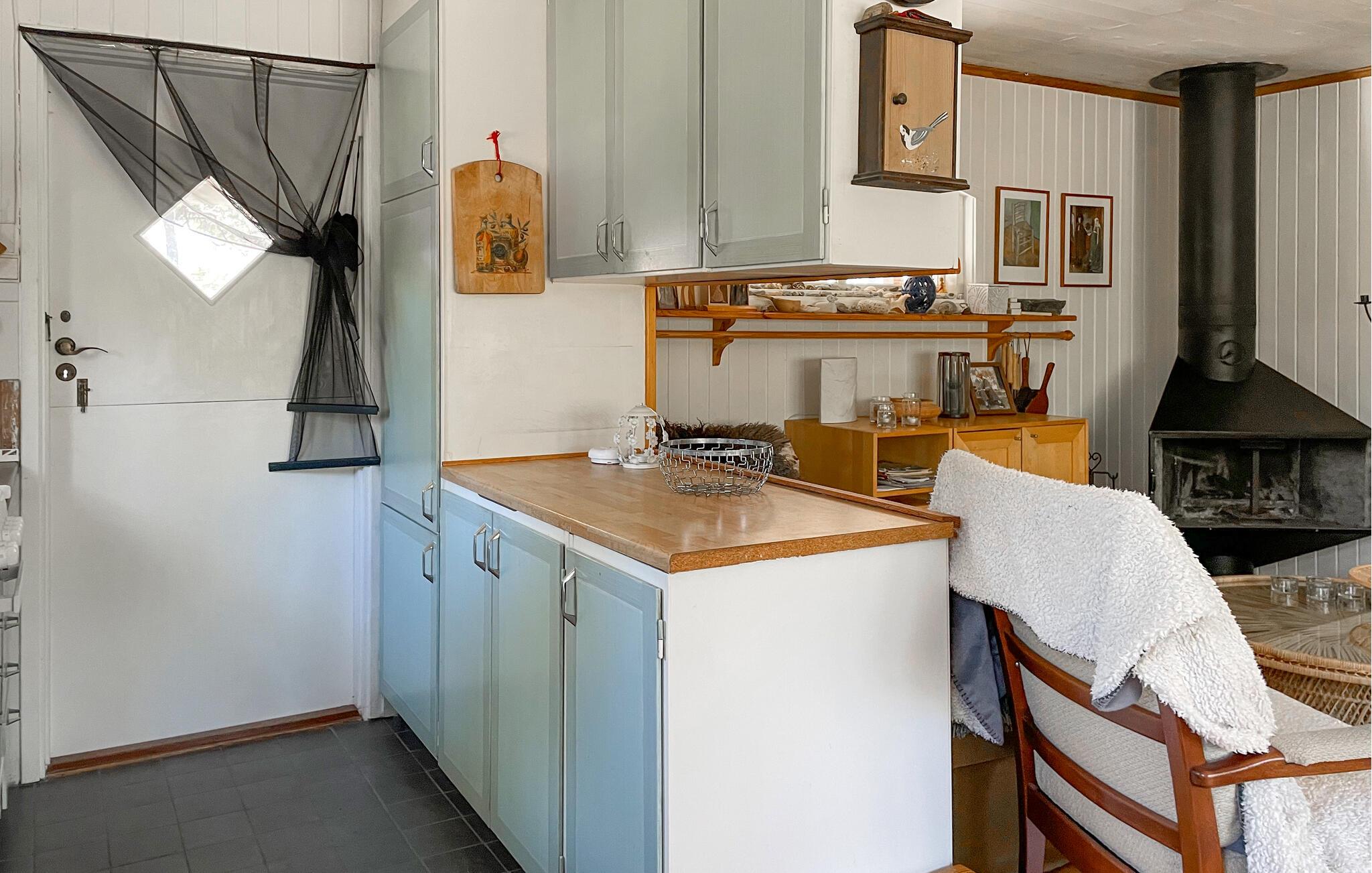 Omgivet af en skov inviterer dette charmerende feriehus jer til en idyllisk ferie med familien. Sæt jer ned i det hyggelige siddeområde til hyggelige måltider og hyggelige spilleaftener, og brug den komfortable sofa til afslappende læsning, mens den norske brændeovn sørger for ekstra komfort.