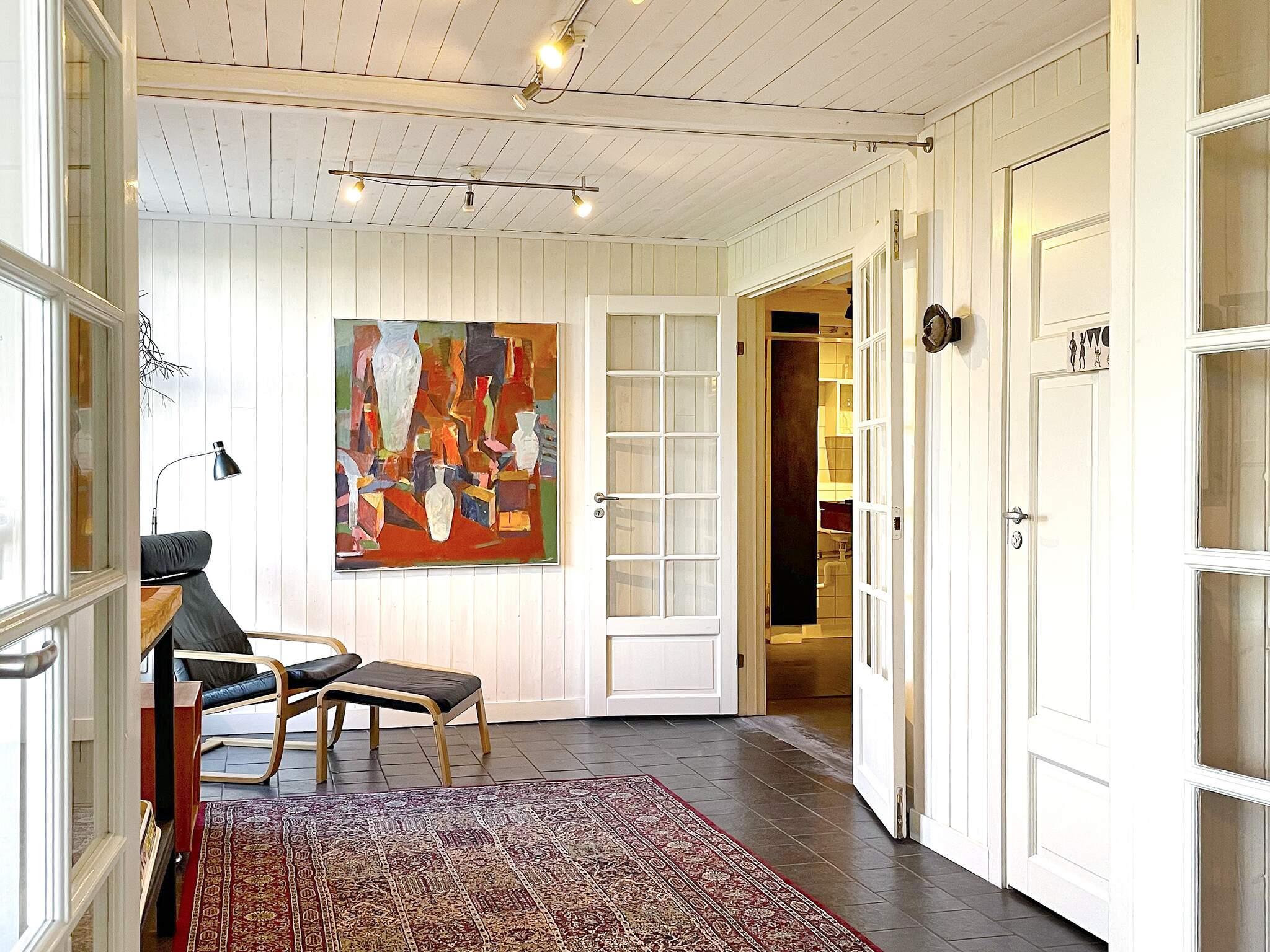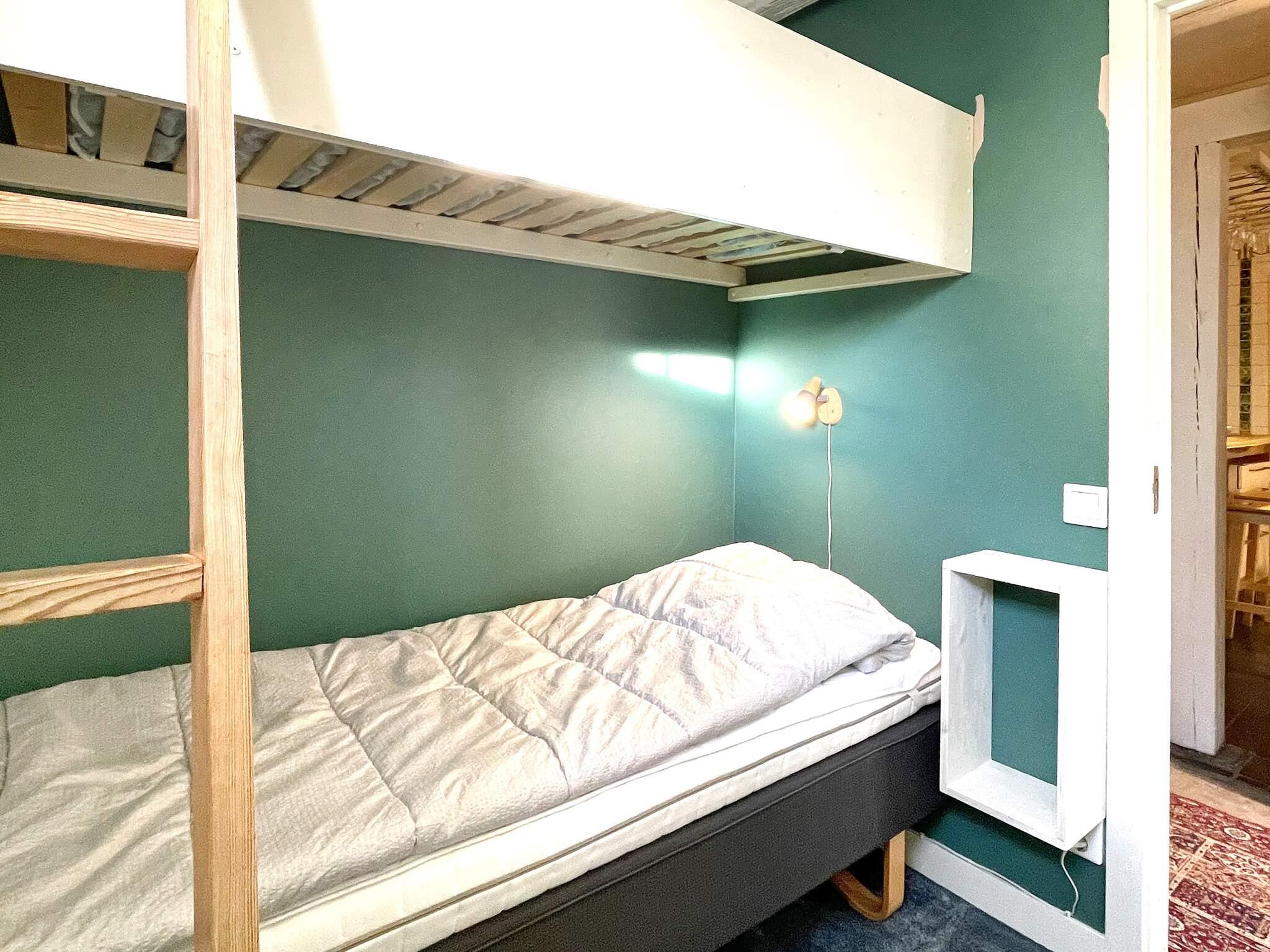 Till höger ligger två mindre sovrum. Det ena med en våningssäng 80cm bred och det andra med en dagbädd som är 2x80 i storlek utbäddad. Innanför kökdelen finns ett badrum med badkar/dusch och tvättmaskin. Intill en städskrubb med wc innanför. Bakom köket vid köksingången ligger ytterligare ett trevligt sovrum med en enkelsäng 80cm. Rakt fram i hallen öppnar ett stort rum upp si med fina trädörrar med glas och fåtöljer att sitta i. Här finns ett större badrum med dusch, handfat och wc. Allt vitt och helkaklat. Du välkomnas sedan in ett hemtrevligt vardagsrum med minde matbord och skön soffa. Personlig och varm inredning som gör att det nästan känns som hemma. Här bredvid ligger huset fjärde sovrum med en dubbelsäng 180cm bred och med altandörr ut till den vackra naturen.