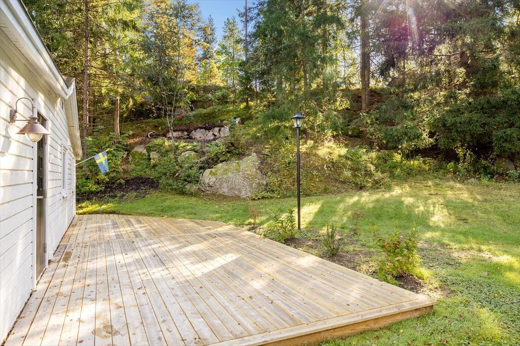 Ca. 20 km øst for Stenungsund med sine idylliske øer i skærgården nord for Göteborg, ligger dette feriehus sammen med udlejerens bolig, som ligger omkring 100 meter derfra. Feriehuset er placeret på en ca 5.000 m² stor havegrund, omgivet af træer, i landlige omgivelser. I nærheden ligger floden Göta Älv, som løber langs vejen til byen Lilla Edet, ca. 8 km fra huset, her finder man dagligvarebutikker samt et par pizzeriaer.
