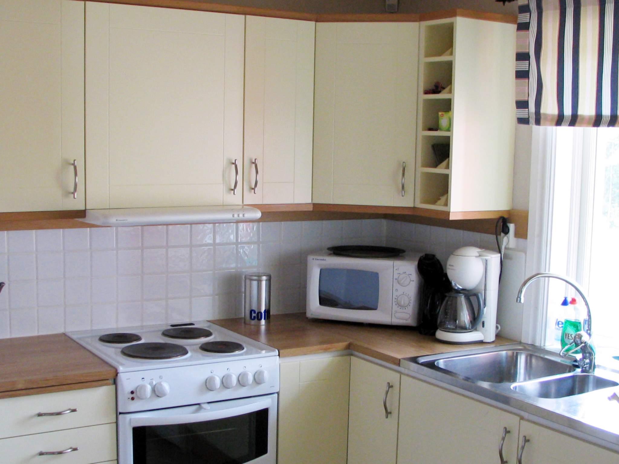 Køkkenafd.: el-komfur, køleskab, fryser 60 - 99 l, mikroovn, emhætte, kaffemaskine, opvaskemask.