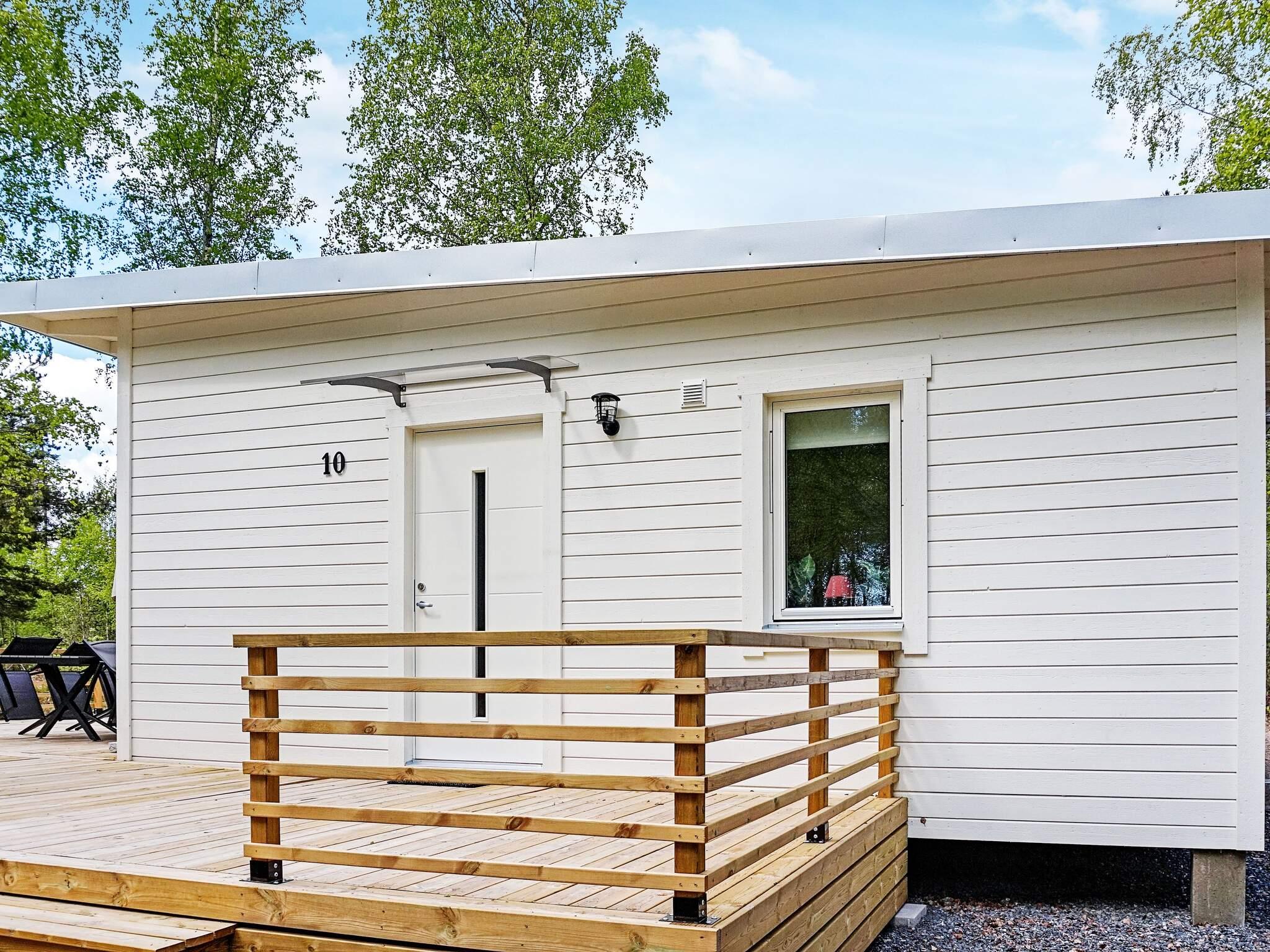 På östkusten i den lilla charmiga orten Loftahammar ligger detta nybyggda fina hus. Huset ligger som sista hus på en liten gata ovanför centrum och båthamnen. Huset andas nytt och fräscht och har allt man behöver för en trivsam semester. Från hallen sträcker sig rummet med stor tv och ett kök med bardisk mellan kök och vardagsrum och två sovrum. Från rummet går dörren ut till den stora altanen där man kan ligga och njuta i solstolarna helt insynsskyddat eller njuta av måltiderna från grillen vid trädgårdsbordet. Från altan däcket ligger också gäststugan som passar bra för dom lite större barnen eller om man reser två par. Stugan har två sängar och här har man även en liten köks del, allt i samma öppna yta. Där finns också A/C.