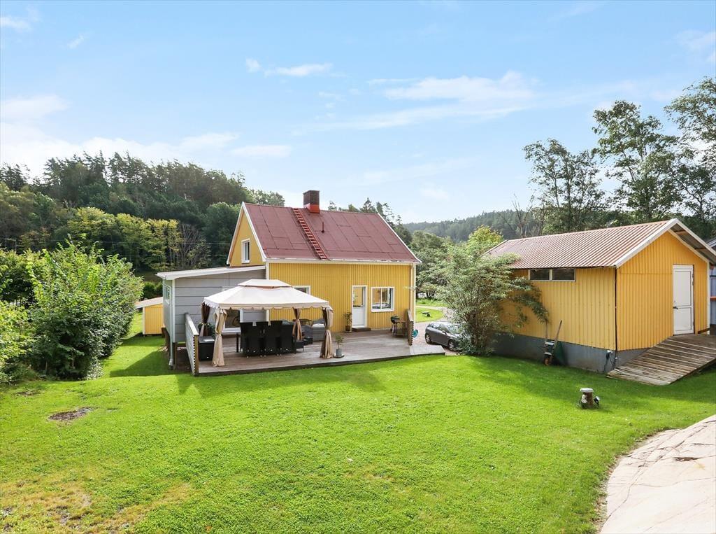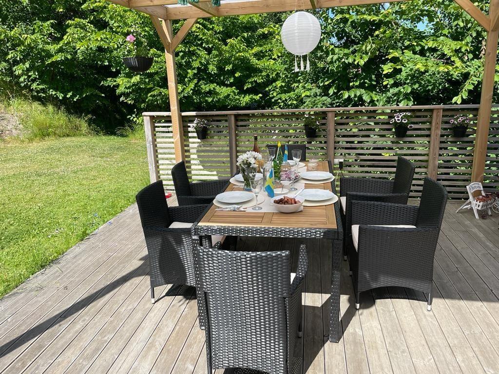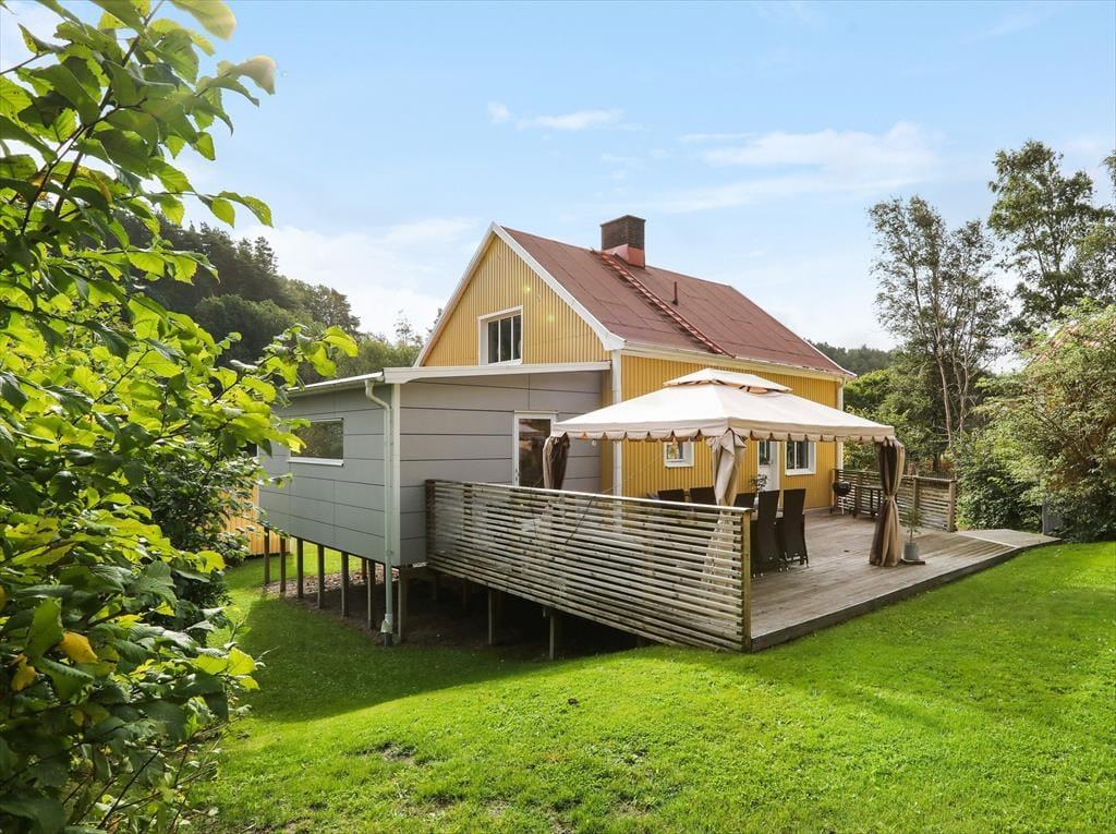 Sommerhus i Lysekil, Vestsverige, med plads til 8 voksne. Der er en hyggelig indretning med bl.a. brændeovn, og du finder desuden vaskemaskine og opvaskemaskine i boligen.