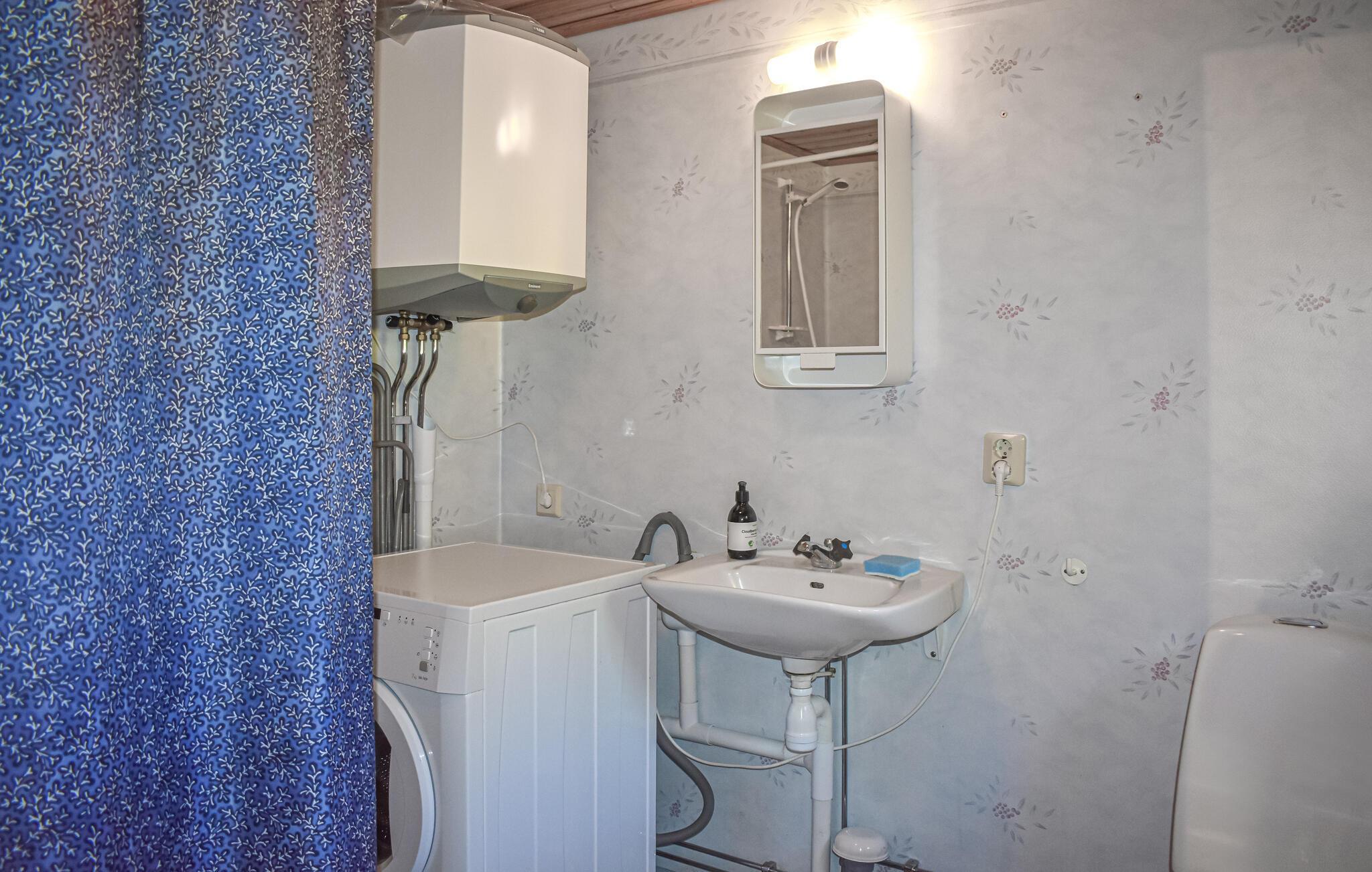 Dette praktiske og hyggelige feriehus tilbyder alt, hvad I behøver for en afslappende ferie. Indretningen er funktionel og skaber en behagelig atmosfære. Den åbne opholdsstue lægger op til hyggelige stunder, hvad enten det er ved middagsbordet eller til afslapning efter en oplevelsesrig dag. Køkkenet er veludstyret, så I nemt kan tilberede jeres yndlingsretter. Store vinduer lukker masser af dagslys ind og giver en smuk udsigt over søen.