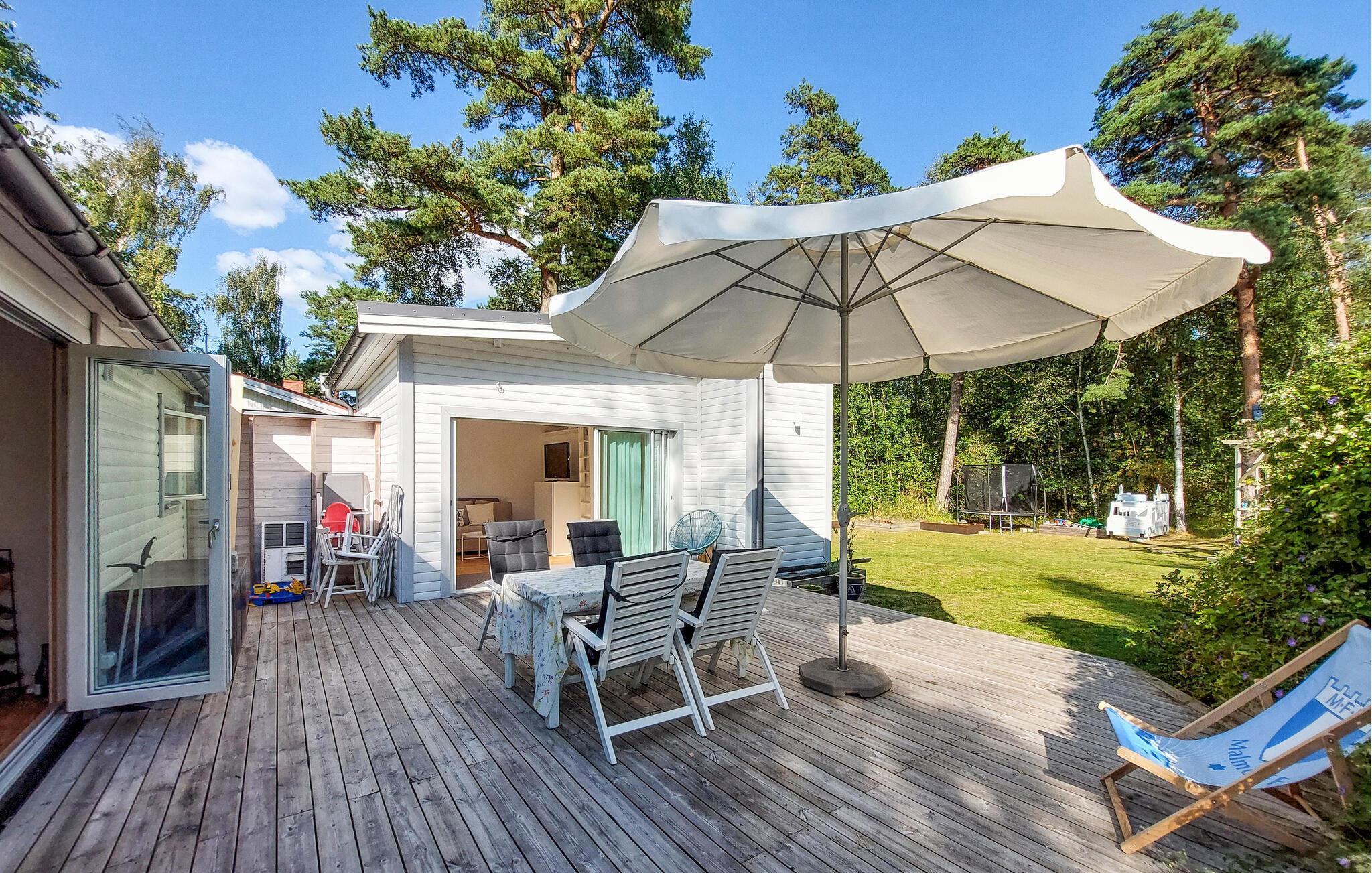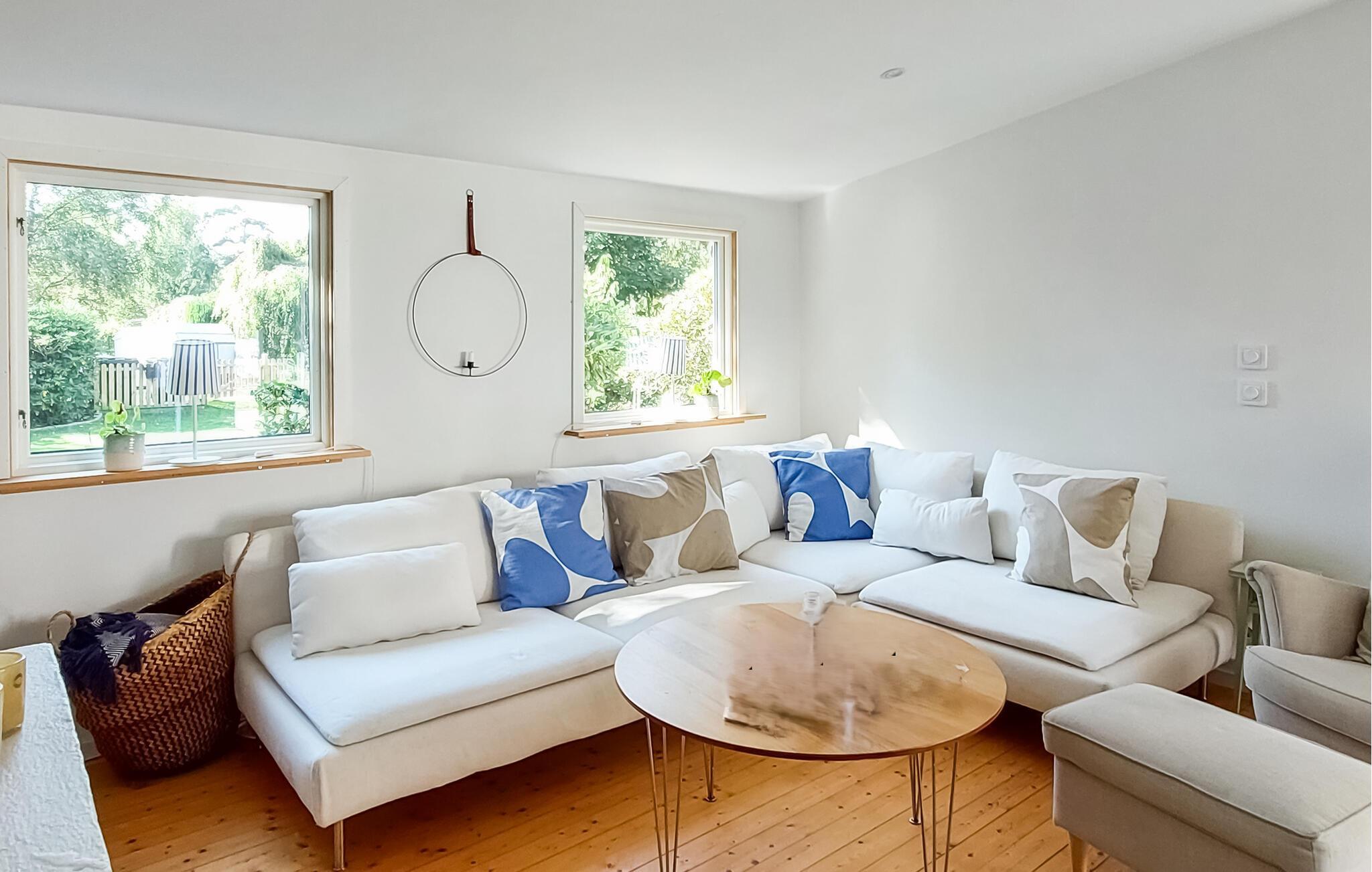 Velkommen til jeres feriehus i Mellbystrand, det ideelle sted til afslapning og kvalitetstid med familien. Nyd solrige dage på den rummelige terrasse, som er udstyret med komfortable møbler og et stort spisebord, perfekt til hyggelige stunder. Den lyse stue med det hyggelige sofahjørne og brændeovnen er ideel til afslappende aftener i en rolig atmosfære. Store vinduer lader masser af lys strømme ind og giver jer en skøn udsigt til den grønne natur. Det veludstyrede køkken gør det muligt at tilberede yndlingsretter og nyde dem i godt selskab.