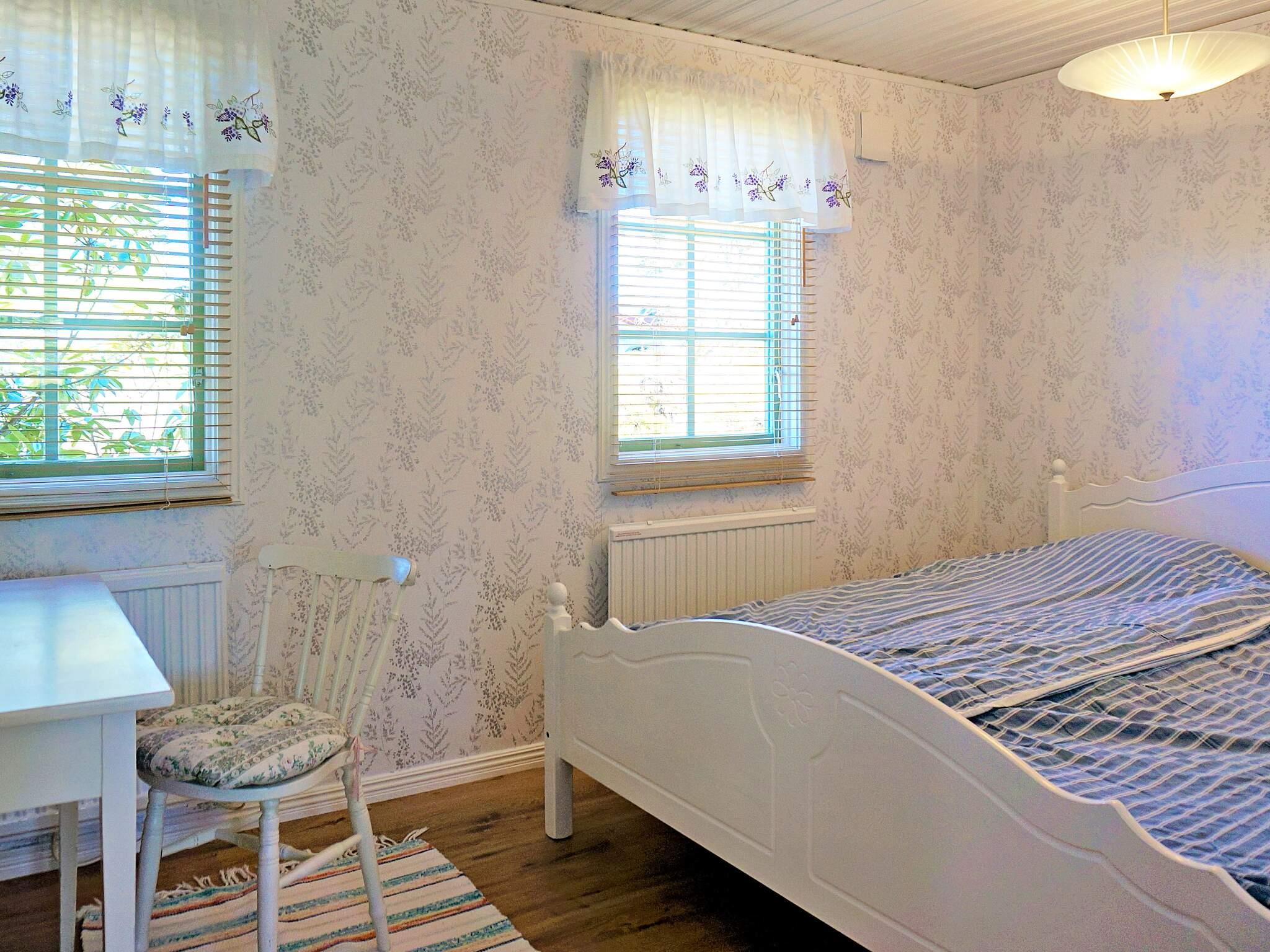 Endast en liten promenad stig nedan bakom husen kommer man ner till närmaste badplats. Här finns en liten brygga med en liten vik som är något stening. Promenerar ni ca 10 min rakt fram på vägen förbi ert boende kommer man till en större badplats som är familjevänlig med gungor, sandstrand, gräsmatta och brygga. Ingång är på baksidan av huset där Ni välkomnas av en hall. Direkt till vänster är badrummet med WC/dusch. Direkt till höger är rummets första sovrum. Här finns en våningssäng med en bredare undre del, 90/120 cm och med en altandörr ut. Rakt fram kommer man till huset vardagsrum med tv, skön soffa och fåtöljer och en härlig kamin att värma sig intill på kalla kvällar. Köket är öppet och integrerat med vardagsrummet med sittplats för 4 personer. Intill köket finns det andra sovrummet med 1 dubbelsäng 180cm. Framför köket finns altanen med infravärme för kalla kvällar. Huset är ljus och trivsamt möblerat. Du kan parkera på huset framsida och på baksidan.