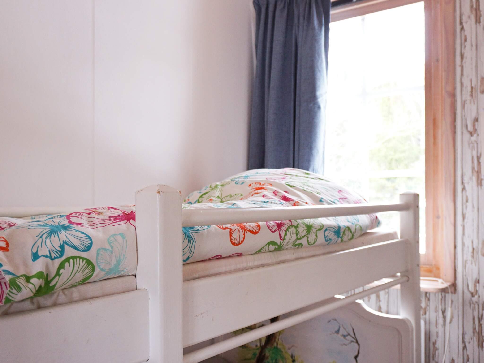 I huset finns tre sovrum varav ett med dubbelsäng och ett med enkelsäng samt ett barnsovrum med liten våningssäng (80x160 + 70x110). Huset passar perfekt för 3 vuxna och 2 mindre barn som kan dela på våningssängen. Perfekt för familjen!