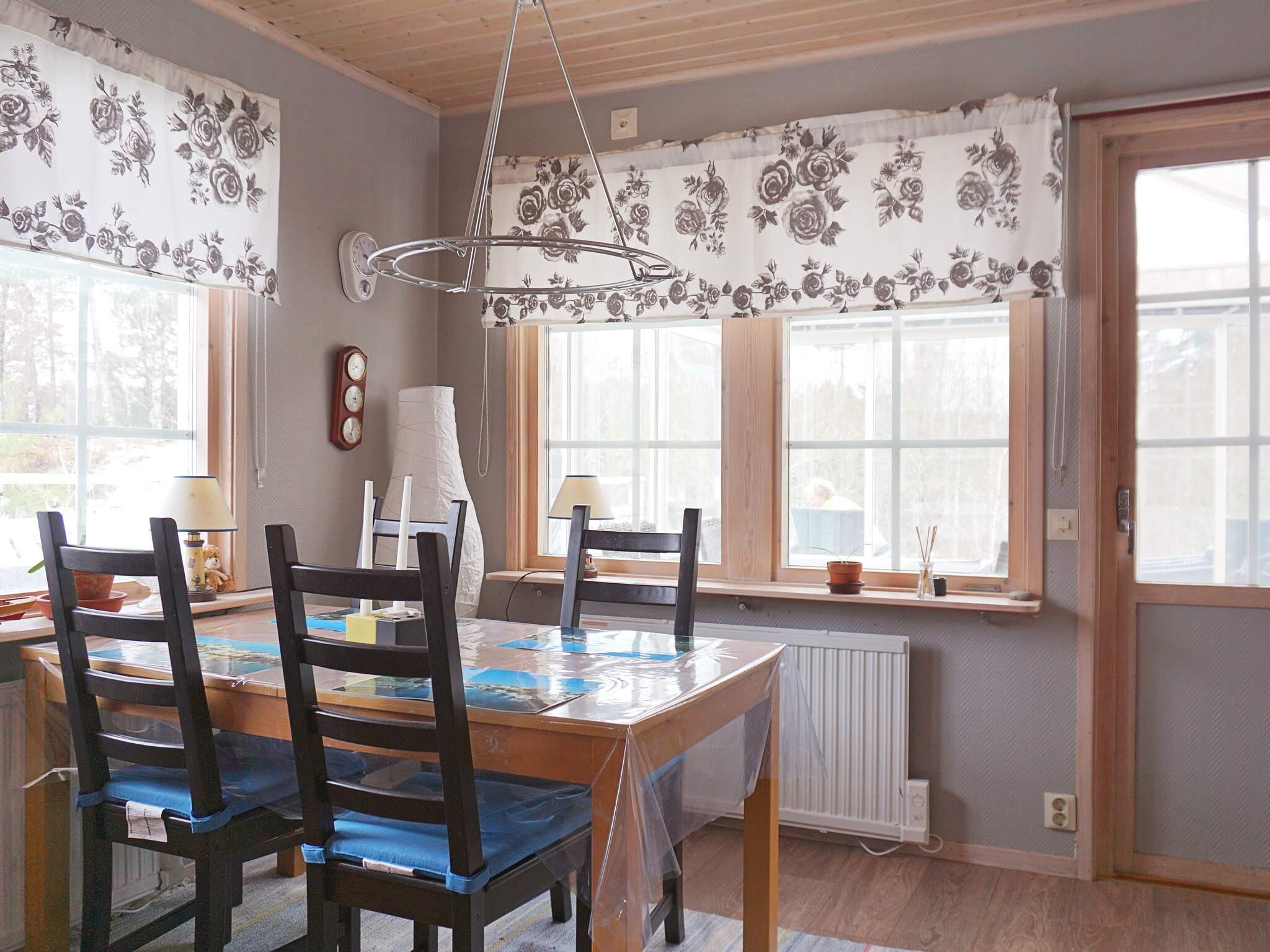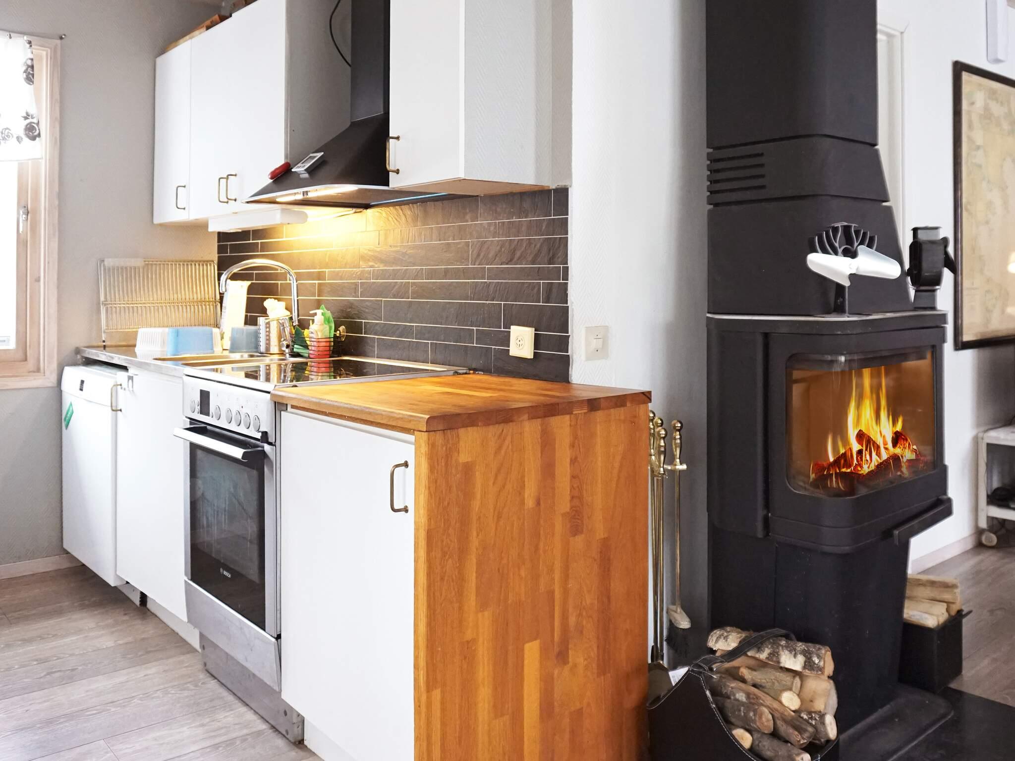 Det öppna köket är utrustat med bl a med spis, mikro, kyl/frys, kaffebryggare och diskmaskin. Från matplatsen når ni det inglasade uterummet och vidare ut på altanområde med sommarmöbler och grill. Här kan ni grilla er en god bit mat och avnjuta härliga måltider alltmedan solen så sakteliga går ner i nordväst. Stugan har WiFi uppkoppling.