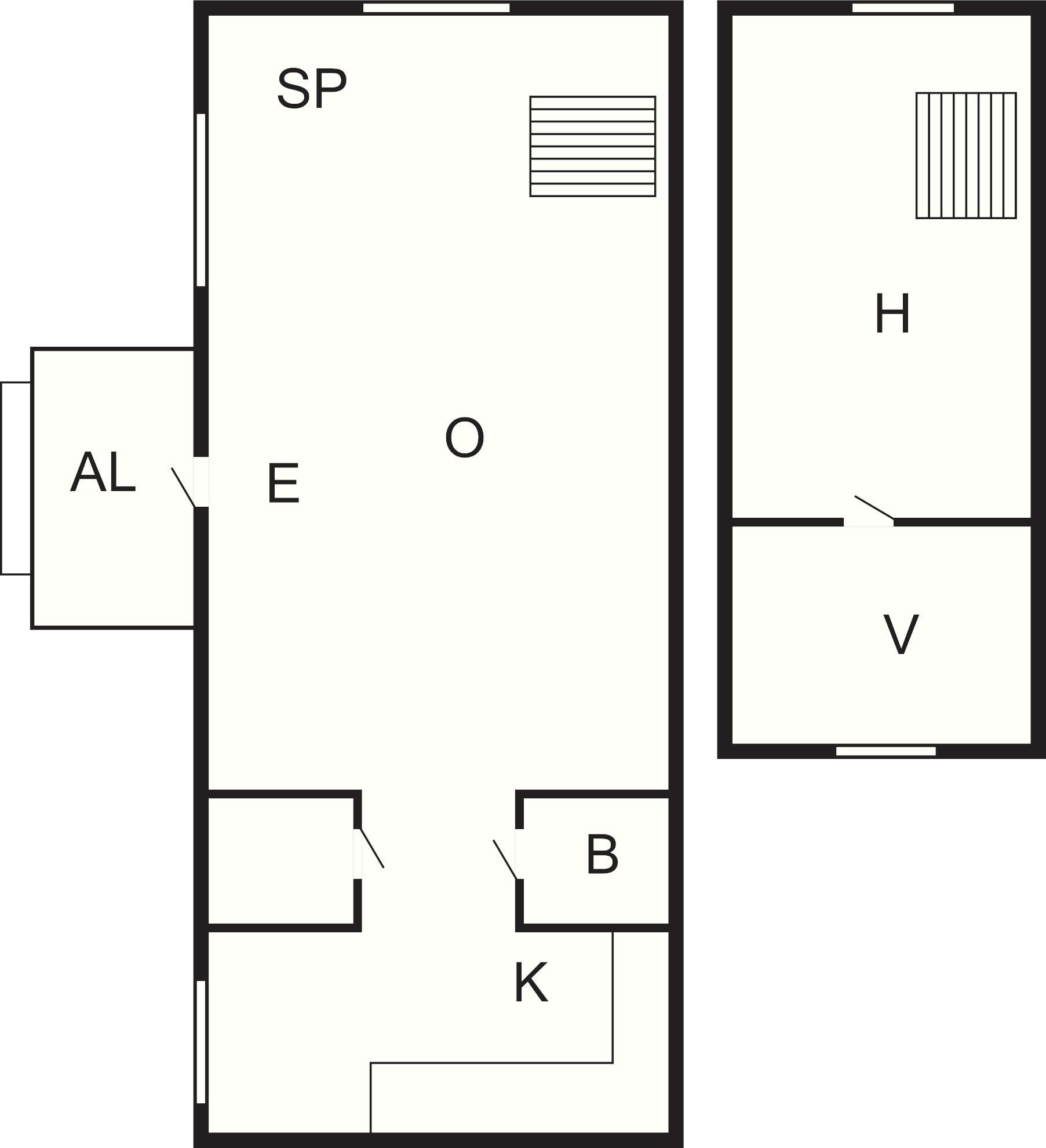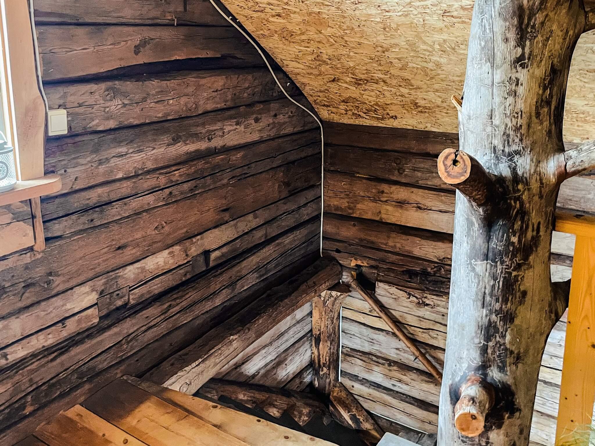 På övervåningen, en något brant trappa upp är 2 enkelsängar placerade. I rummet innanför finns en dubbelsäng för ytterligare 2 personer att sova i. Här är det gott om golvyta men snedtaket begränsar takhöjden. På den vackra verandan kan avnjutas en kopp kaffe med utsikt över sjön. Även utemöbler finns att tillgå för intag av måltider eller en stunds avkoppling vid utomhus.