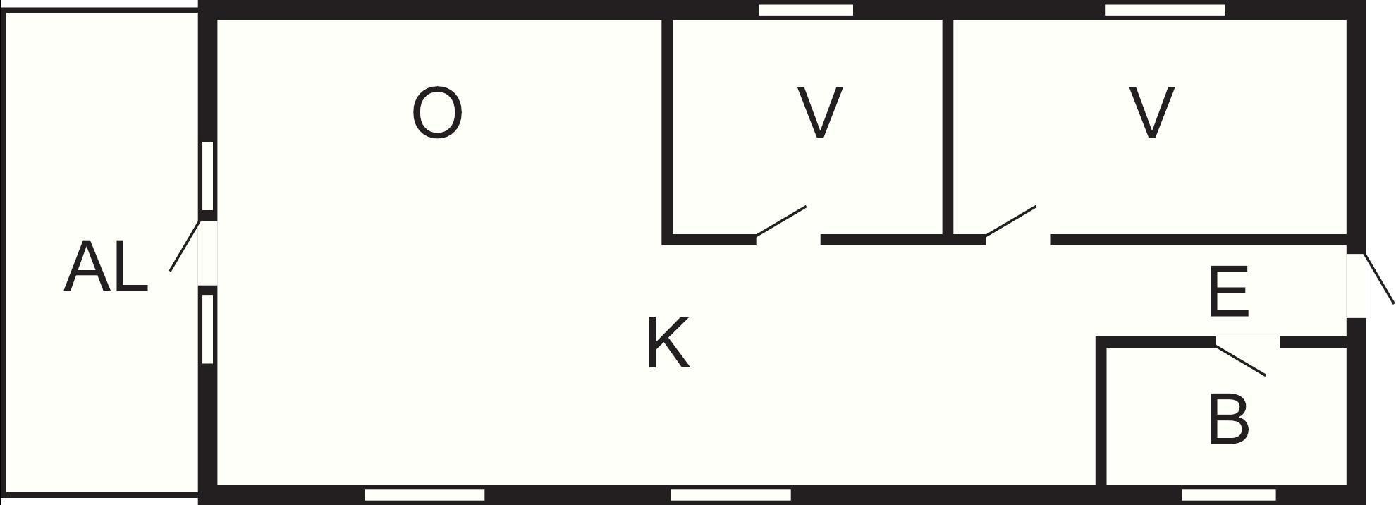Här finns plats för fyra personer fördelat i ett sovrum med dubbelsäng och ett med två enkelsängar. Det är ett öppet kök med ett kombinerat vardagsrum och centralt huset finns en mysig braskamin. Observera att det är förbjudet att elda med kol/briketter i kaminen!