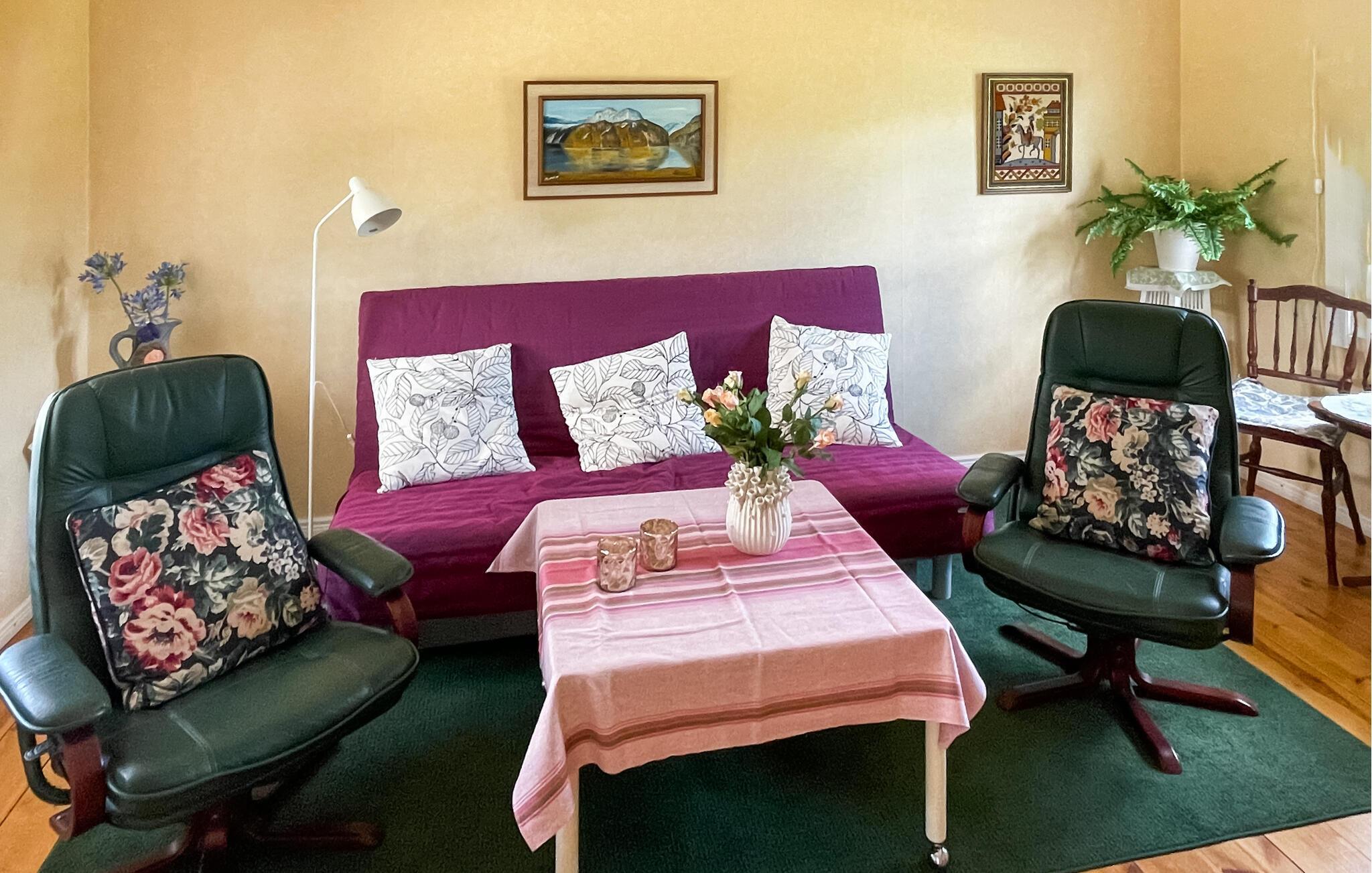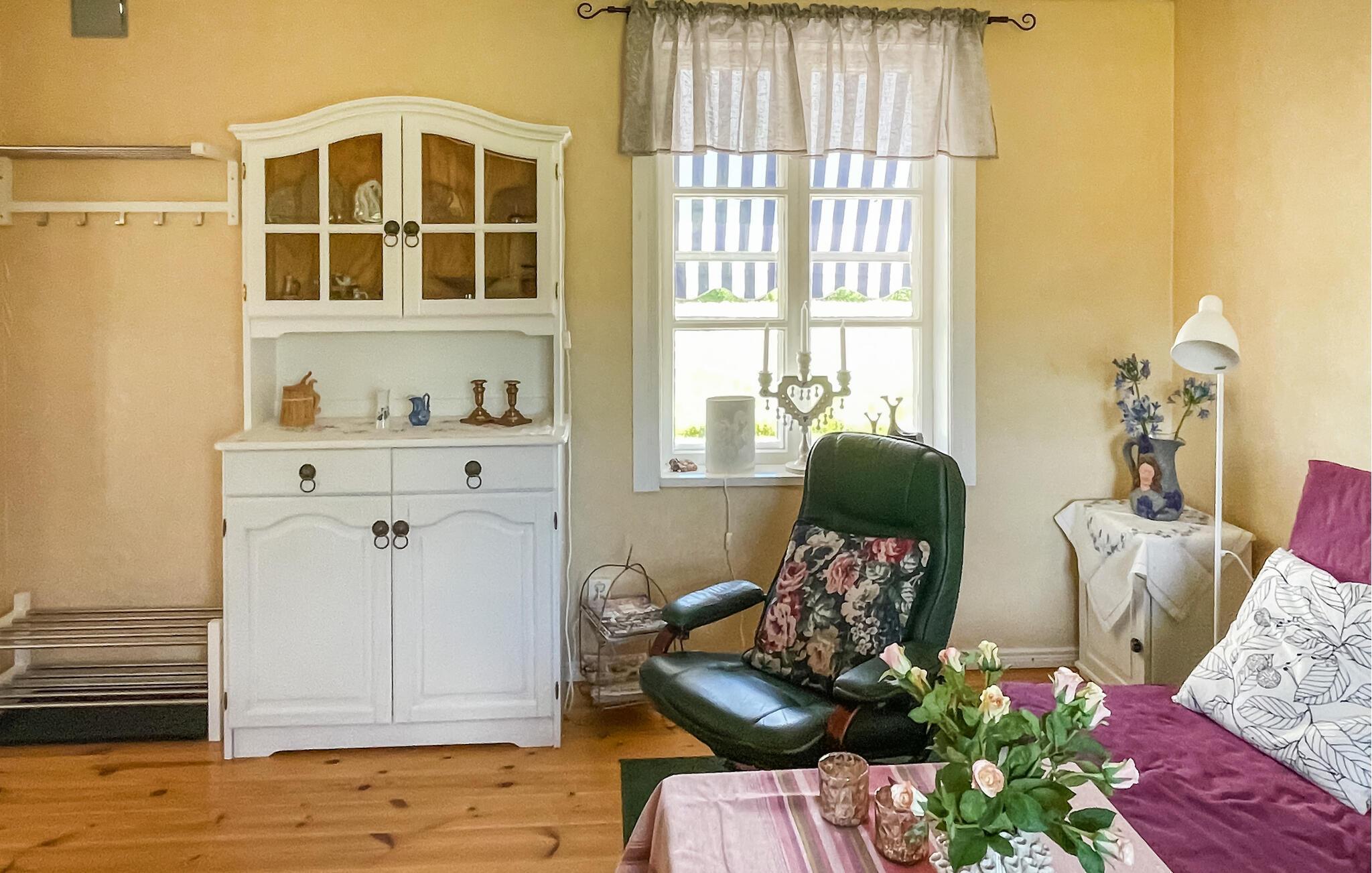 Hold en afslappende ferie i dette dejlige hus i Ramsnäs. Den hyggelige indretning og det lyse design skaber en hyggelig og indbydende atmosfære. Blandingen af moderne løsninger og rustik charme skaber et harmonisk miljø, der fremmer afslapning og velvære. Den lyse bolig byder på komfort, mens verandaen er et ideelt sted at nyde en kop kaffe og nyde udsigten over den omkringliggende natur.