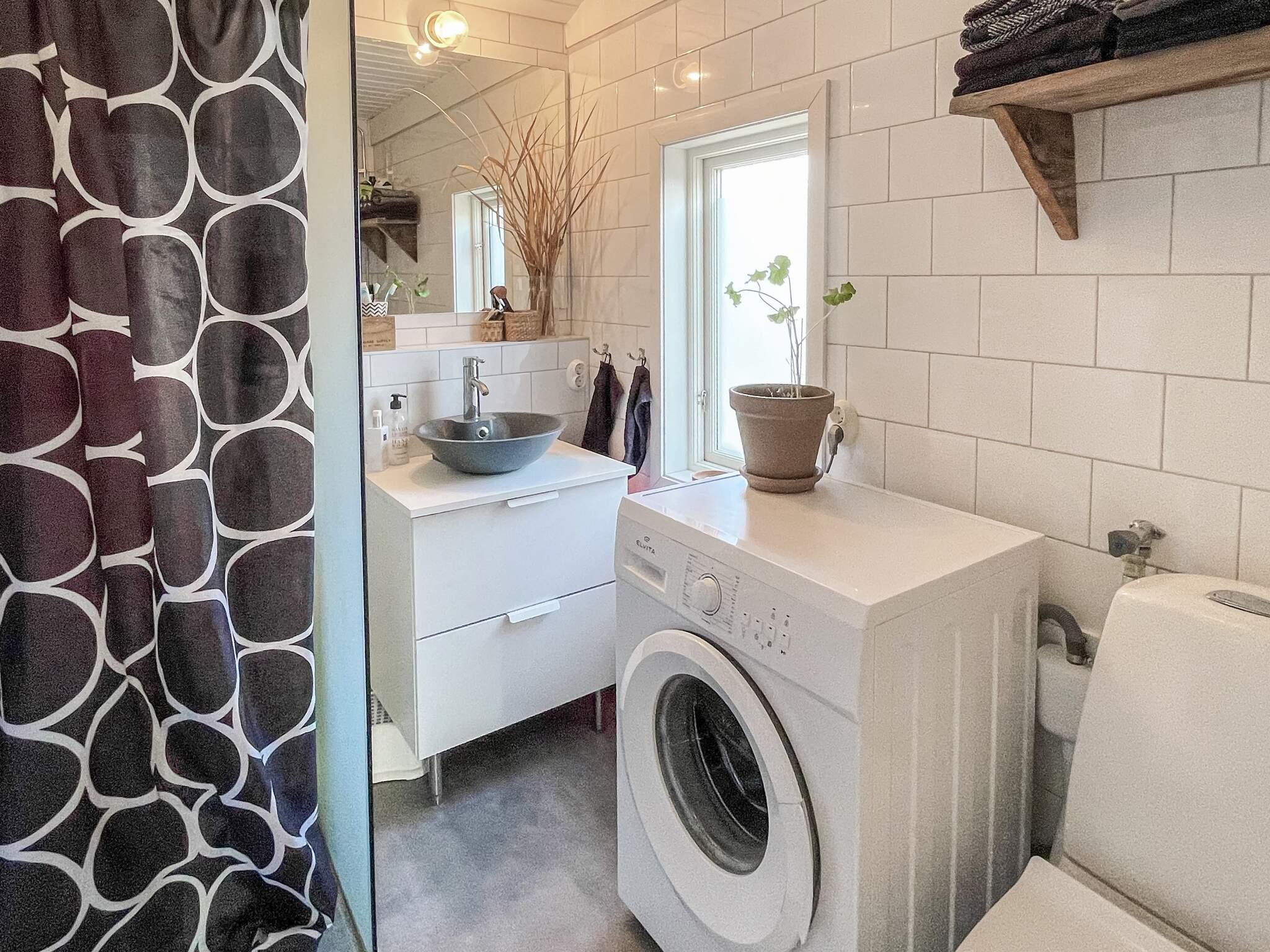 Bad/wc: Vaskemaskine, wc, håndvask, bruser