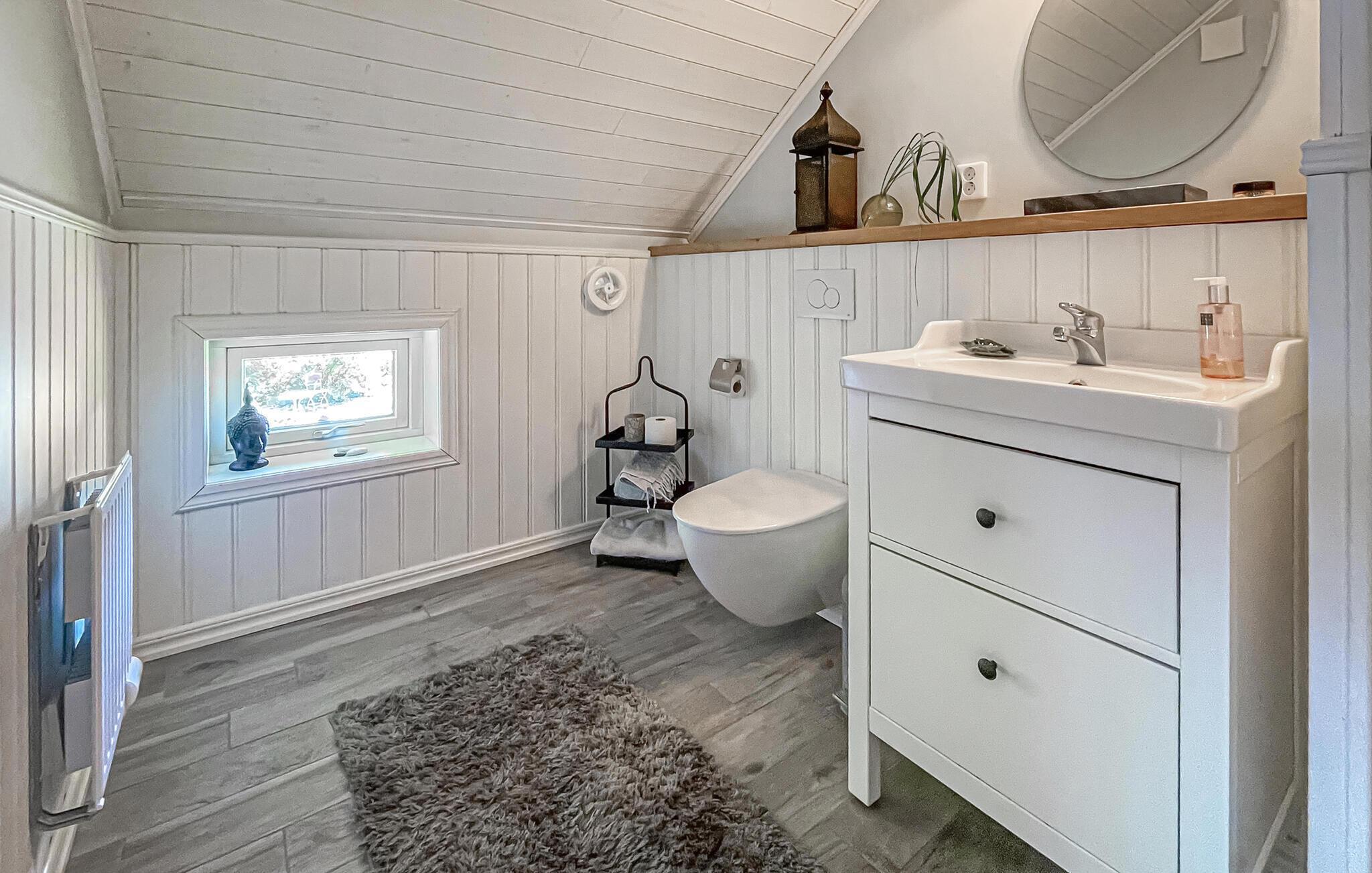 Velkommen til dette fortryllende feriehus, som vil begejstre jer med sit lyse og hyggelige interiør. Her har I masser af plads til at tilbringe afslappende dage med familien midt i fred og natur. Glæd jer til at lave mad i det indbydende køkken og planlægge jeres aktiviteter over harmoniske måltider. Lyt til knitren fra pejsen, mens I slapper af med en bog eller tilbring hyggelige aftener med at spille spil med familien.