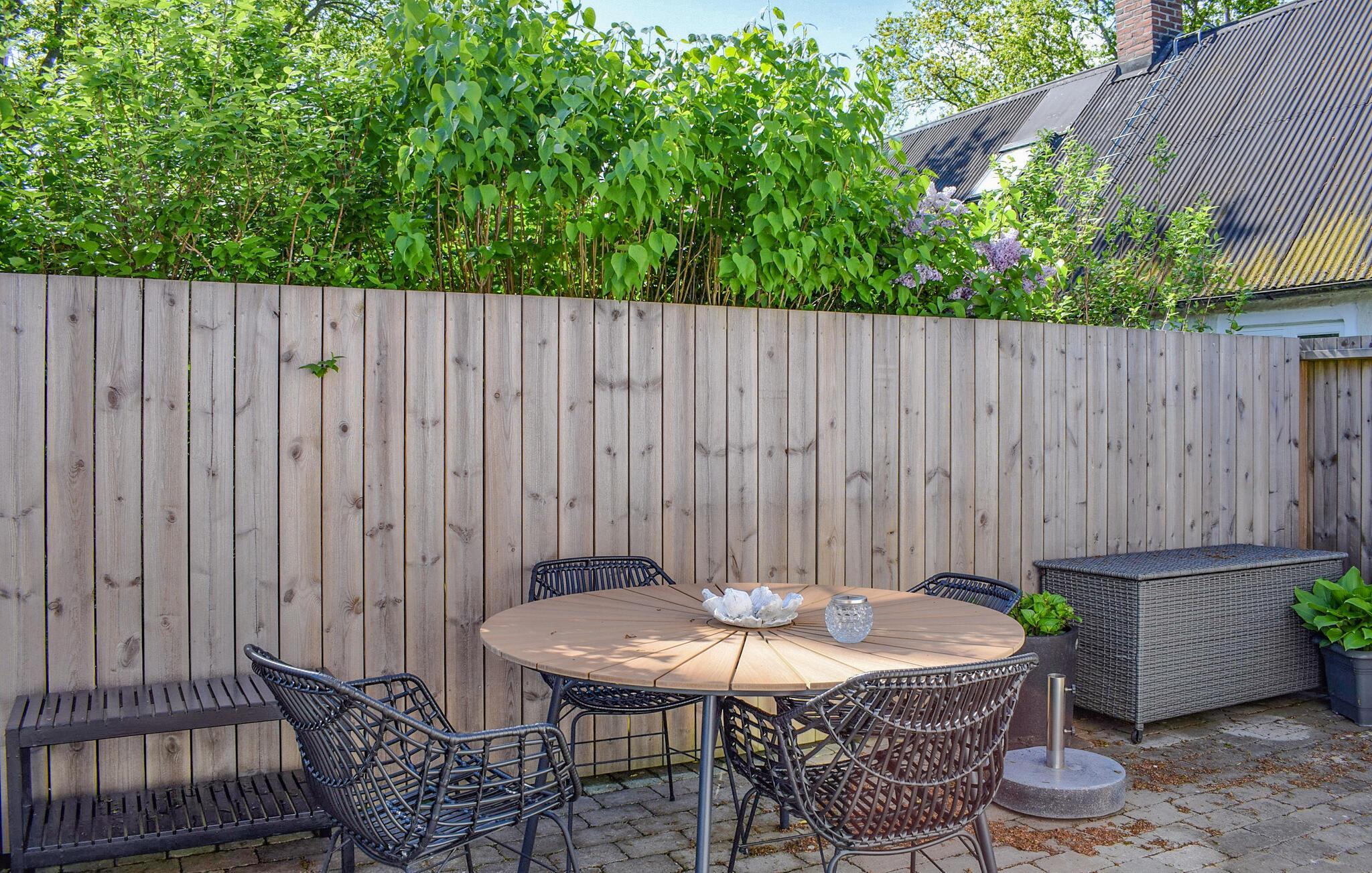 Børnene kan lege trygt på den indhegnede grund. På solrige dage kan I nyde en solid morgenmad på terrassen, fordybe jer i jeres ferielæsning i skyggen og afslutte dagen med en grillmiddag.