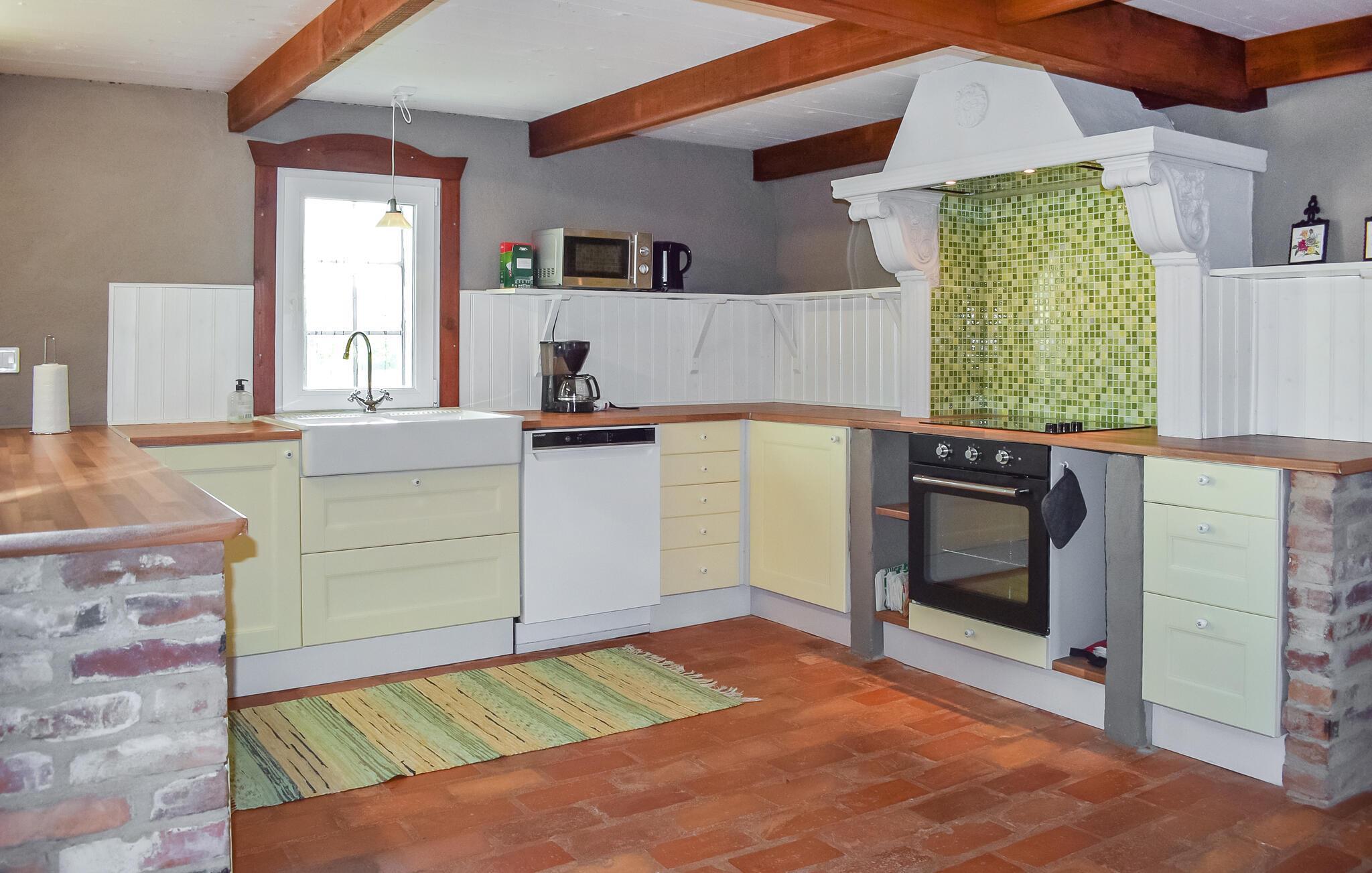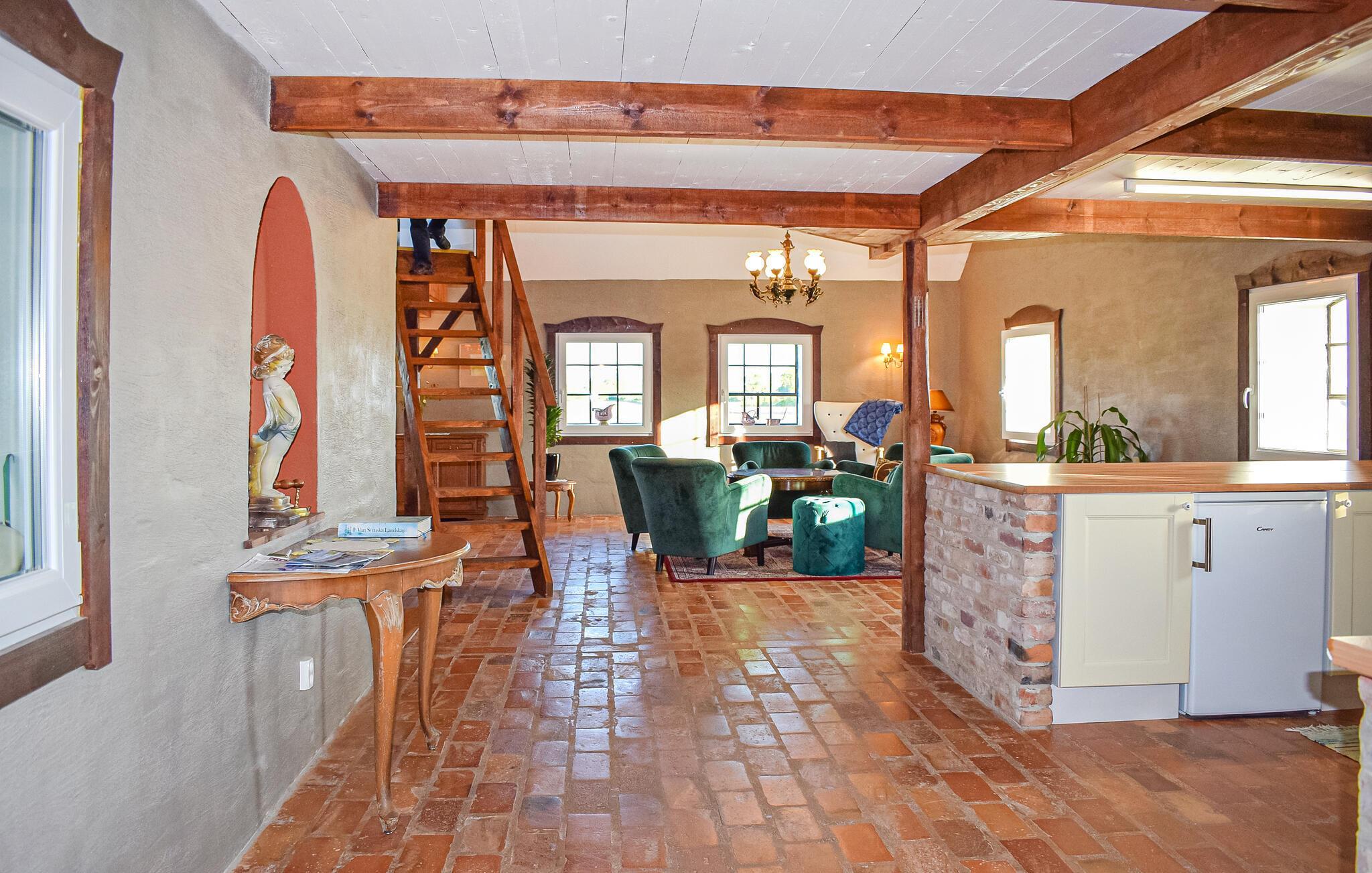 Velkommen til denne kærligt restaurerede tidligere gård. Glæd jer til hyggelig madlavning i det rummelige køkken og snak om de lækre indretningsløsninger i den åbne stue under gamle træbjælker.