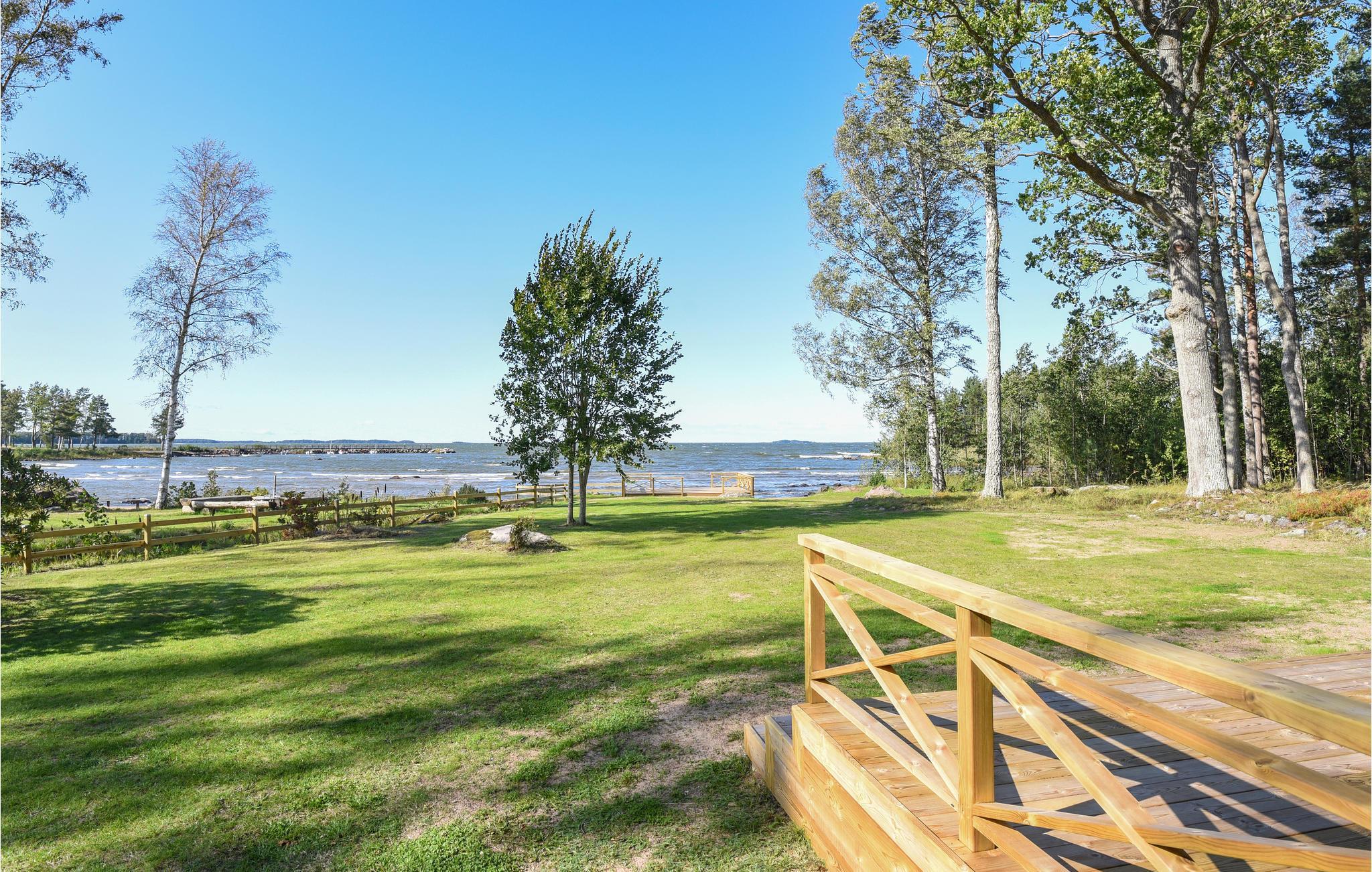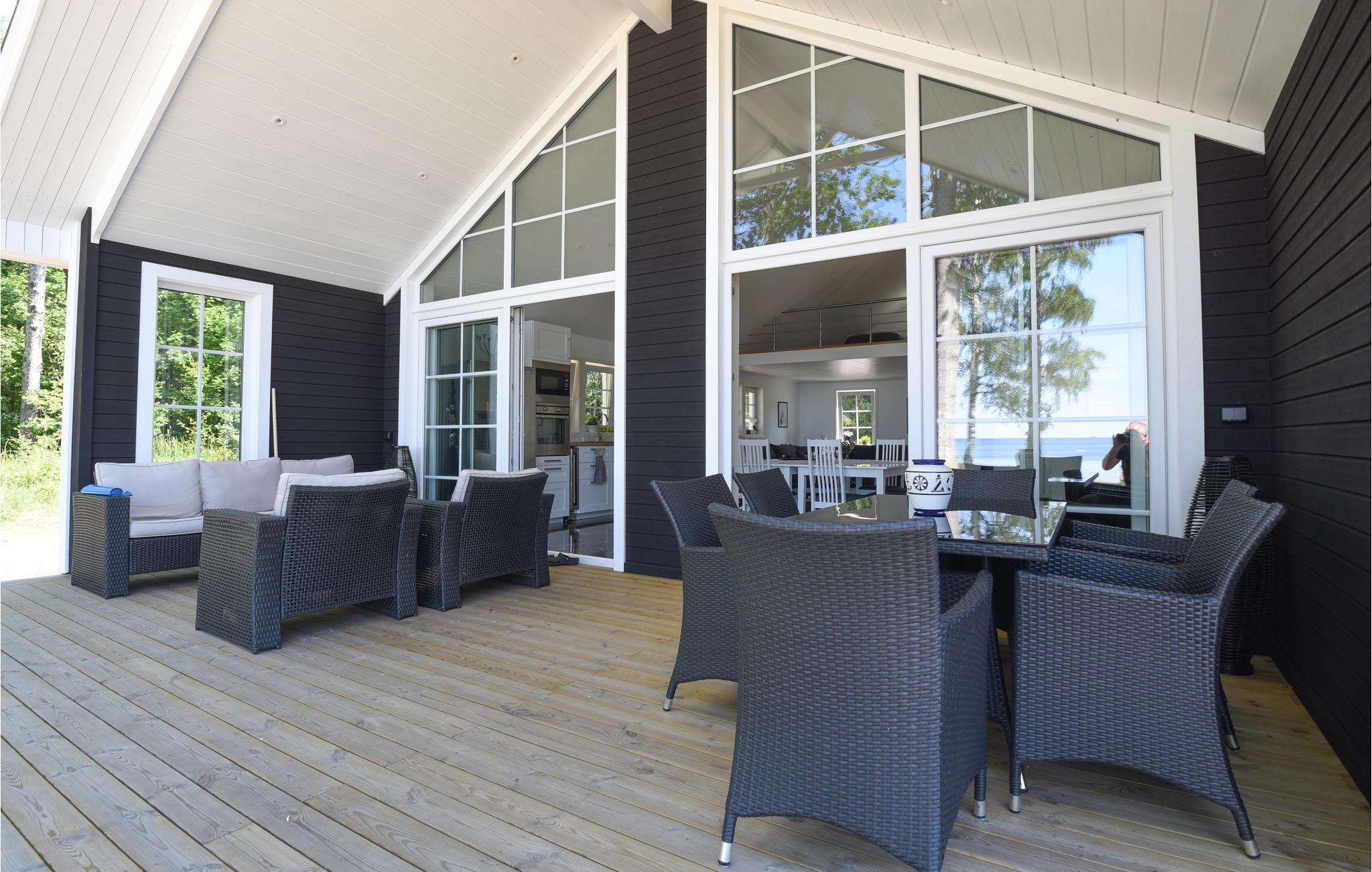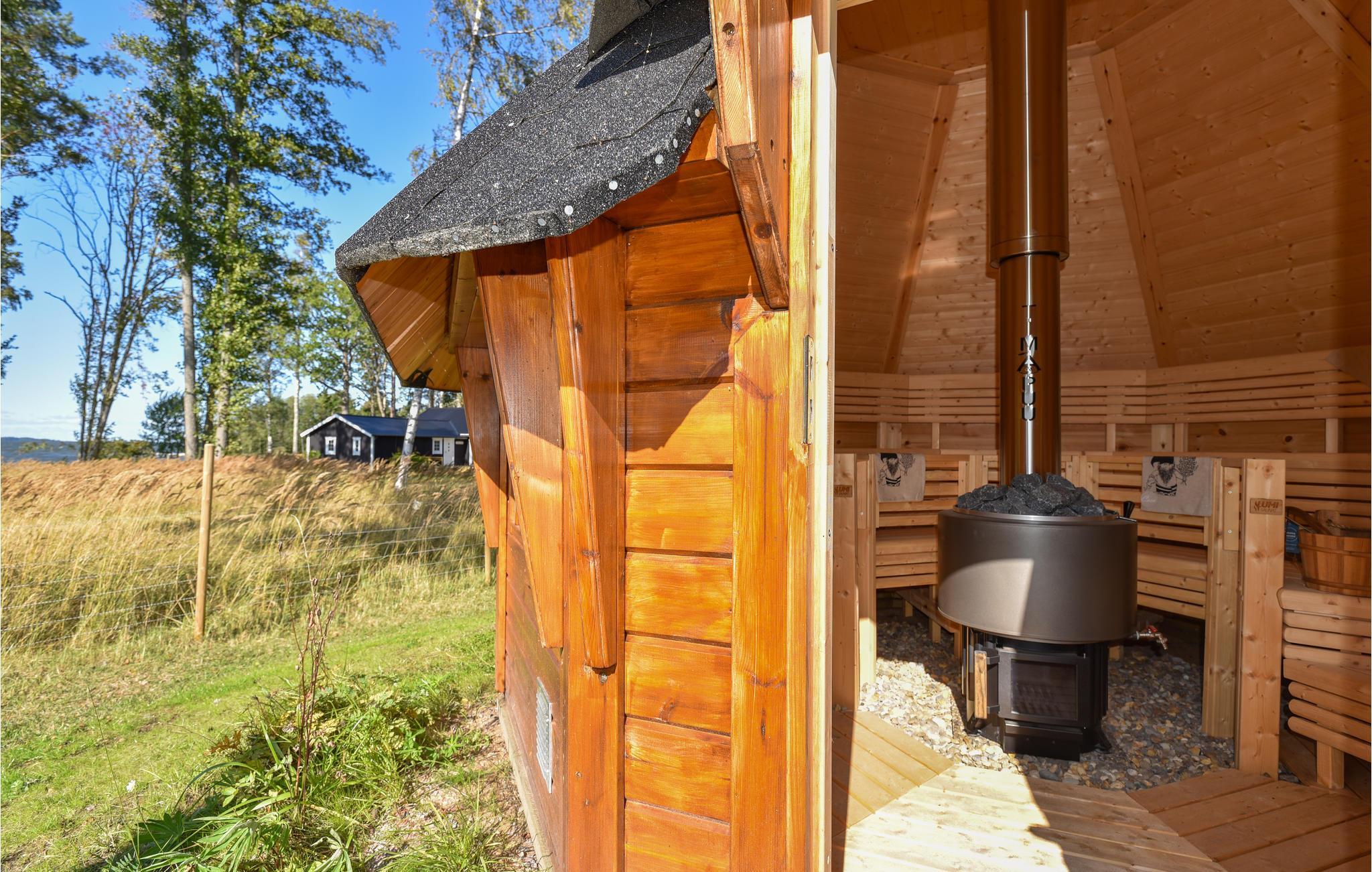 Huset har sin egen sandstrand med en dejlig terrasse til smukke aftener med panoramaudsigt over de smukke solnedgange. For at gøre oplevelsen til noget ekstra, er der to hytter til leje. Den ene er en speciel grillhytte, og i den anden er der en sauna med plads til hele familien. Prisen for leje af hytter er SEK 500 / dag. Huset har tre soveværelser og et hems. I alt er der 10 senge. Der er et stort familieværelse og et veludstyret køkken og en brændeovn. To badeværelser med bruser. Flere terrasser, hvor du kan nyde solen.