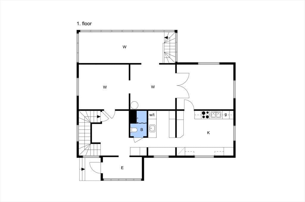 Sommerhuset, som er opført omkring 1900, har et boligareal på cirka 220 m² samt et gæstehus på 16 m². Der er 6 sovepladser til voksne og 3 sovepladser til børn. Tre værelser er udstyret med dobbeltsenge, og det fjerde soveværelse har en barneseng. Børn kan sove på to madrasser i et soveloft eller på sovesofaen i gæstehuset. I huset findes fire badeværelser med i alt fire brusere, et badekar og en sauna samt en vaskemaskine og en tørretumbler. Køkkenet er udstyret med elkomfur, ovn, opvaskemaskine, to køleskabe, fryseboks, kaffemaskine, brødrister og spisebord. Derudover er der to højstole. Opholds- og spisestuen har en sofagruppe, et stort spisebord, en åben pejs og internet. Den parkagtige have med stor lege- og liggeplæne er udstyret med havemøbler og grill. Søudsigten kan nydes næsten overalt. En badetur i søen eller en rotur i kanoen eller robåden er altid en mulighed.
