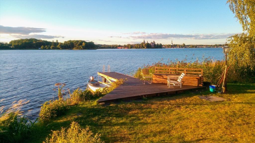Sommerhuset Lotorp, en villa i svensk stil med en vidunderlig havestue, ligger på en cirka 2.400 m² stor søgrund direkte ved søen Mälaren med udsigt til Gripsholms Slot. Naboens hus ligger omkring 50 m væk. Fra den private badebro kan du springe direkte i Mälaren eller tage på tur i den tilhørende robåd eller kano. Den charmerende by Mariefred ligger cirka 8 km væk. En båd sejler regelmæssigt gennem den smukke skærgård mellem Mariefred og Stockholm, og i bil er der cirka 70 km til Stockholm.