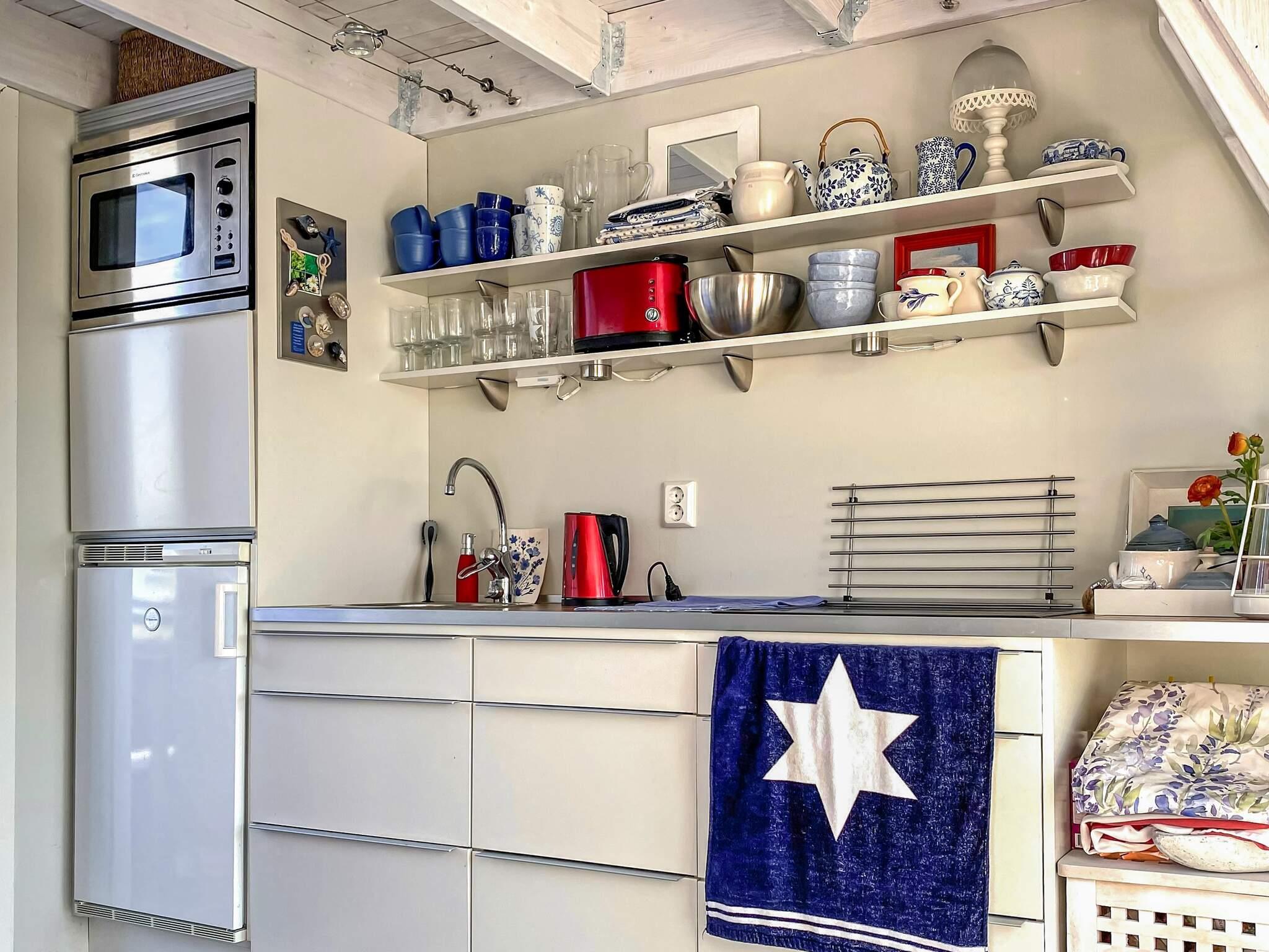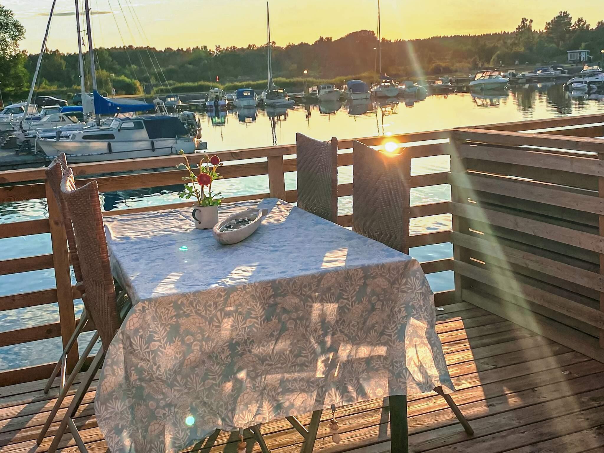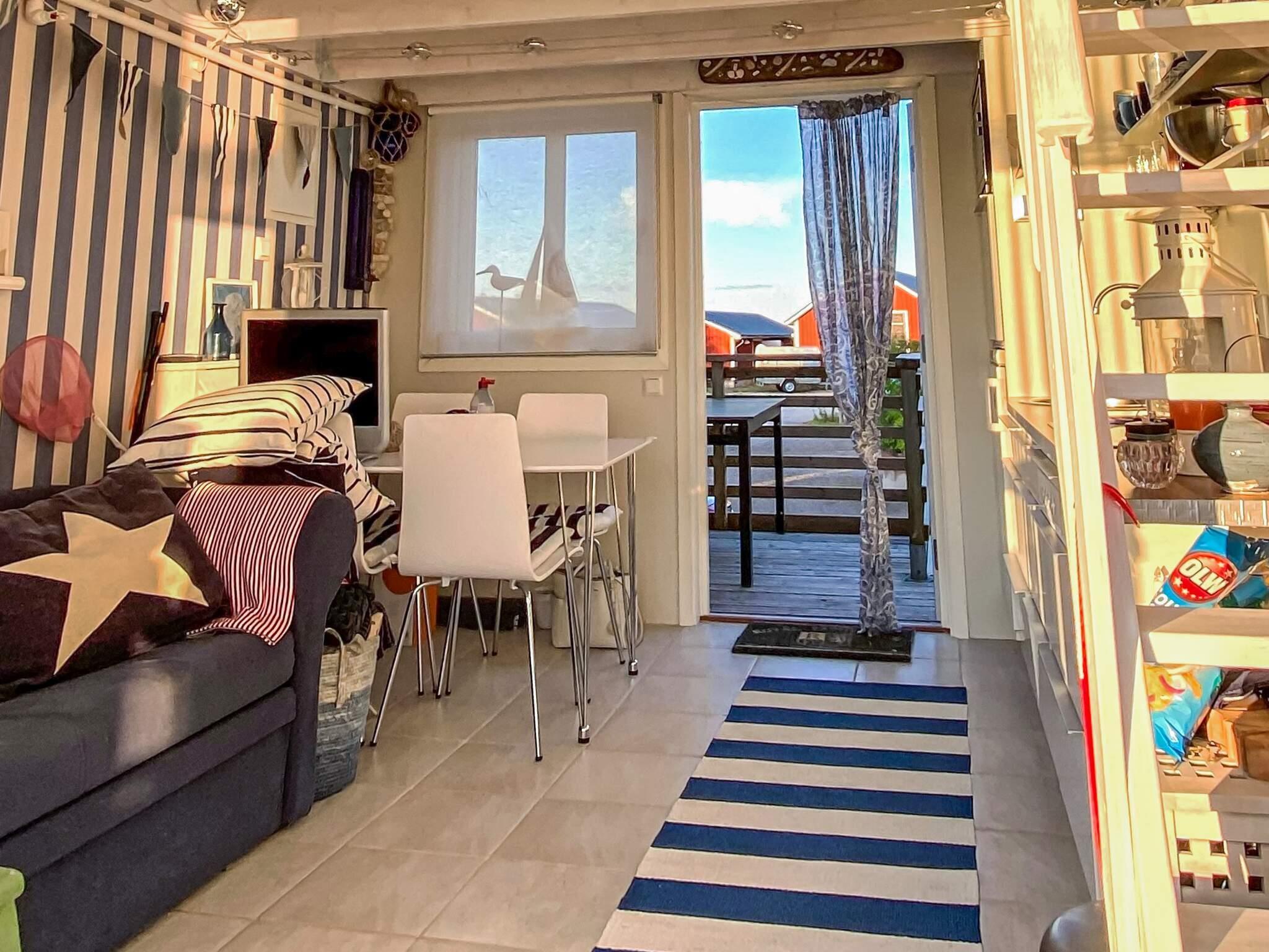 Sjöboden är i två plan och smakfullt inredd. På nedervåningen finns ett fullt utrustat kök med kaffebryggare, spis, mikrovågsugn, kyl med frysfack och en matplats för fyra, perfekt för långa, mysiga middagar. Här finns även en bekväm soffa som enkelt kan omvandlas till en rymlig bäddsoffa på 140 cm. Från vardagsrummet når du en större terras med utemöbler, där du kan njuta av magiska solnedgångar över hamnen. På framsidan finns en mindre veranda med cafébord och två stolar – den perfekta platsen för morgonkaffet. På övervåningen finns det två bekväma sängar båda är 120 cm breda. Observera att trappan upp till övervåningen är brant.