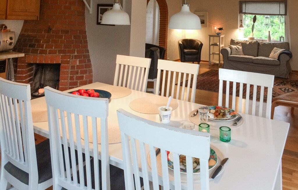 Dette hus er perfekt til at undslippe hverdagens travlhed. En hyggelig stue med komfortable sofaer inviterer jer til at sidde sammen med en duftende kop kaffe og nyde en afslappet snak. I det moderne, fuldt udstyrede køkken kan I tilberede lækre retter sammen og servere dem med et glas vin.