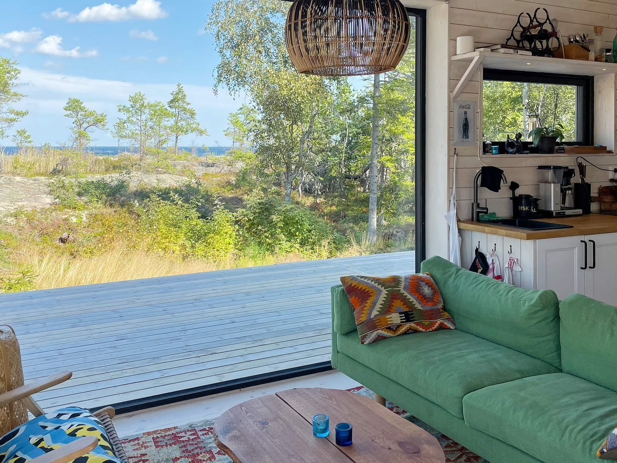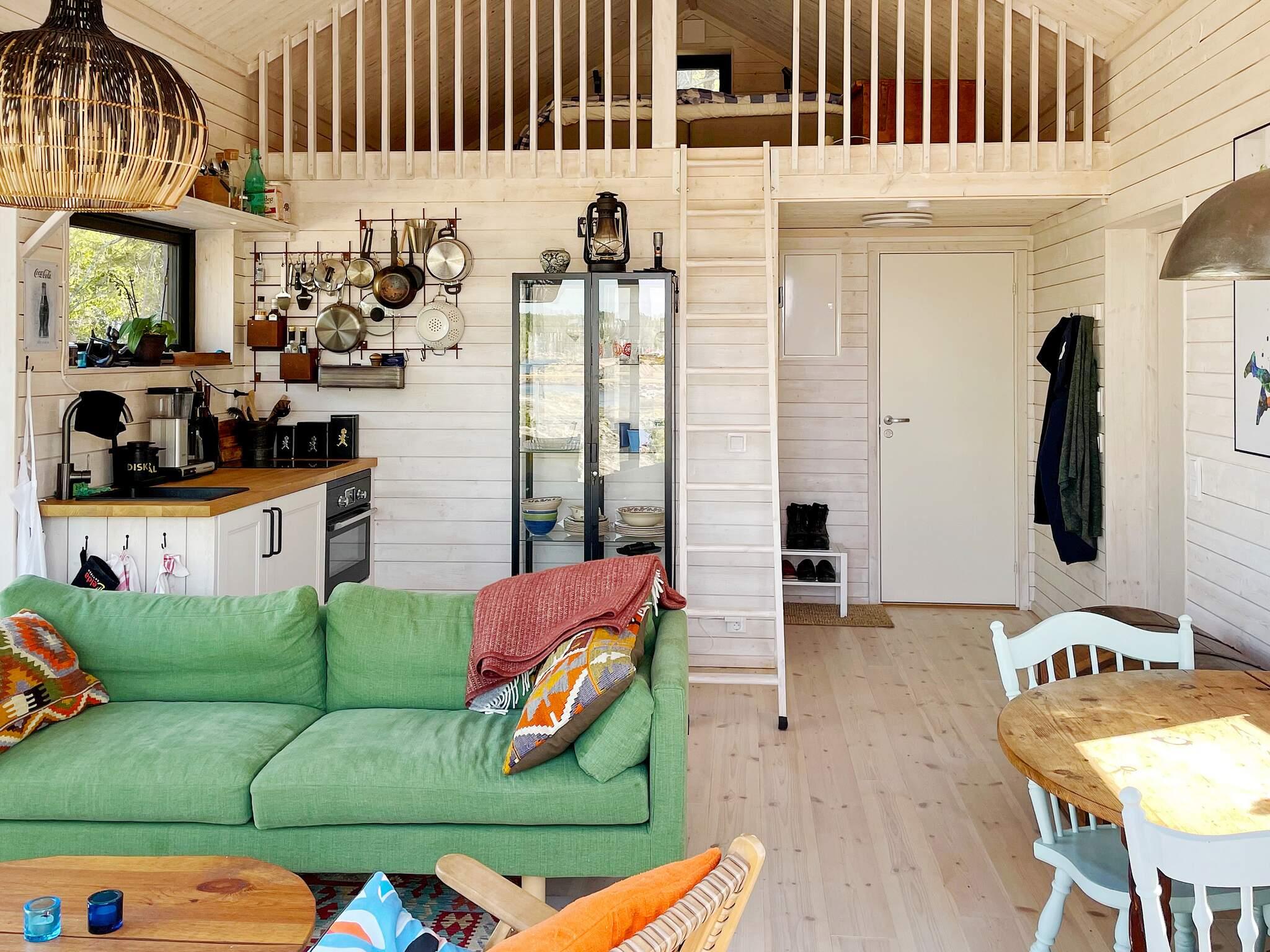 Ni välkomnas av en vacker stuga på höjden med ett generöst trädäck med olika “rum” och hänförande vyer över skärgårdsmiljö. I stugan förenas kök, matplats och soffgrupp i ett med vackra vyer över hav och orörd natur. Litet kök där ni kan laga mat blickandes ut över havet. Utrustat med två induktionsplattor, kombinerad ugn/micro, kaffebryggare och annat ni kan tänkas behöva. Öppet mot soffgrupp och matboard. Här kan ni lyssna på musik via Sonos AirPlay. Längre in finner ni ett behagligt sovrum med en dubbelsäng för två, 140 cm bred, och smart-tv. Egen altandörr med direkt anslutning till den vedeldade badtunnan som även har en bubbelfunktion. På nedervåning finns ett stilfullt badrum med dusch, wc och handfat. Ytterligare två sängplatser finns på mysigt sovloft som ni når via en stege. Något brant stege utan räcke så var varsam. På sovloftet är det ej ståhöjd men väldigt skönt att sova.