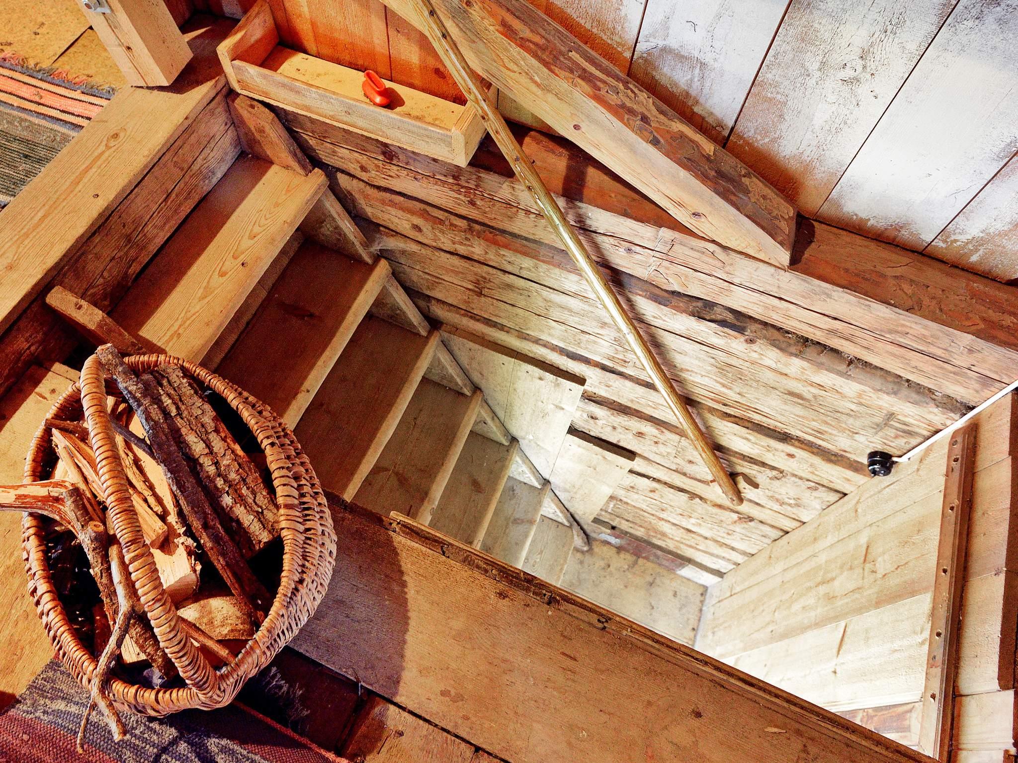 Via entrén kommer du direkt in i det ljusa och luftiga köket i gammaldags stil. Där erbjuds modern köksutrustning samt vedspis. På nedre plan finns ett sovrum med dubbelsäng. Det finns även en enkelsäng i vardagsrummet. Där finns också soffa, fåtöljer och braskamin för ruggiga kvällar. En brant trappa leder upp till loftet där det andra sovrummet med dubbelsäng finns.
