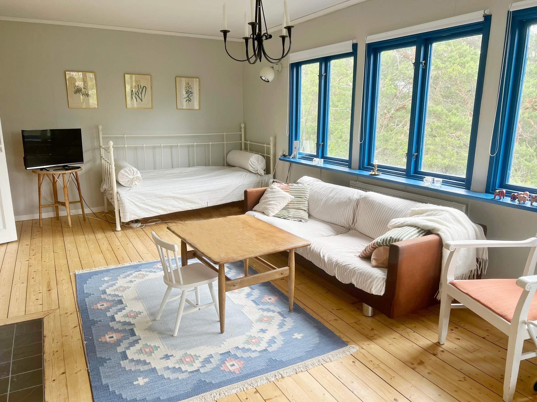 På Saltarö är det aldrig långt till havet, ca en km från huset finns en trevlig badstrand med brygga, sandstrand och långgrunt. Det krävs ett parkeringstillstånd för att ställa bilen där, det ligger i hallen för er att låna, glöm inte att lägga tillbaka det då ni åker hem, så nästa gäst får samma förmån. Det går buss in till Stockholm bara 400m från huset. I området runt stugan finns trevliga promenadvägar och mycket natur. Ibland kommer älgarna upp på tomten och smaskar på äppelträdet som står i trädgården. Här är tyst och vilsamt, då huset ligger vid en vändplan, här får ni en skön semester!