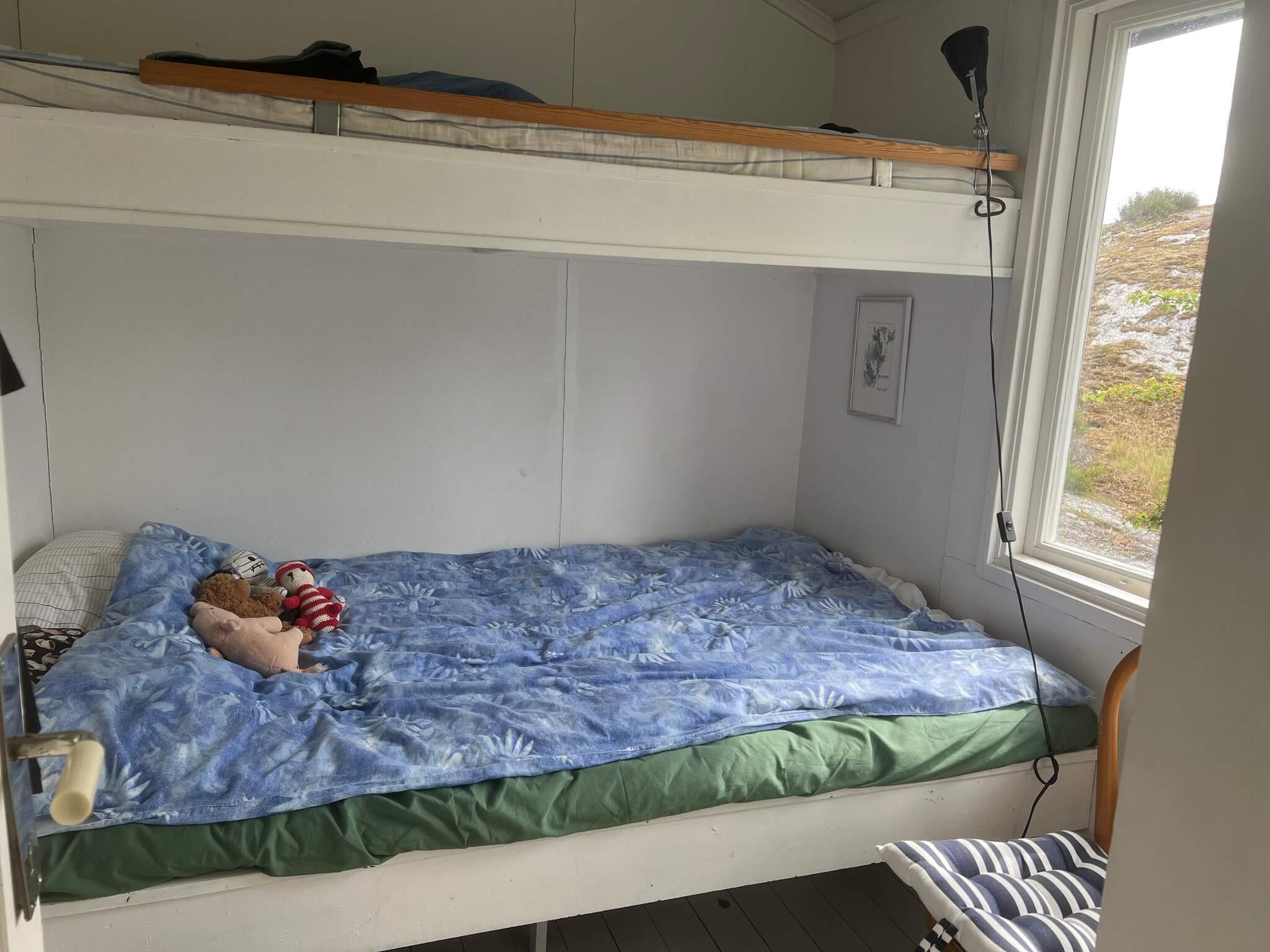Huset har en trevlig uteplats med tak med plats för 6 personer. Det finns två sovrum, ett med en dubbelsäng och ett med en platsbyggd familjevåningssäng. Det finns också en dagbädd i det rymliga vardagsrummet. Köket har mycket karaktär, här finns ett matbord för 4 om man föredrar att sitta inne och äta.
