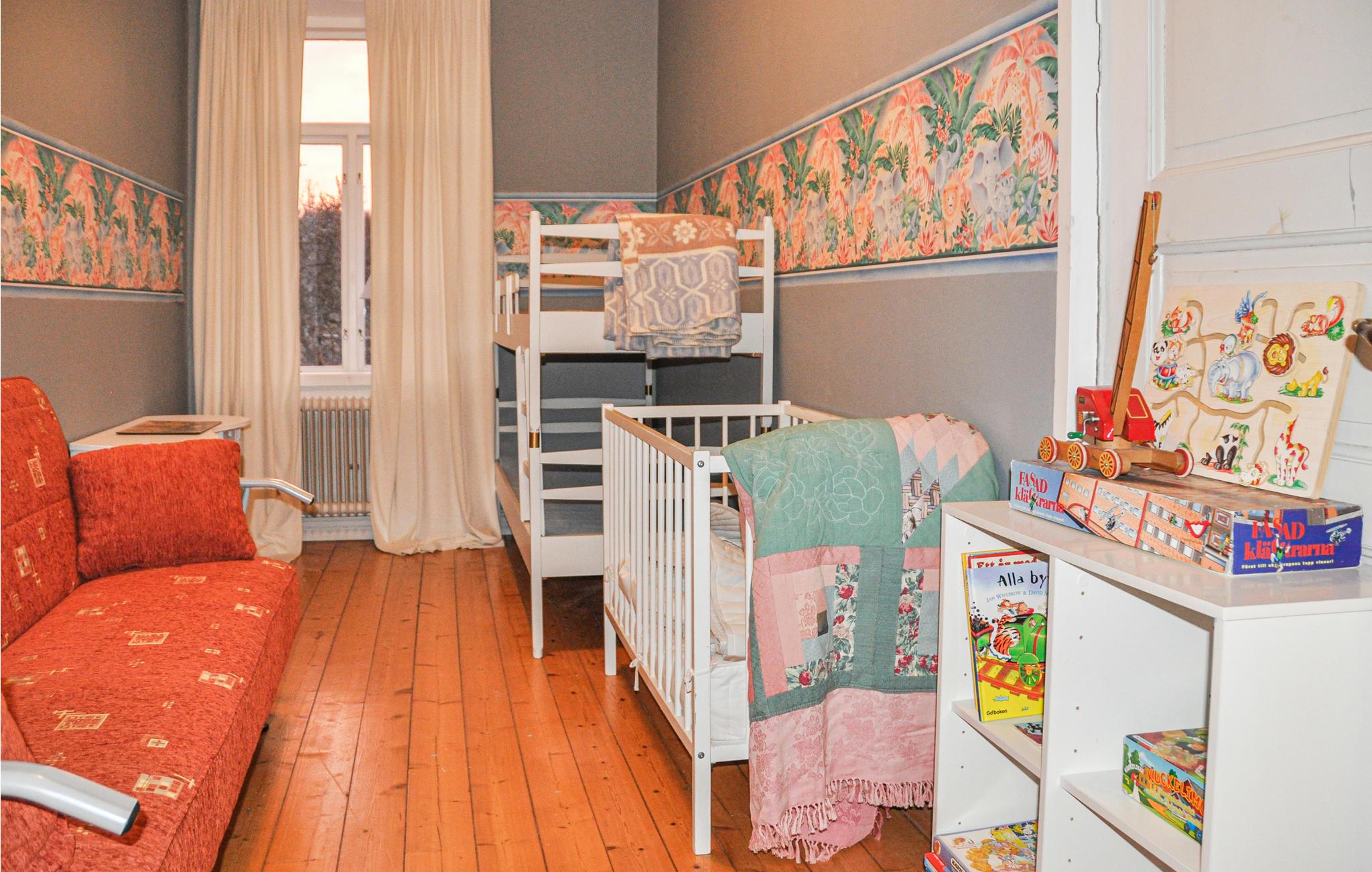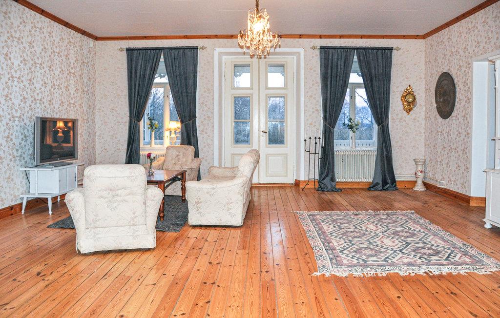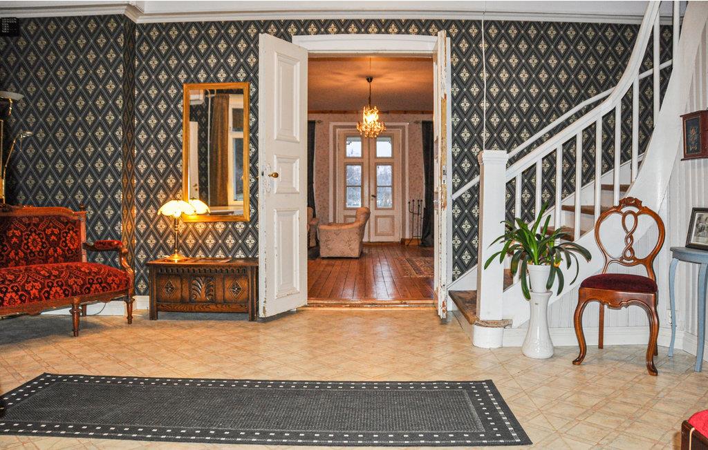Velkommen til Marielund i Nysäter. Her bor du på en pæn herregår omgiver af store områder. Det er en perfekt indkvartering for to familier, der ønsker god plads. Her er der i alt 5 soveværelser. 3 soveværelser har dobbeltsenge, et soveværelse har en sovesofa til 2 personer og en køjeseng til børn op til 12 år og et soveværelse har en sovesofa til to personer. To store stuer med sofagruppe og tv i hver. Badeværelse med toilet, bruser, badekar og sauna og et mindre toilet med toilet.