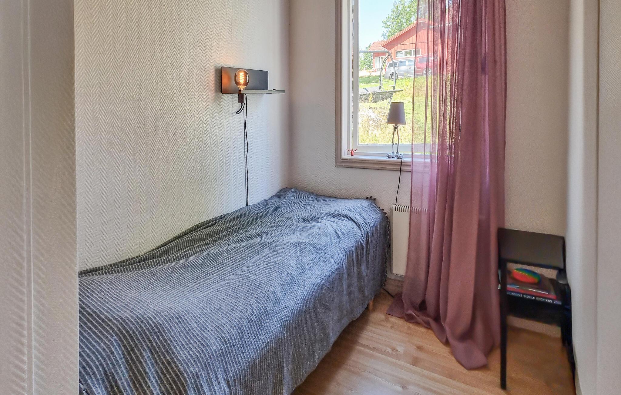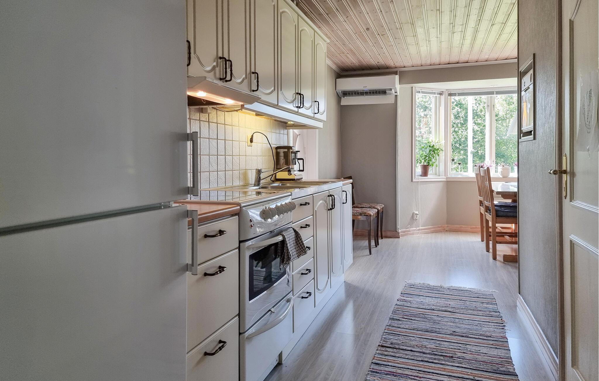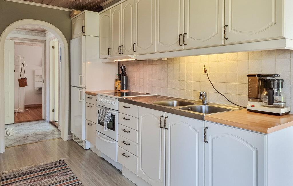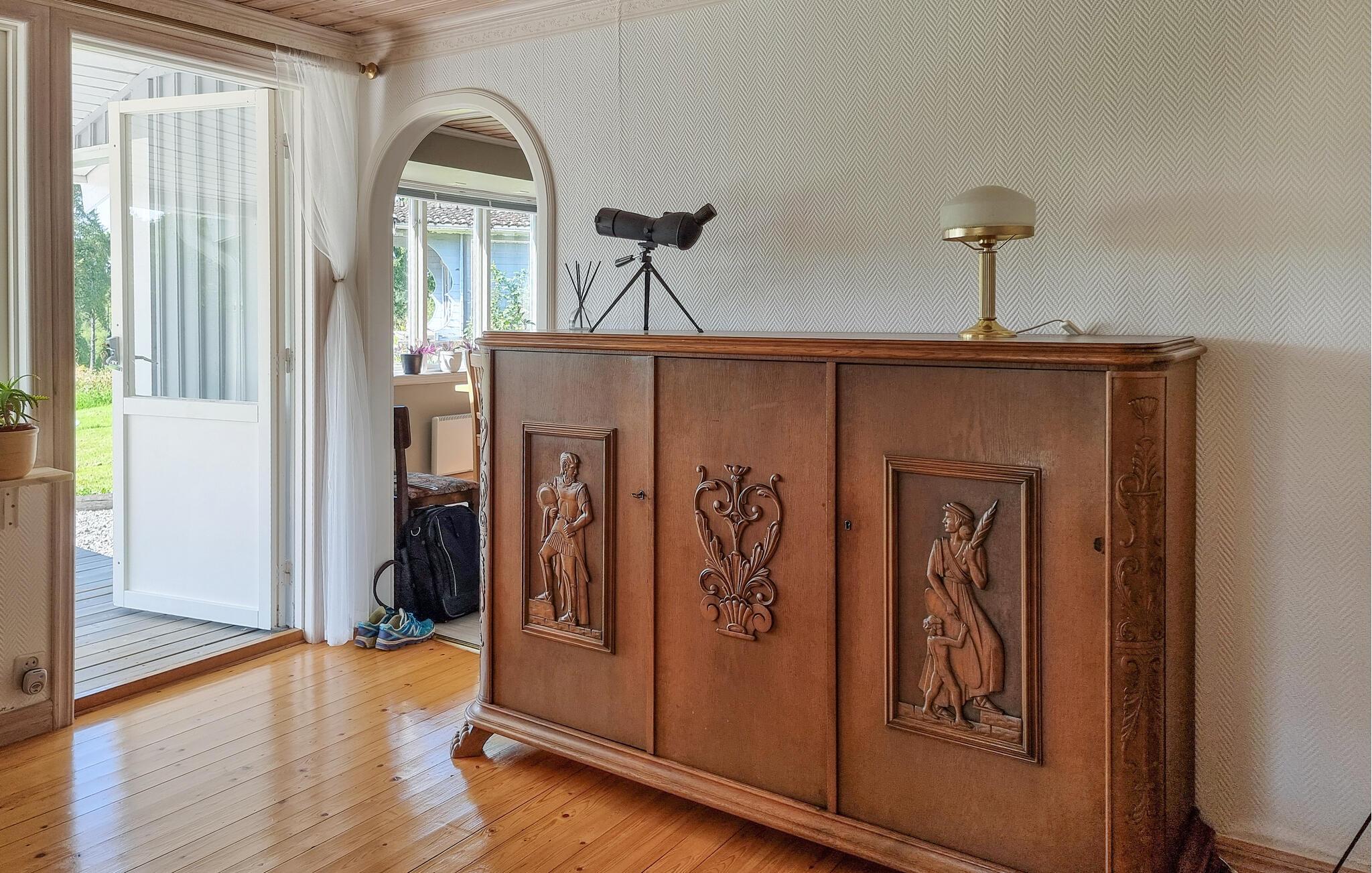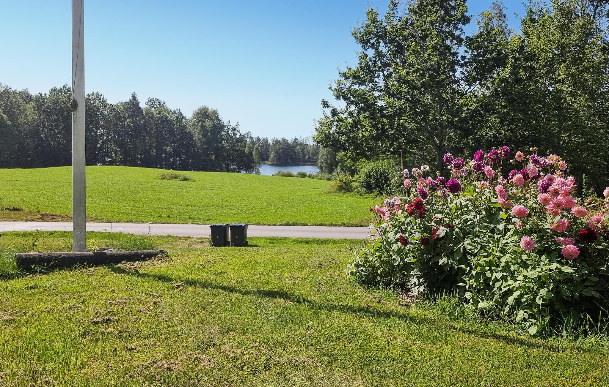 Nyd en afslappende ferie i dette hyggelige feriehus med idylliske omgivelser. Pak jeres tasker, og glæd jer til at finde jer til rette i dette lyse og indbydende feriehus nær en rolig sø. I det smukke landkøkken kan I trylle jeres yndlingsretter frem, og ved det indbydende spisebord kan I nyde harmoniske måltider med en charmerende udsigt over søen. Efter en lang dag udenfor inviterer den komfortable sofa jer til at slappe af og læse – eller til at holde en sjov spilleaften med familien. Jeres veranda giver en dejlig mulighed for at nyde morgenmaden udenfor i solskinnet. Bagefter kan I slentre ned til søen for en forfriskende dukkert og derefter tænde op i grillen. Gå en tur langs træbrogader gennem hedelandskabet i Store Mosse Nationalpark, bliv inspireret af moderne kunst på Vandalorum Museum i Värnamo, eller besøg historiske bondegårde i Apladalen. Overrask jeres børn med en tur til High Chaparral Western Park, oplev kunsten at puste glas i Smålands glasværker, og prøv regionale specialiteter på hyggelige gårdcaféer.