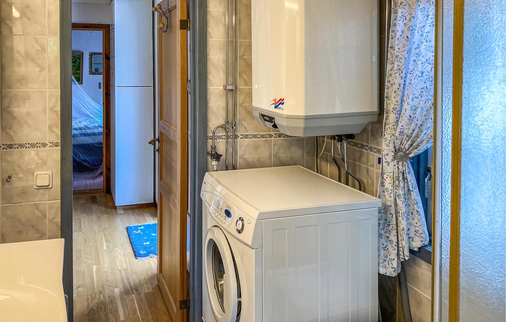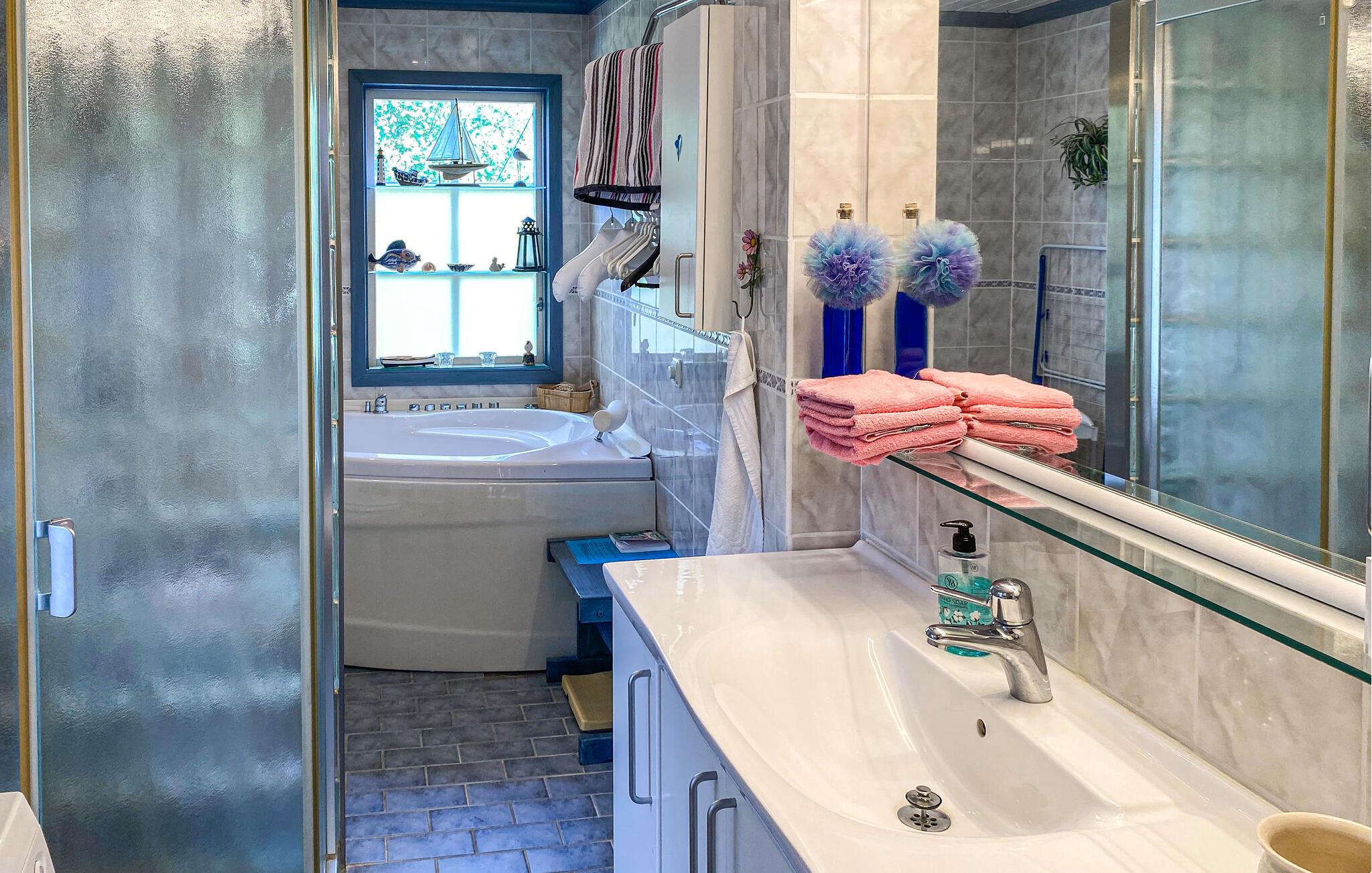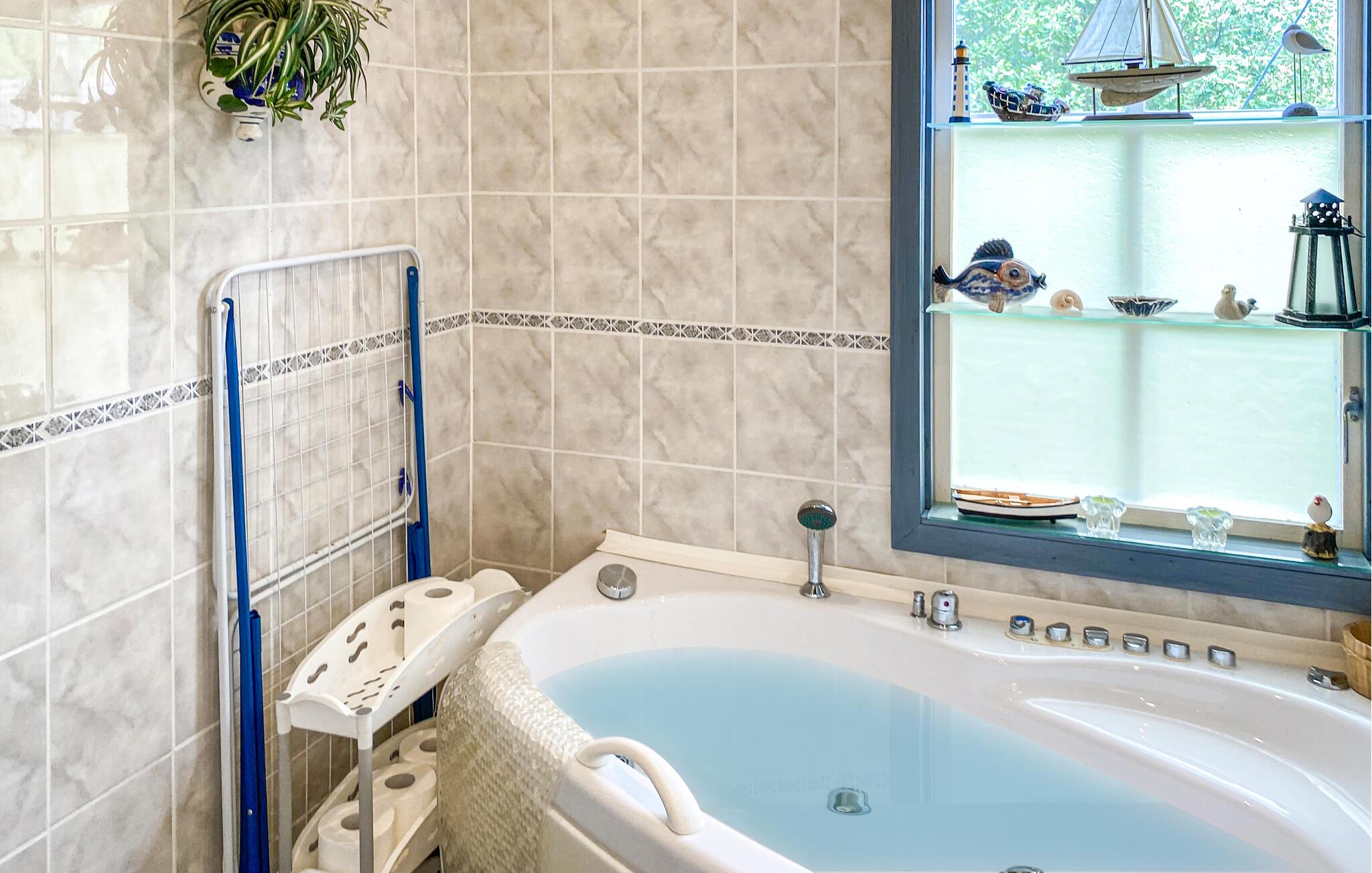 Dette indbydende feriehus imponerer med sin rummelige og charmerende atmosfære. Den klassiske indretning og pejsen sørger for hyggelige timer, mens boblebadet byder på ren afslapning efter en aktiv dag. På den rummelige terrasse kan I nyde solen, lege med familien eller tilbringe grillaftener sammen. Udendørs spil og en nærliggende fodboldbane byder på variation for unge og gamle. For gæster med egen båd er en fortøjning tilgængelig mod betaling, og SUP boards eller cykler kan også lejes.