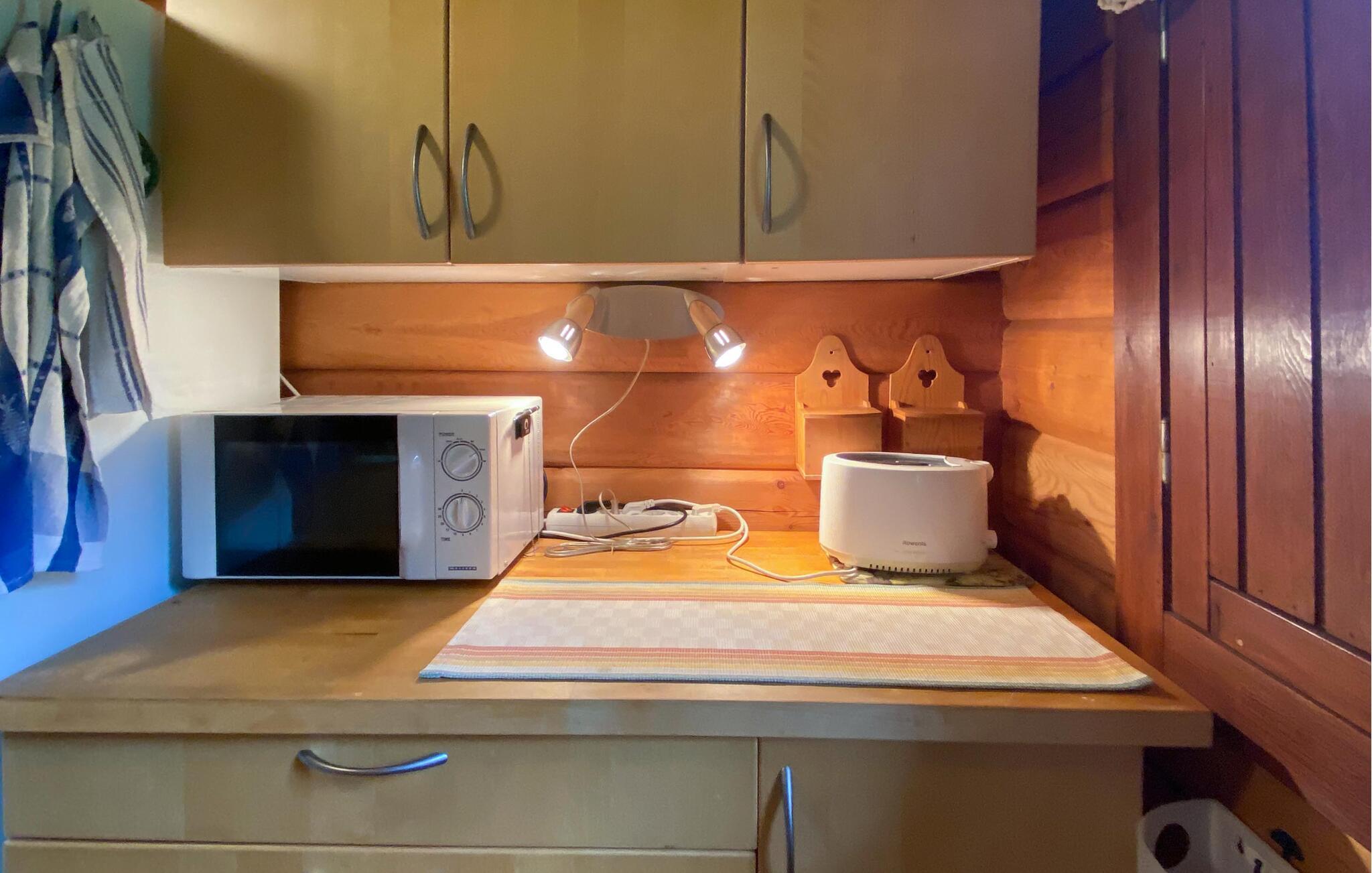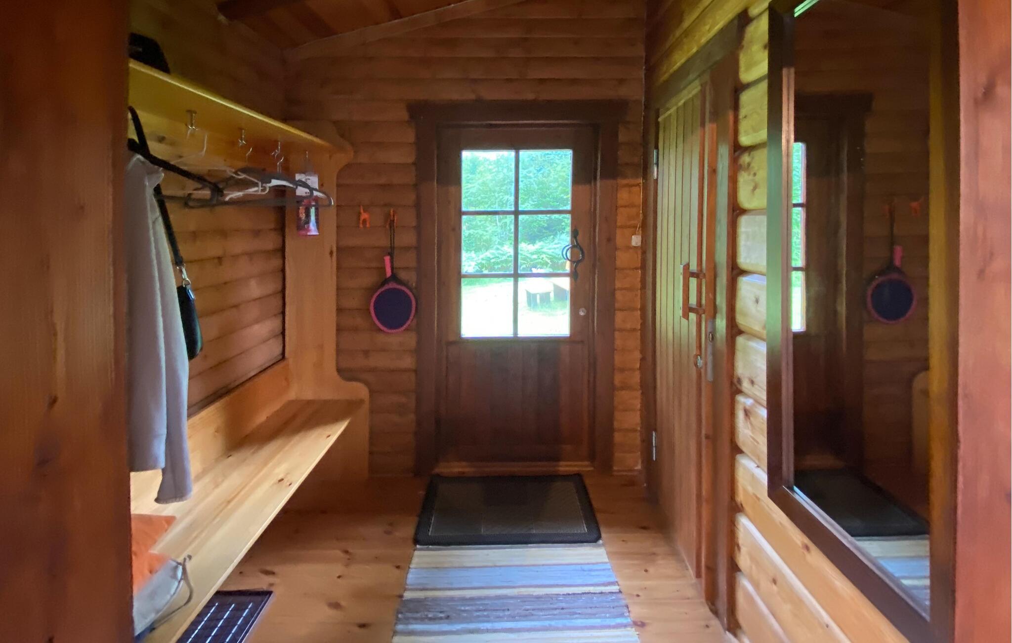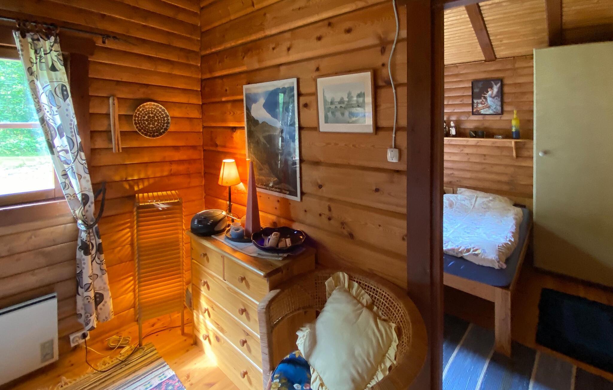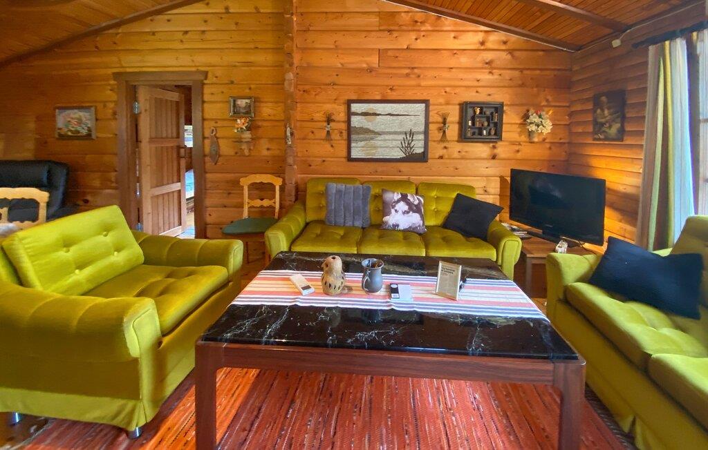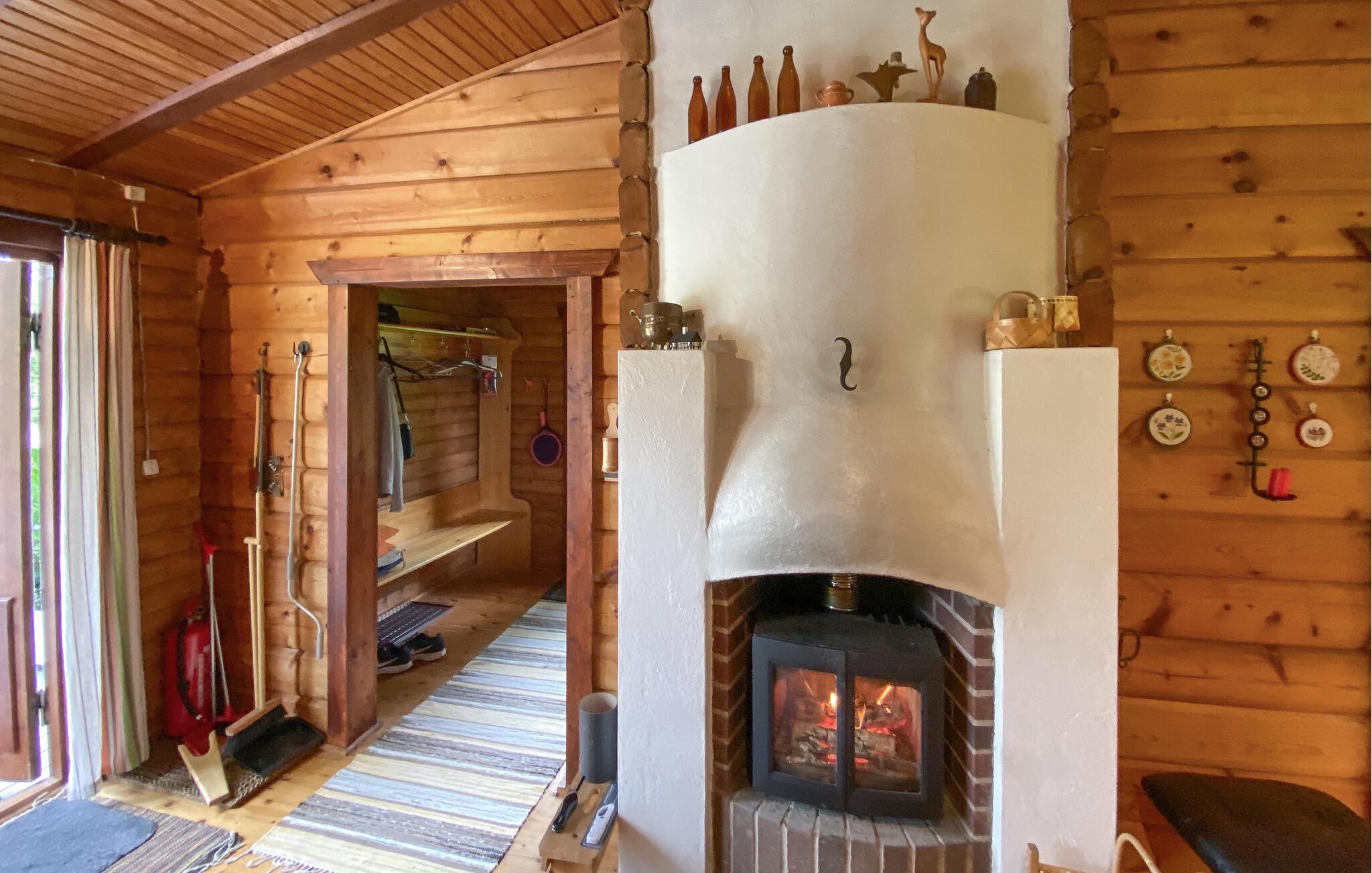 Tilbring jeres næste ferie i dette feriehus, hvis idylliske beliggenhed lover fred og afslapning. Lad jer byde velkommen af ??den varme atmosfære i træinteriøret. Gør det behageligt i de komfortable sofaer i stuen, slap af ved pejsen eller brug tid sammen ved det store spisebord. Brug det hyggelige køkken til at tilberede lækre retter og nyd den hyggelige atmosfære, som bjælkehytten udstråler med sine trævægge.