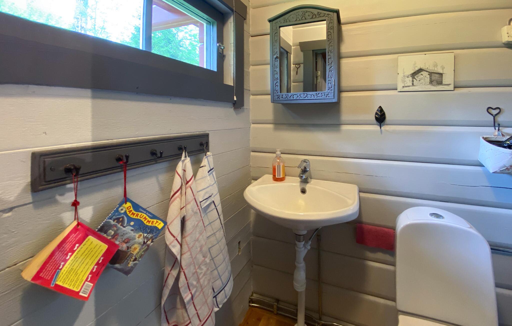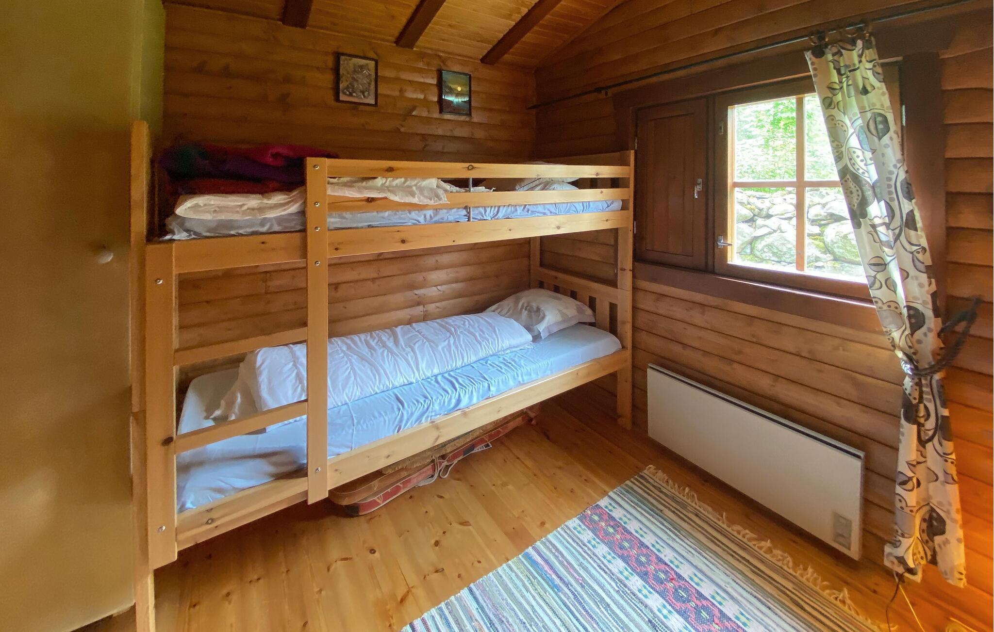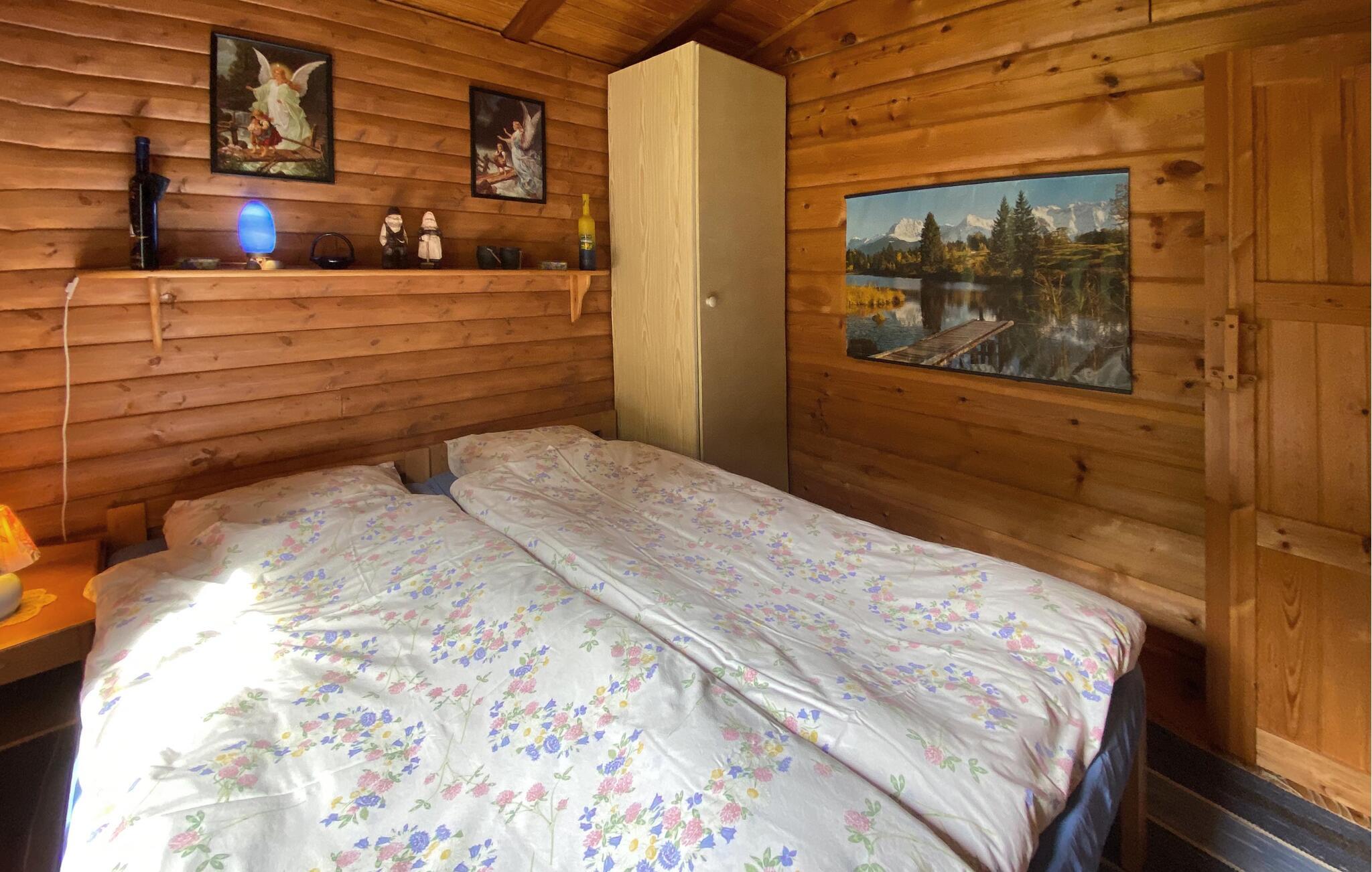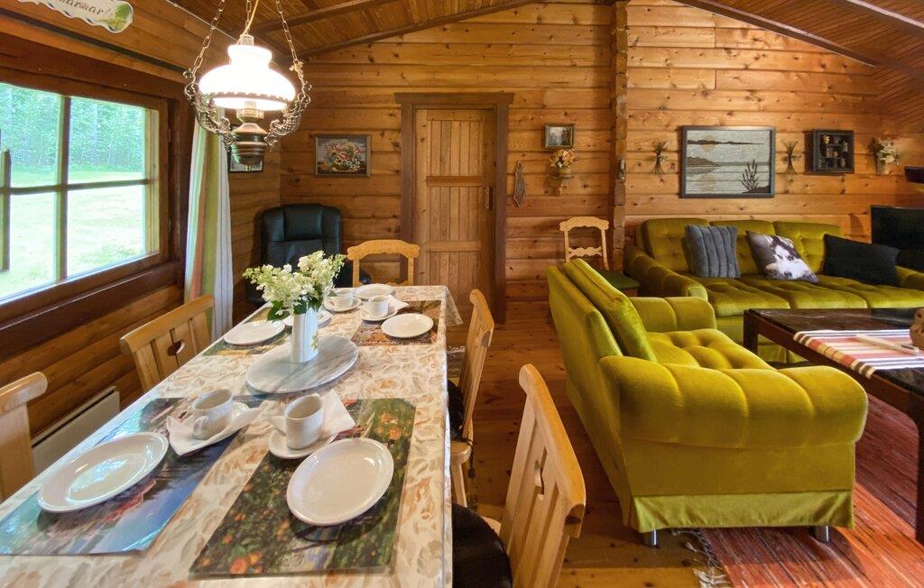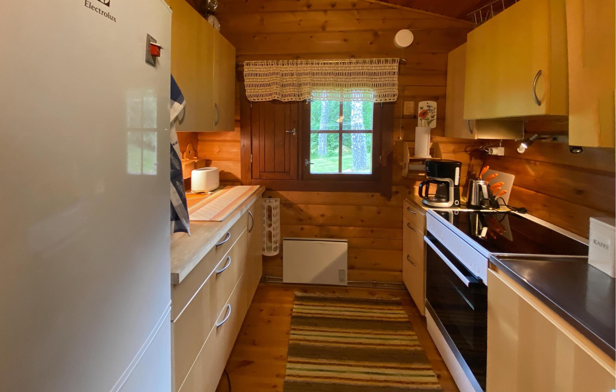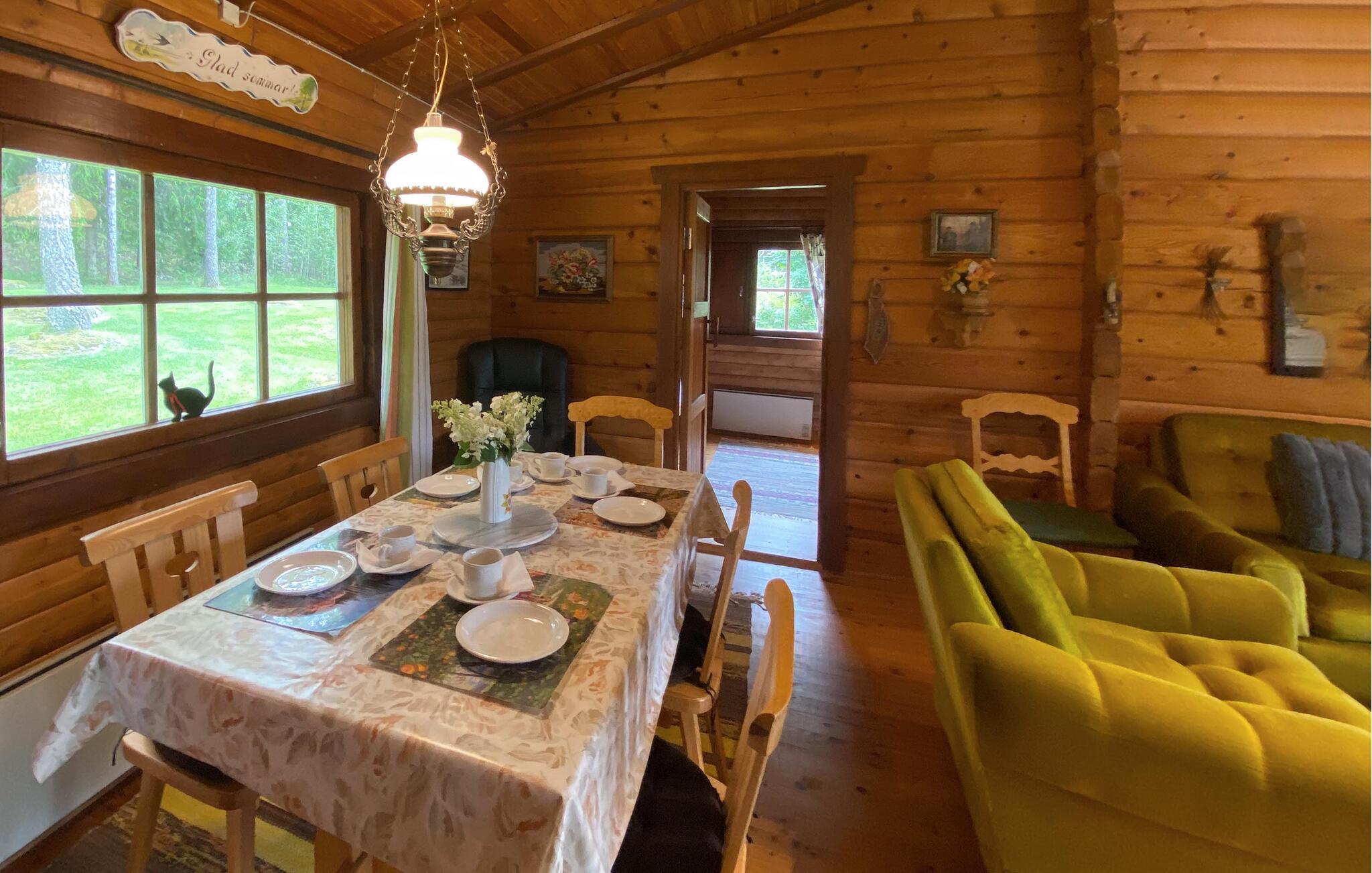 Tilbring jeres næste ferie i dette feriehus, hvis idylliske beliggenhed lover fred og afslapning. Lad jer byde velkommen af ??den varme atmosfære i træinteriøret. Gør det behageligt i de komfortable sofaer i stuen, slap af ved pejsen eller brug tid sammen ved det store spisebord. Brug det hyggelige køkken til at tilberede lækre retter og nyd den hyggelige atmosfære, som bjælkehytten udstråler med sine trævægge.