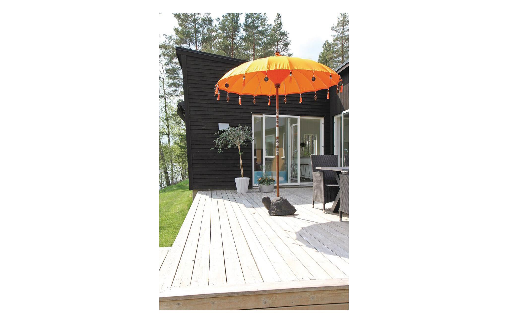 I godt vejr lokker den idylliske terrasse til hyggelige timer i det fri. Sæt jer til rette i havemøblerne under parasollen. Kun få skridt adskiller jer fra søen, hvor jeres egen badebro inviterer til at tage en forfriskende dukkert i vandet. Hvis I medbringer jeres fiskestang, kan I også prøve at fange dagens aftensmad.