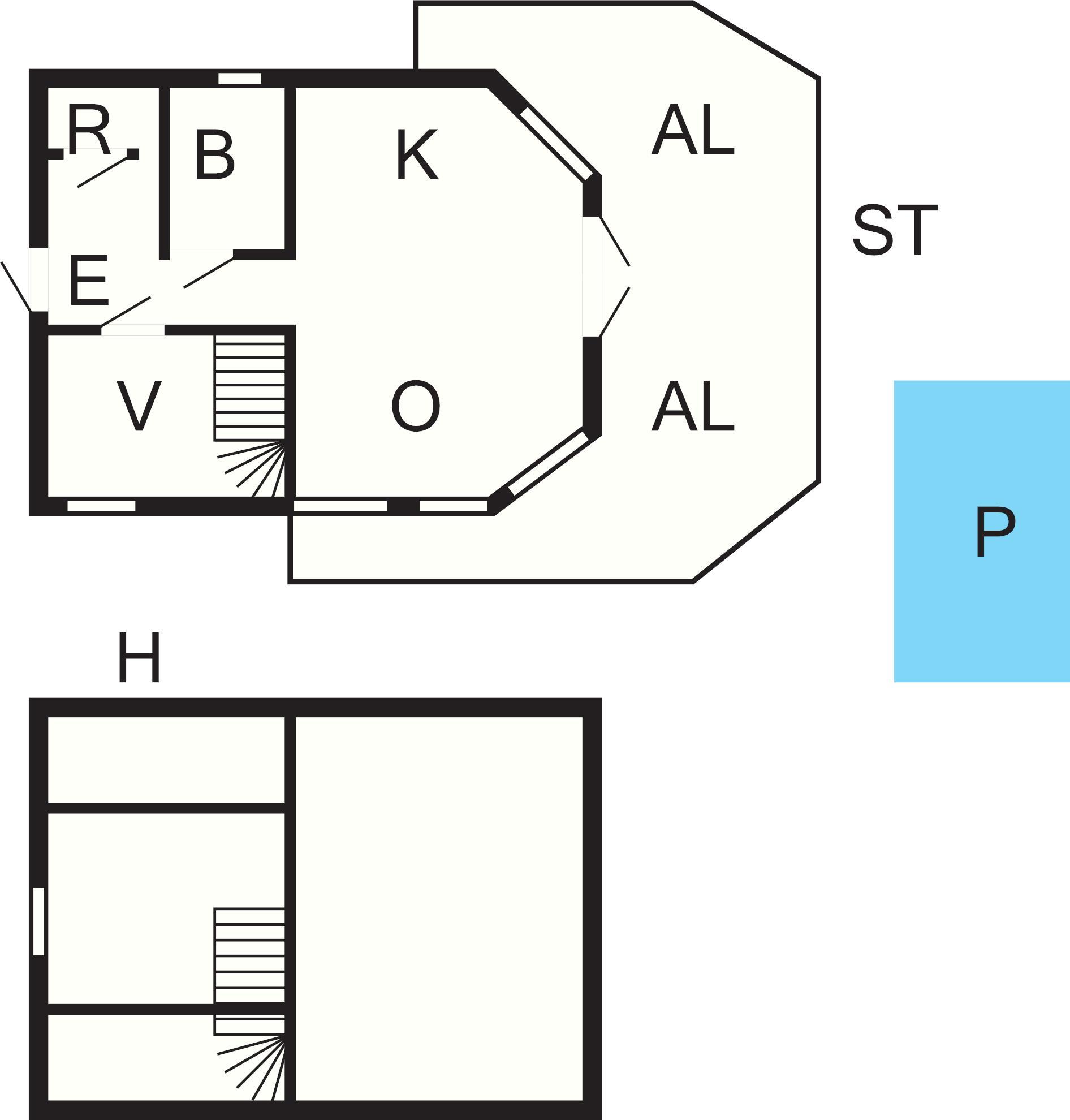 Välkomnande farstukvist under tak. Huset är i ett plan med ett loft inrett till sovrum med två enkelsängar. Nedervåningen har ytterligare ett charmigt sovrum med två enkelsängar. Stort allrum i öppen planlösning med köket. Köksdelen har alla bekvämligheter inklusive diskmaskin. Allrumsdelen har kombinerad hörnsoffa och matbord i rustikt trä. Här finns även en fin braskamin om någon dag skulle kännas lite kylig. Stor platt-TV med tyska kanaler. Helkaklat fräscht badrum med dusch och tvättmaskin.