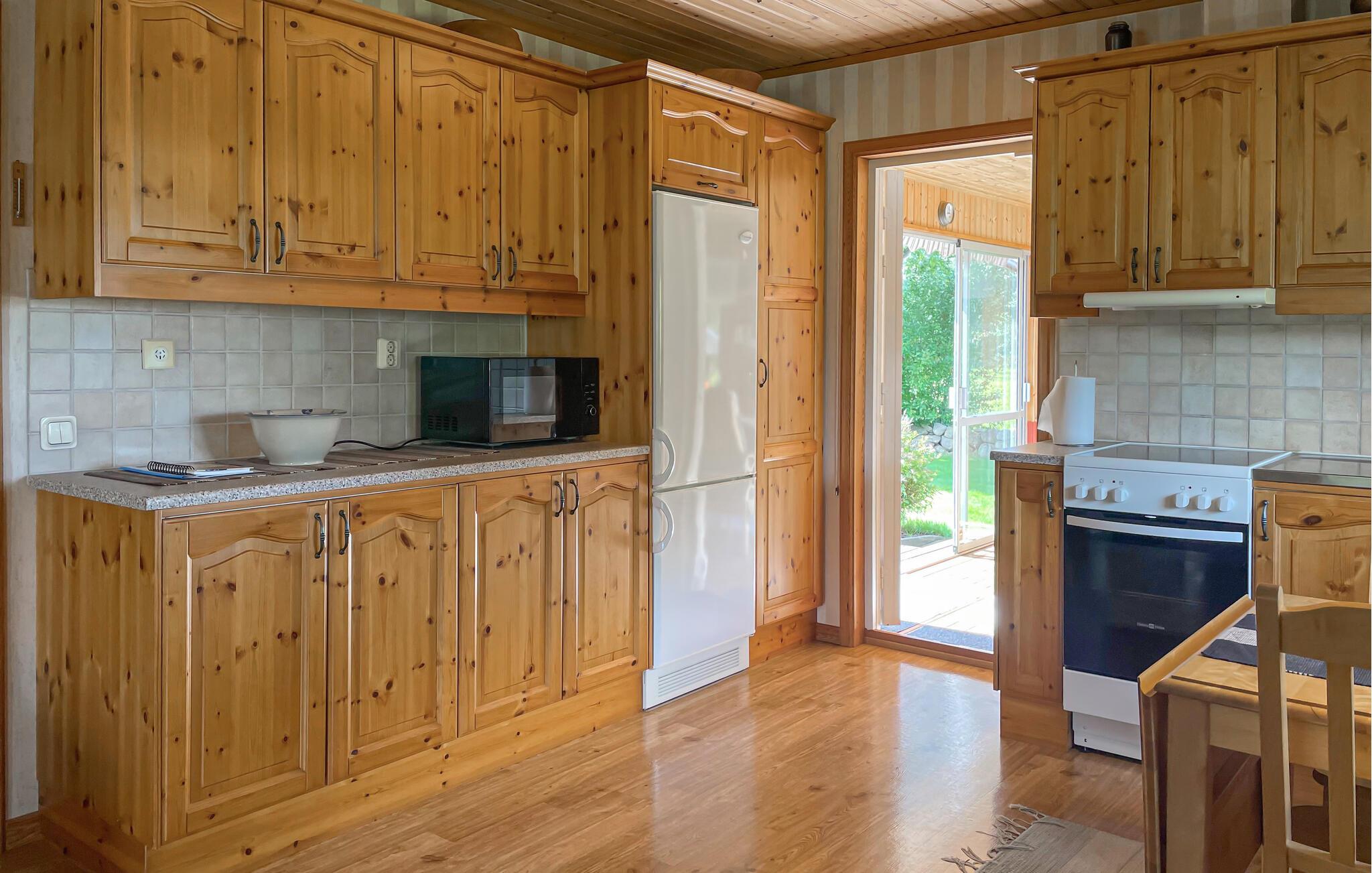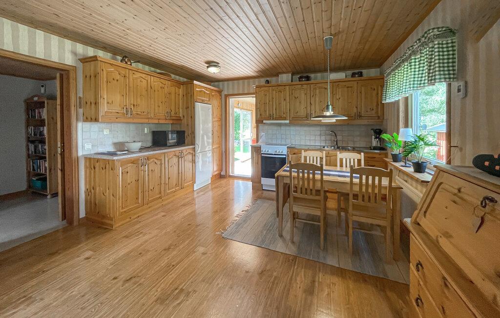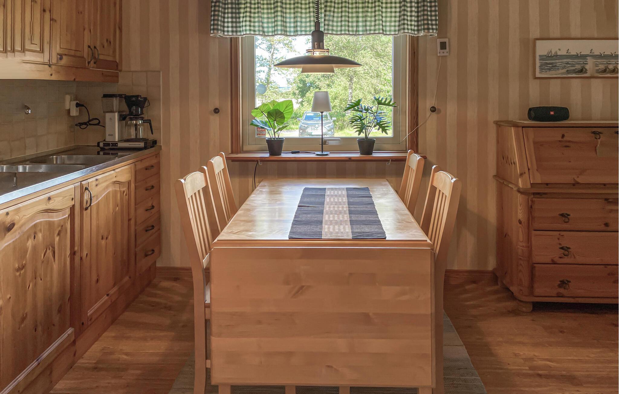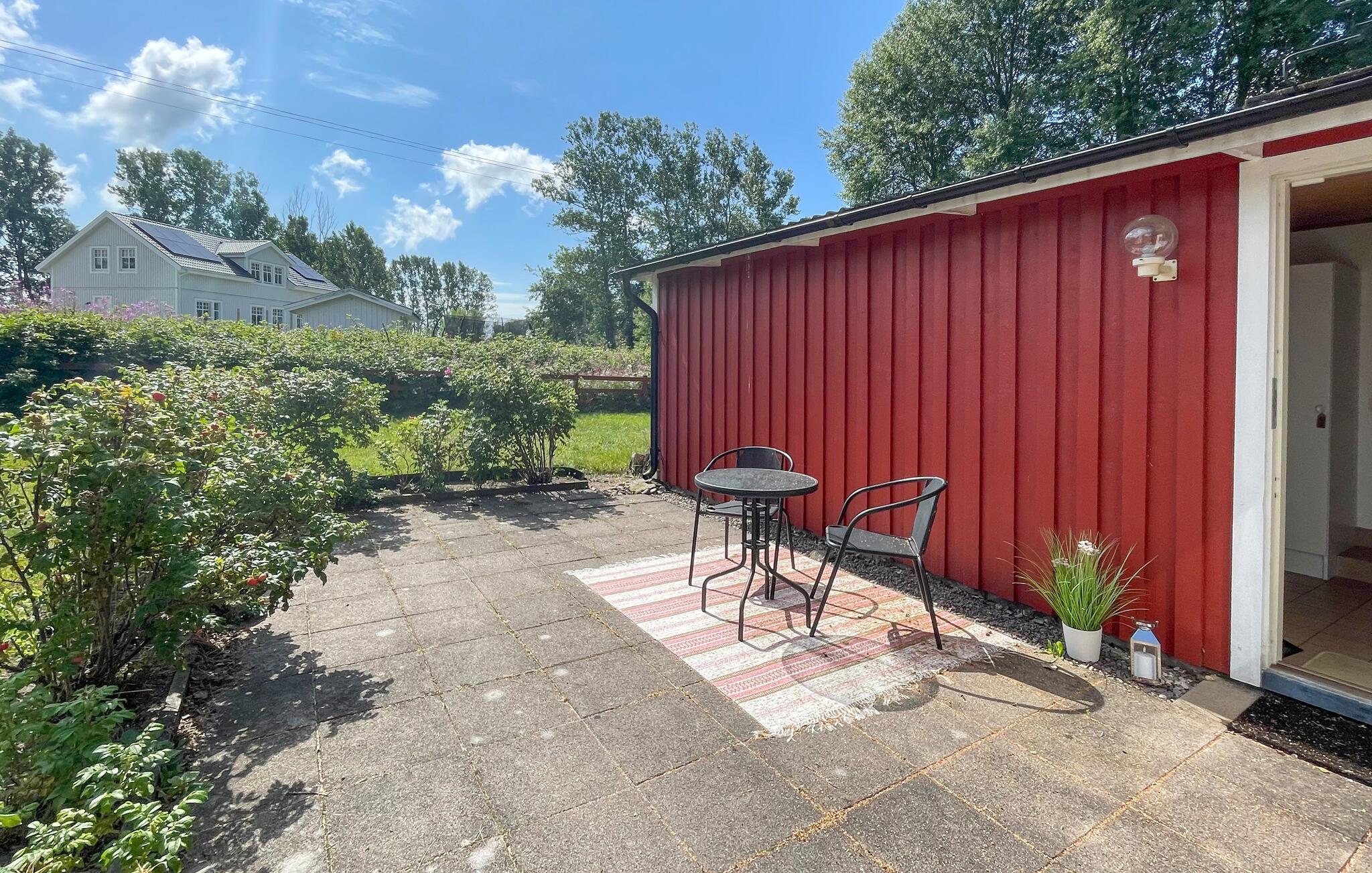 Få en vellykket familieferie nær den svenske vestkyst. jeres sommerhus, som ligger blot få kilometer fra Varberg, byder på hyggelig indretning med plads til afslappende timer. Føl jer godt tilpas i stuen, hvor den rustikke pejs giver hyggelig varme, og nyd selskabelige aftener med jeres familie. Brug det rummelige køkken til at tilberede jeres yndlingsretter og nyd jeres måltider i den indbydende spiseplads ved køkkenvinduet. Husets terrasse lægger op til at blive hængende. Her kan I nyde udsigten til den velholdte have og de omkringliggende marker. Lad hverdagen bag jer og slap af i de fredelige omgivelser, mens I læser en bog og slapper af med en kop kaffe. børnene kan slippe dampen ud i haven, mens I nyder freden og den friske luft. Der er mange udflugtsmuligheder i nærheden af huset. Besøg kystbyen Varberg, hvor I kan opleve charmerende caféer, butikker og historiske seværdigheder såsom fæstningen. Eller tag en dagstur til Gøteborg for at besøge attraktioner såsom Liseberg forlystelsespark eller Universeum. De maleriske strande i Träslövsläge er også kun en kort køretur væk og er ideelle til vandreture ved havet.